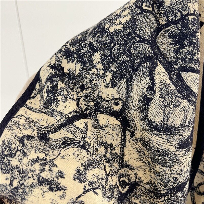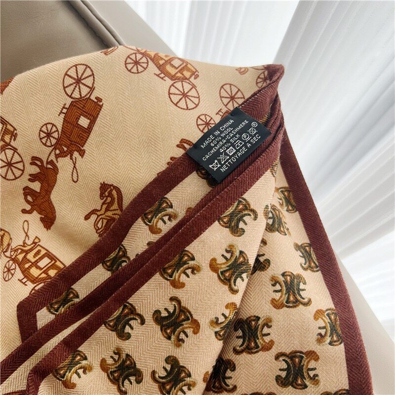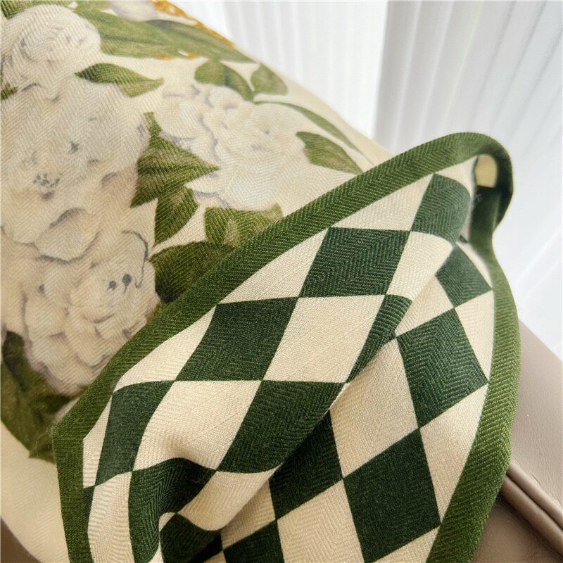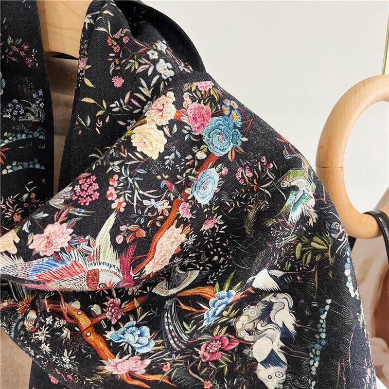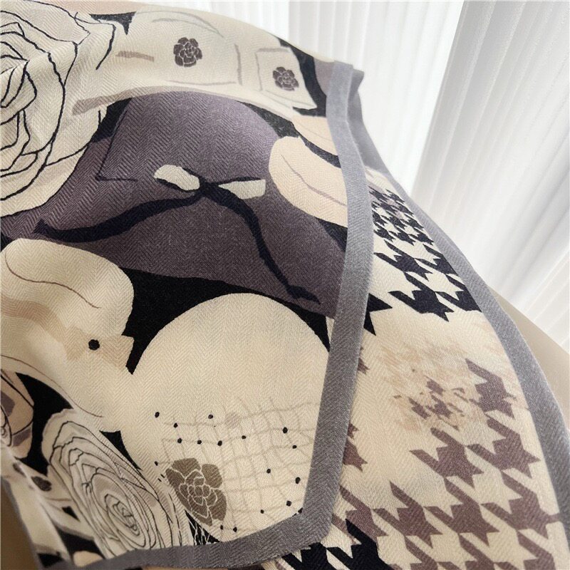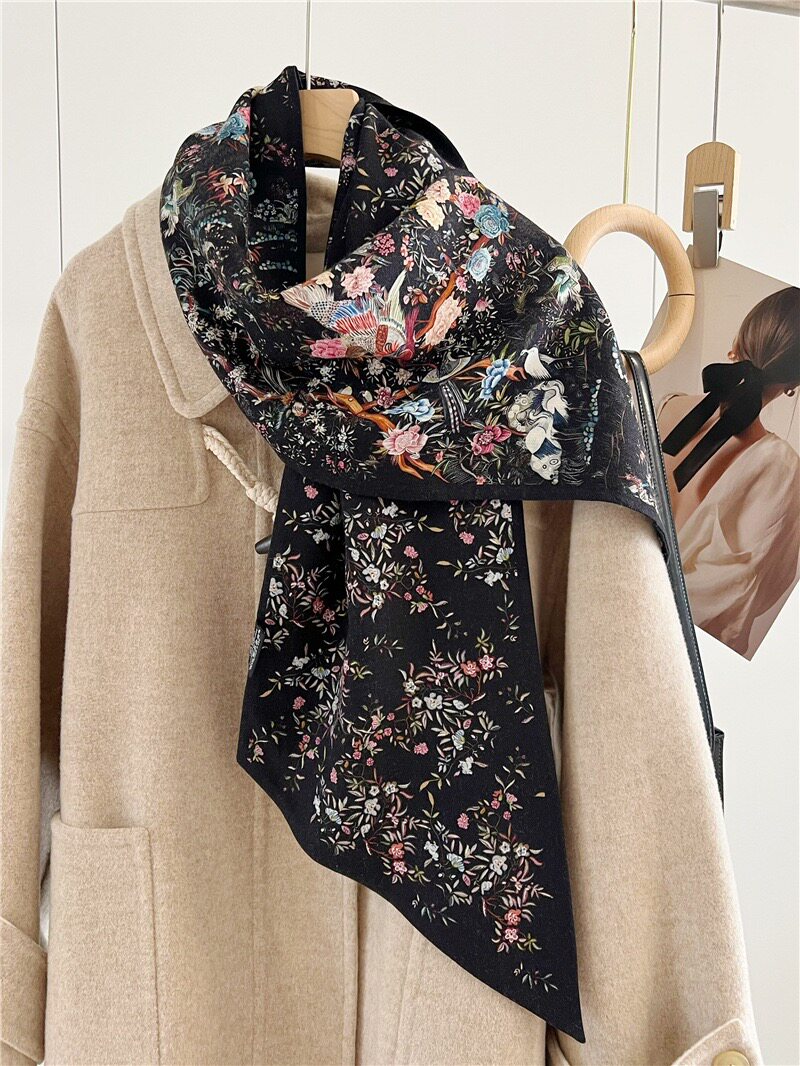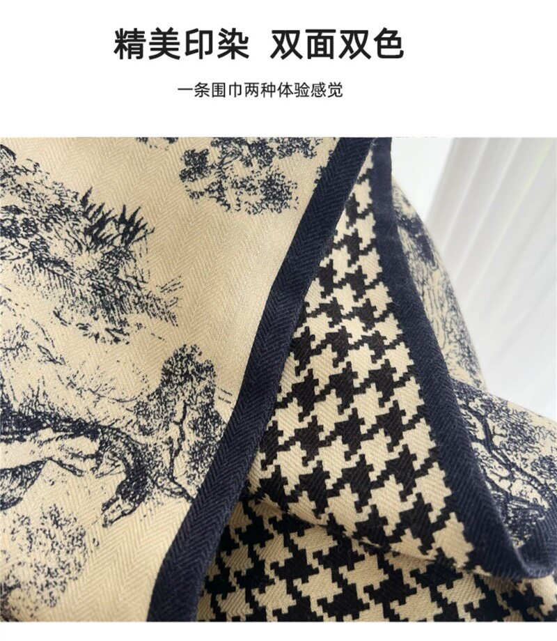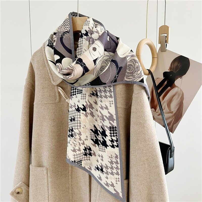 Double-Sided Two-Tone Silk Wool Scarf for Women, New Autumn and Winter Jungle Houndstooth Double-Layer Silk Wool Neck Warmer Long Scarf