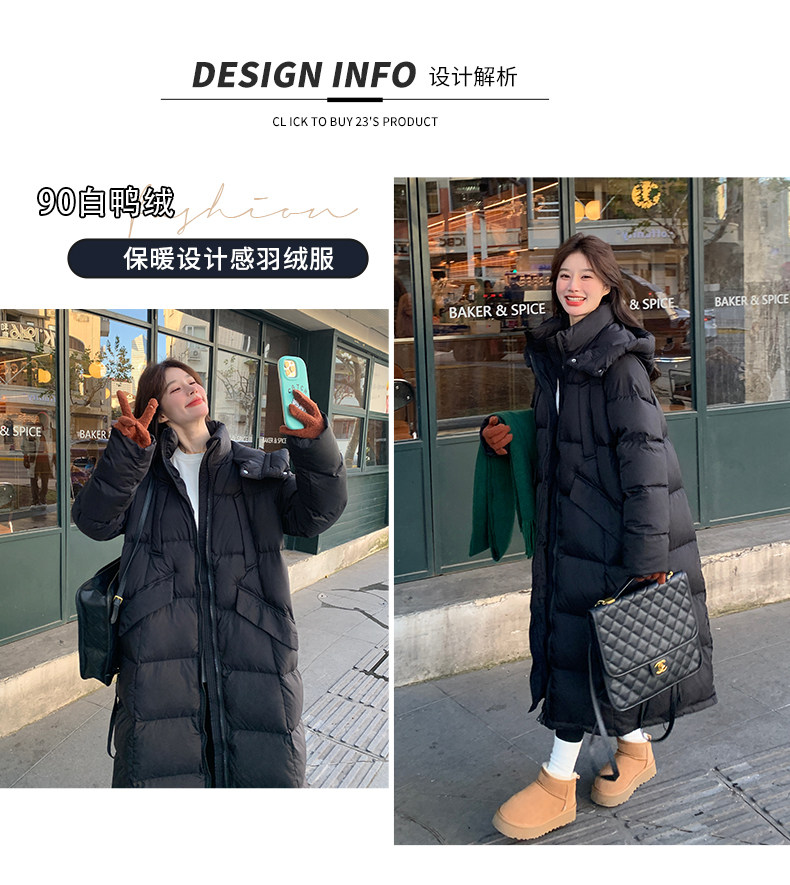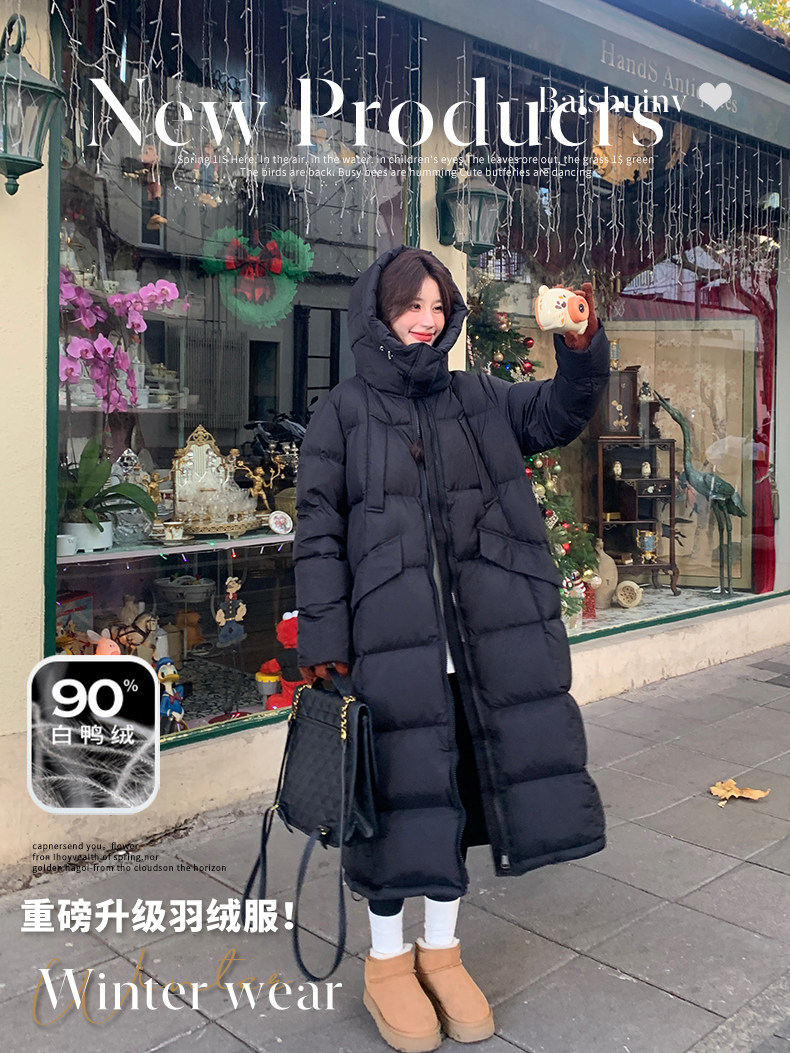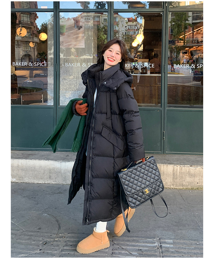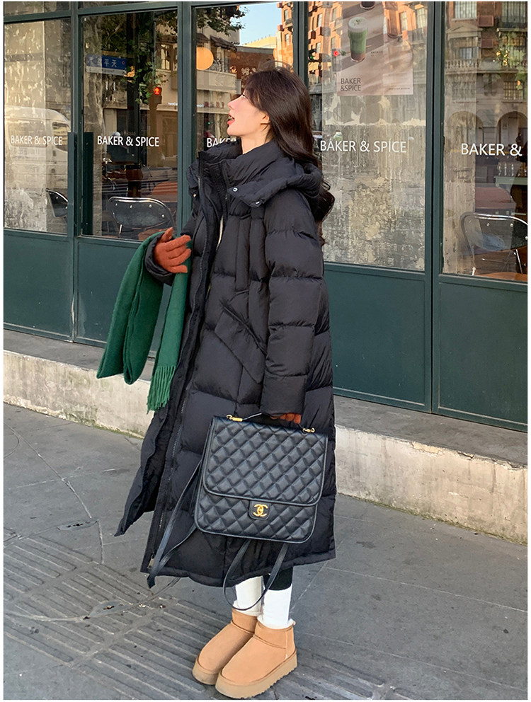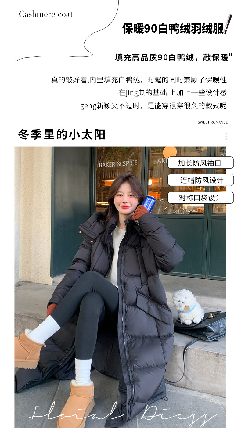 Black design long down jacket for women 2025 winter new Korean style casual warm 90 white duck down bread jacket