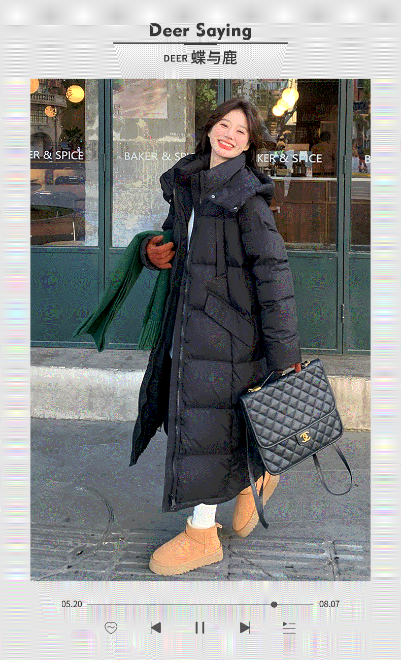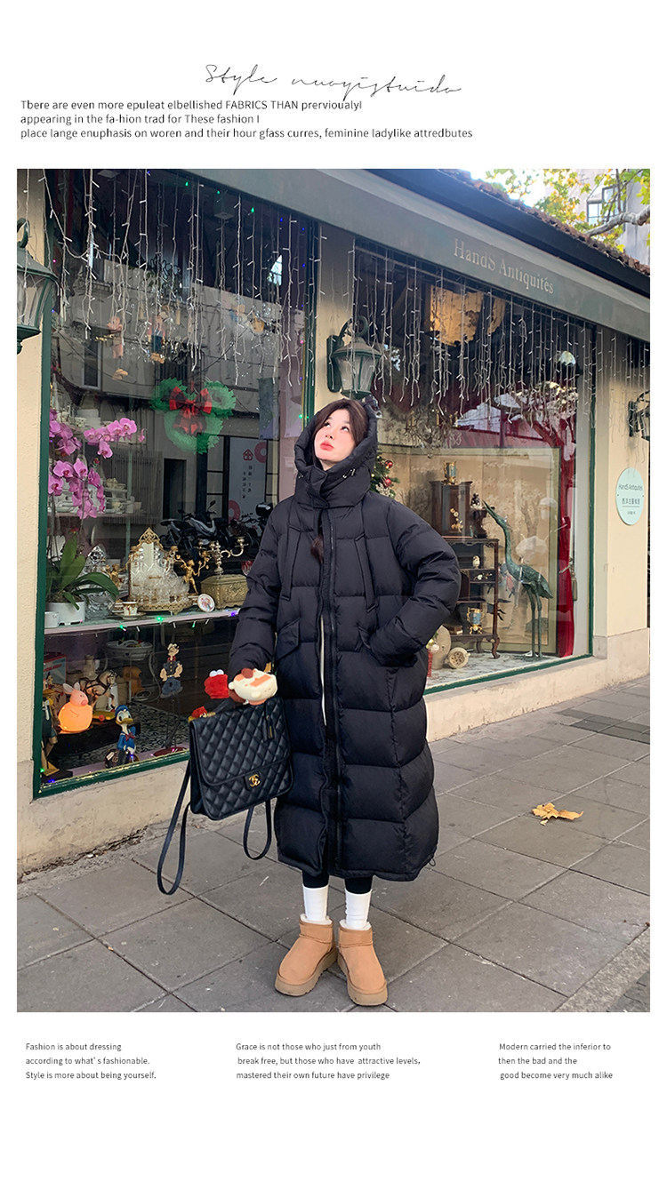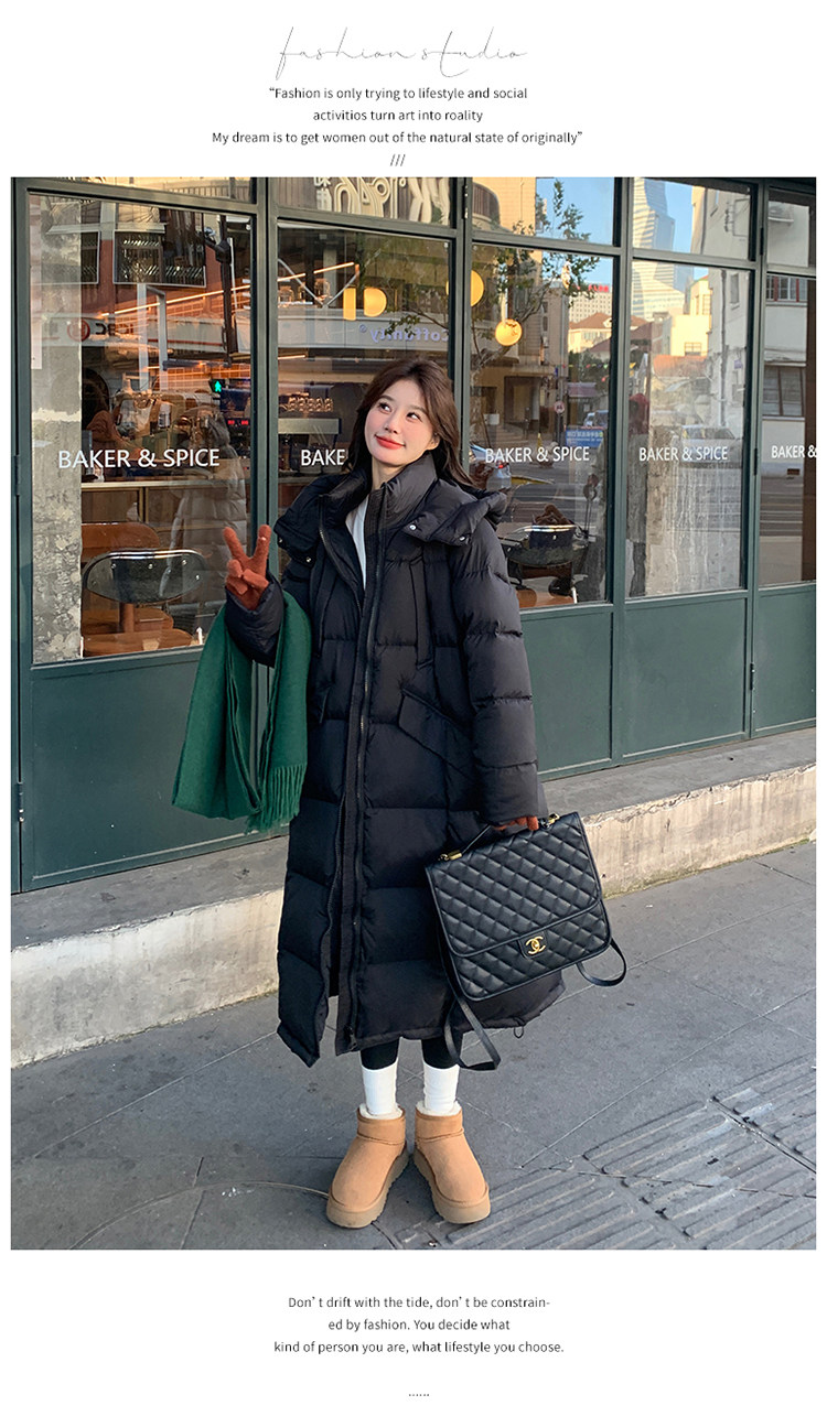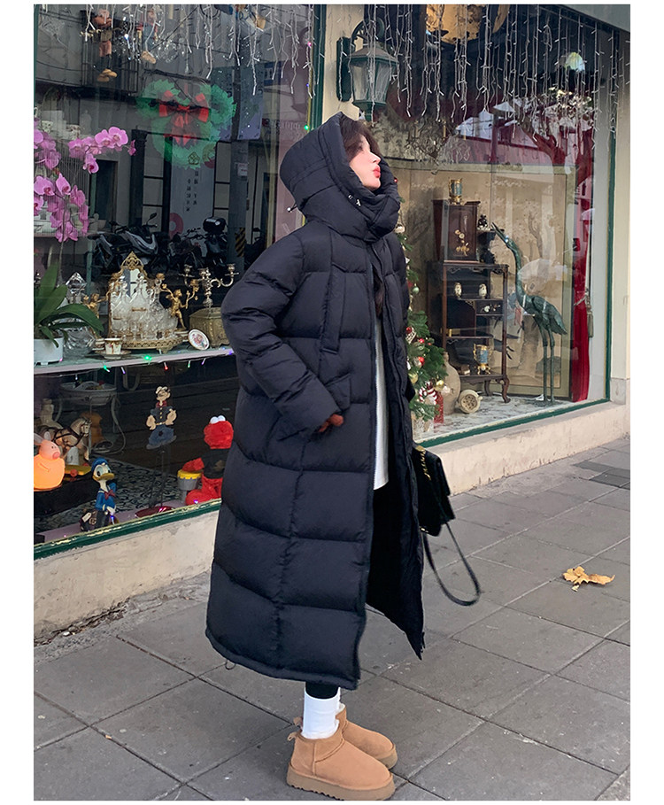 Black design long down jacket for women 2025 winter new Korean style casual warm 90 white duck down bread jacket