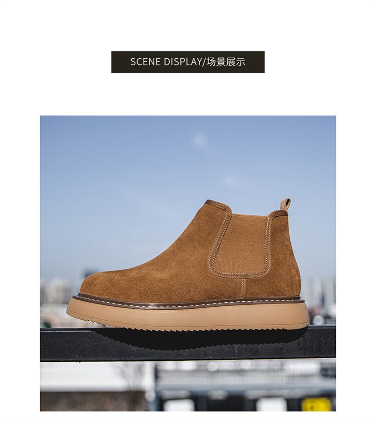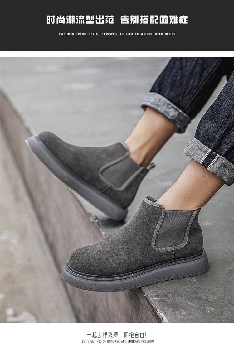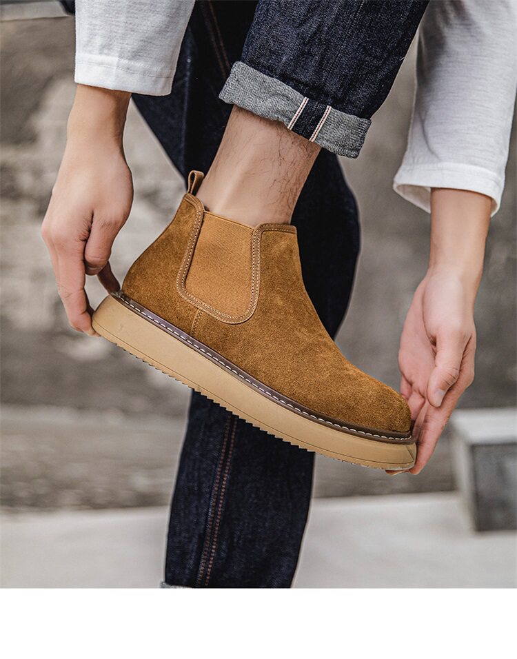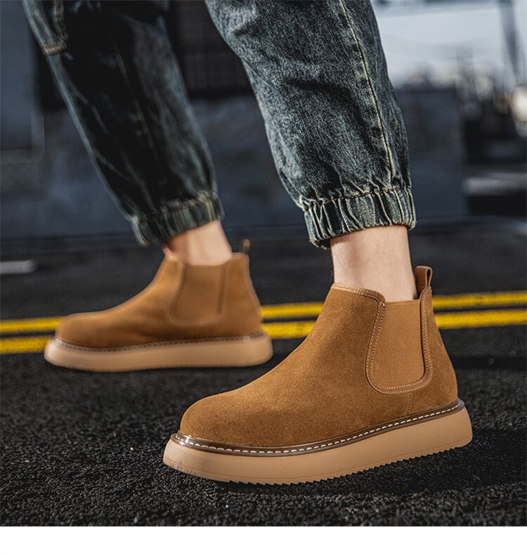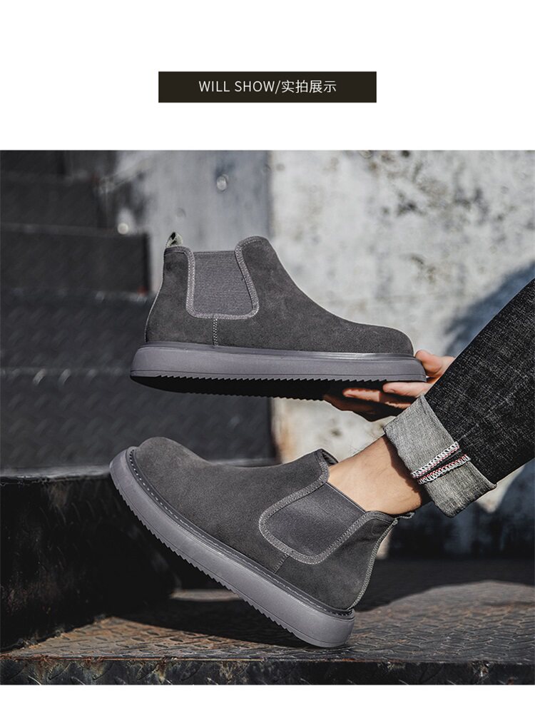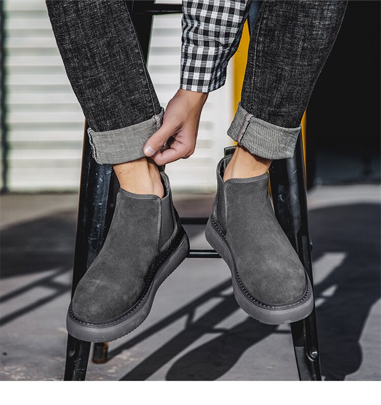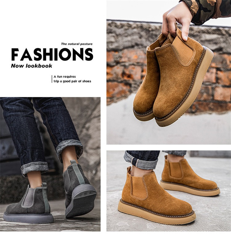 Chelsea Boots Men's Winter Genuine Leather High-Top Shoes with Plush Lining, Retro Mid-Top Short Boots, British Style New Casual Martin Boots