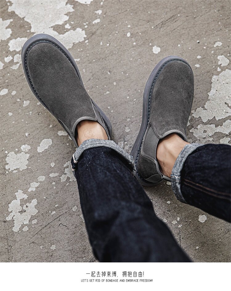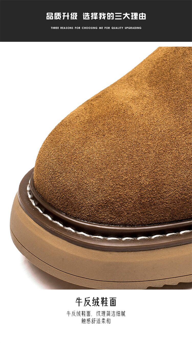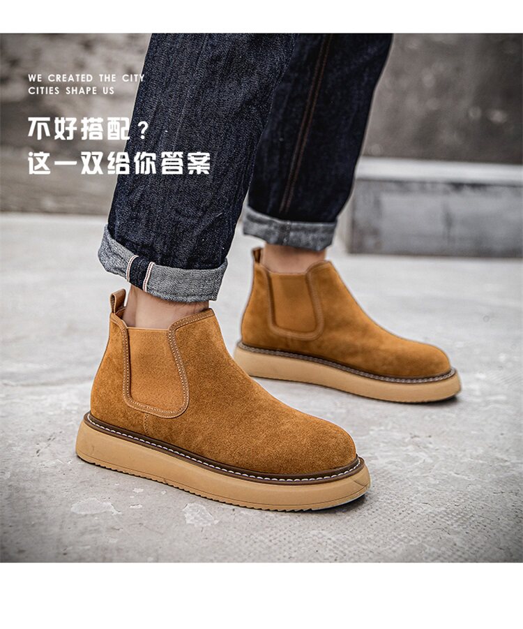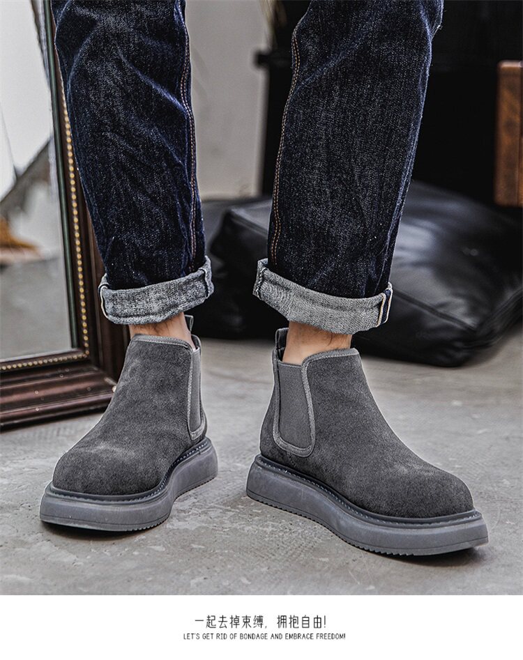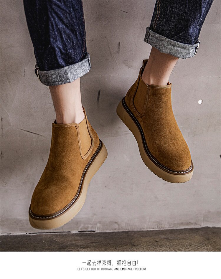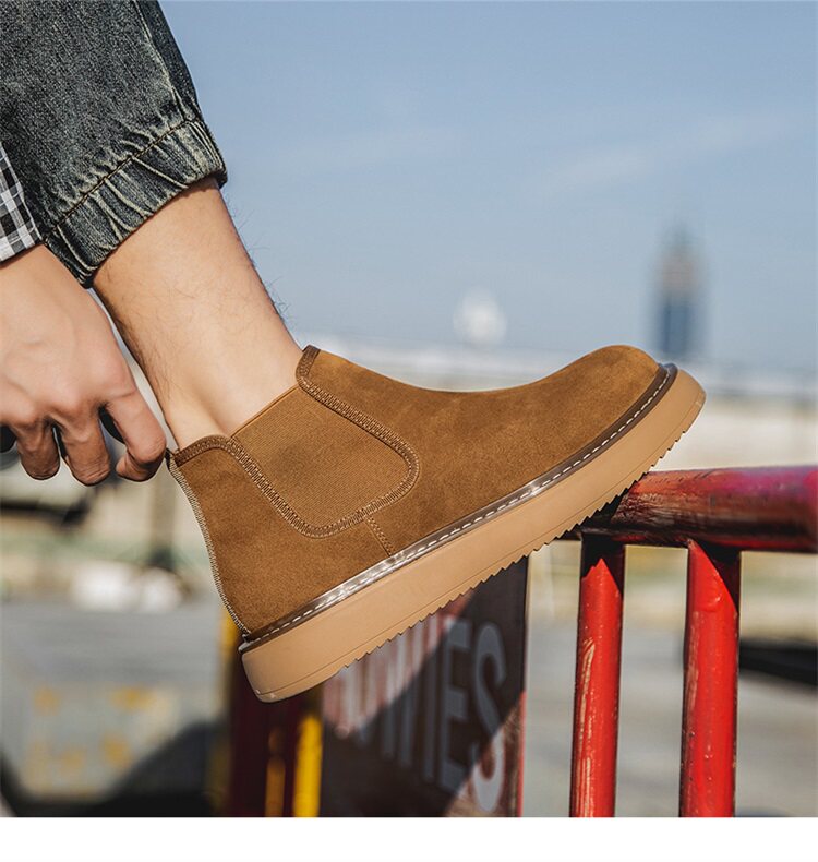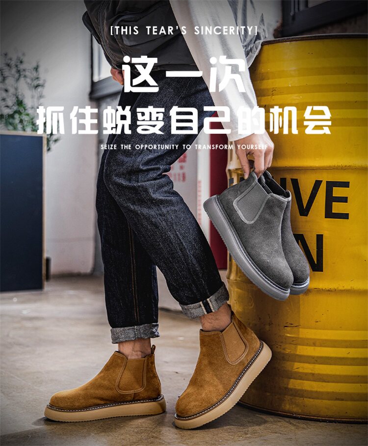 Chelsea Boots Men's Winter Genuine Leather High-Top Shoes with Plush Lining, Retro Mid-Top Short Boots, British Style New Casual Martin Boots