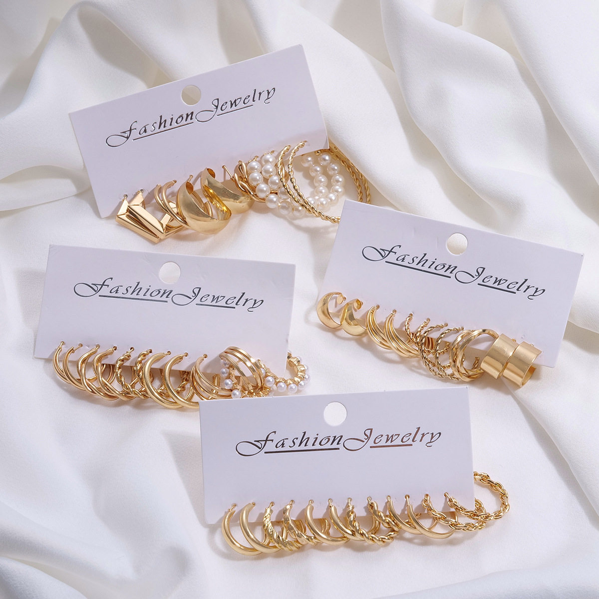 Earrings Set 24 Pairs Square Geometric Retro Pearl Earrings Set Combination Twist Earrings