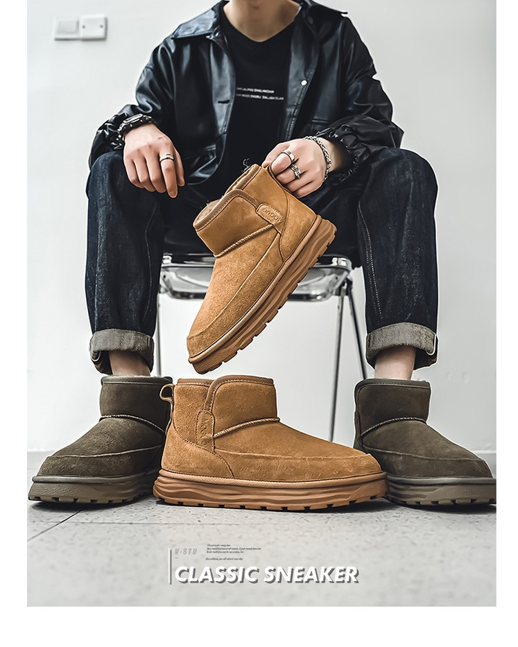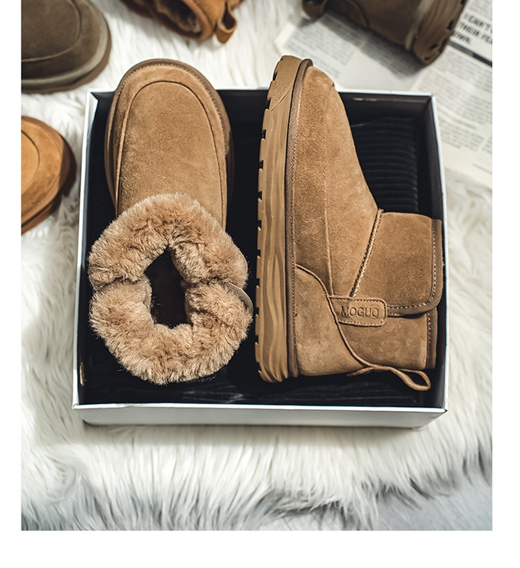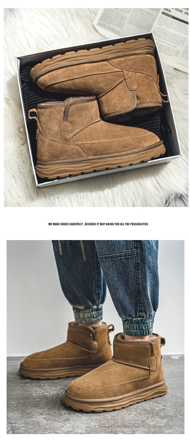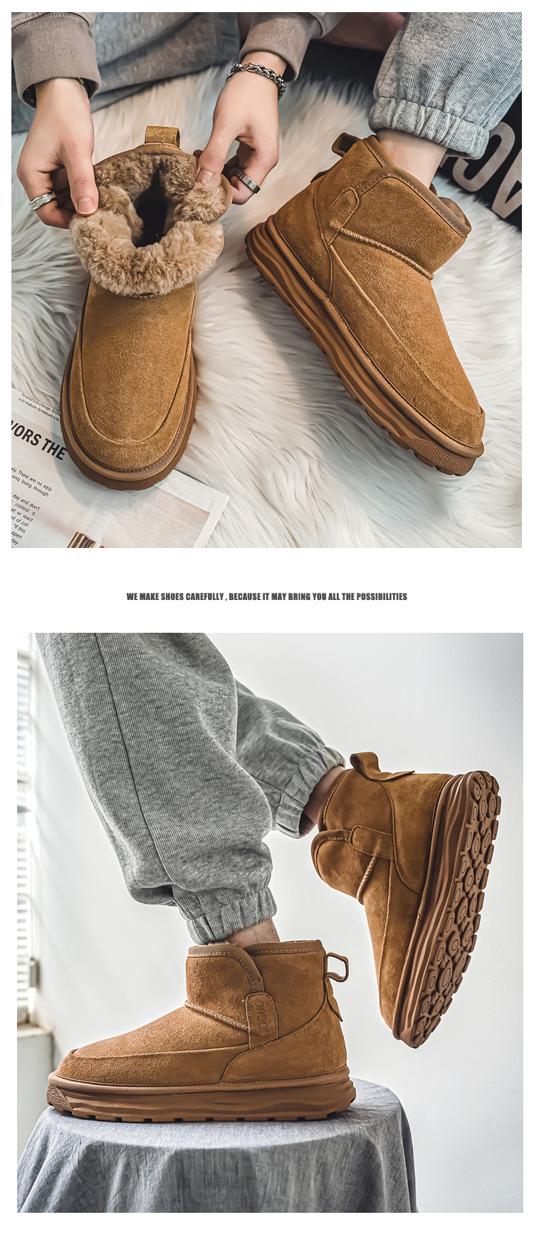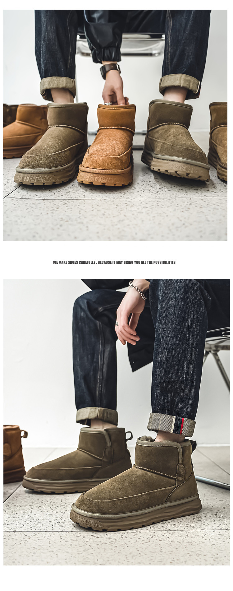 Men's Snow Boots, Northeast-Style Large Cotton Shoes, Cold-Resistant, Non-Slip, Thick-Soled Genuine Leather Cotton Boots, Winter Fleece-Lined, Thickened, Warm Loafers