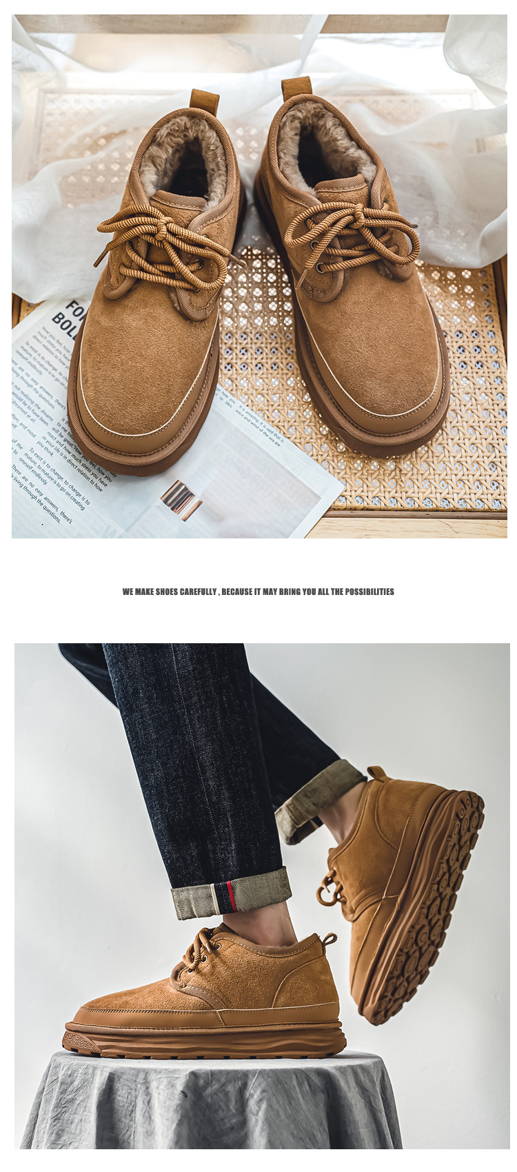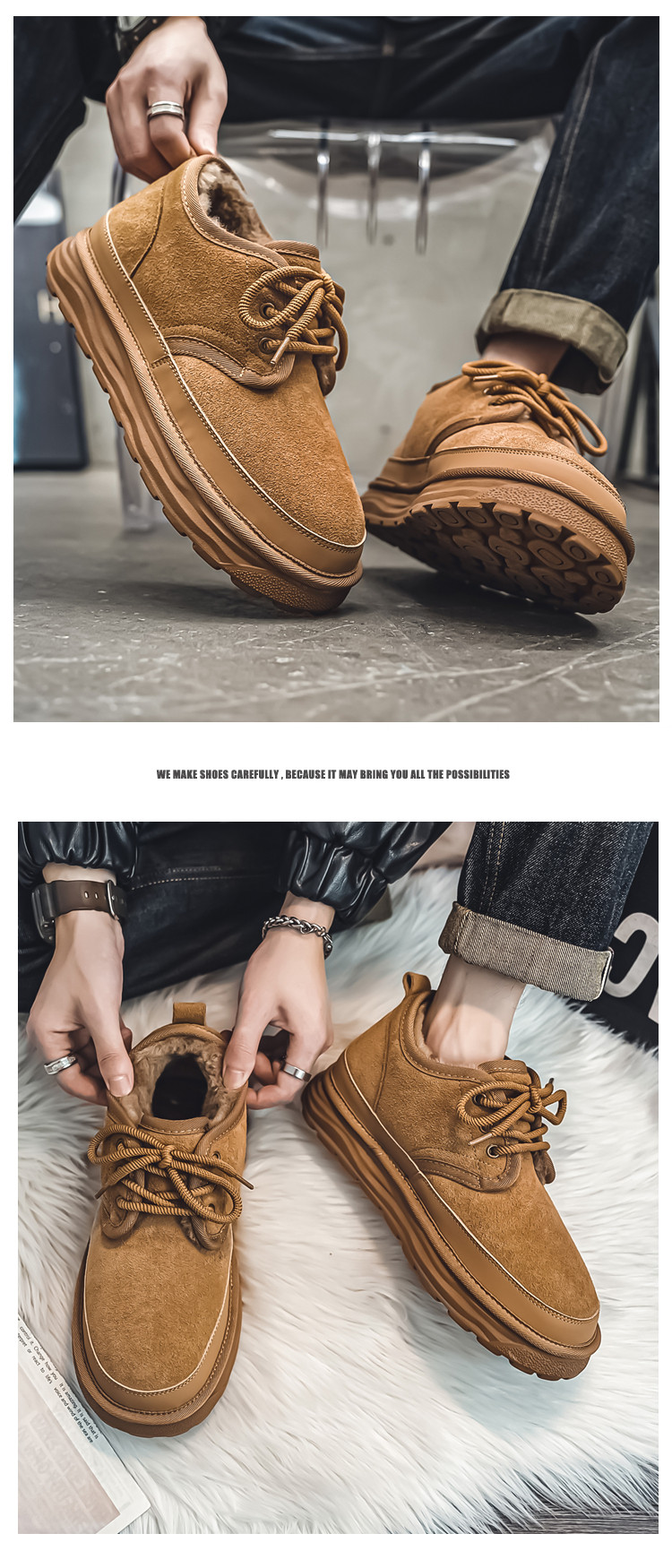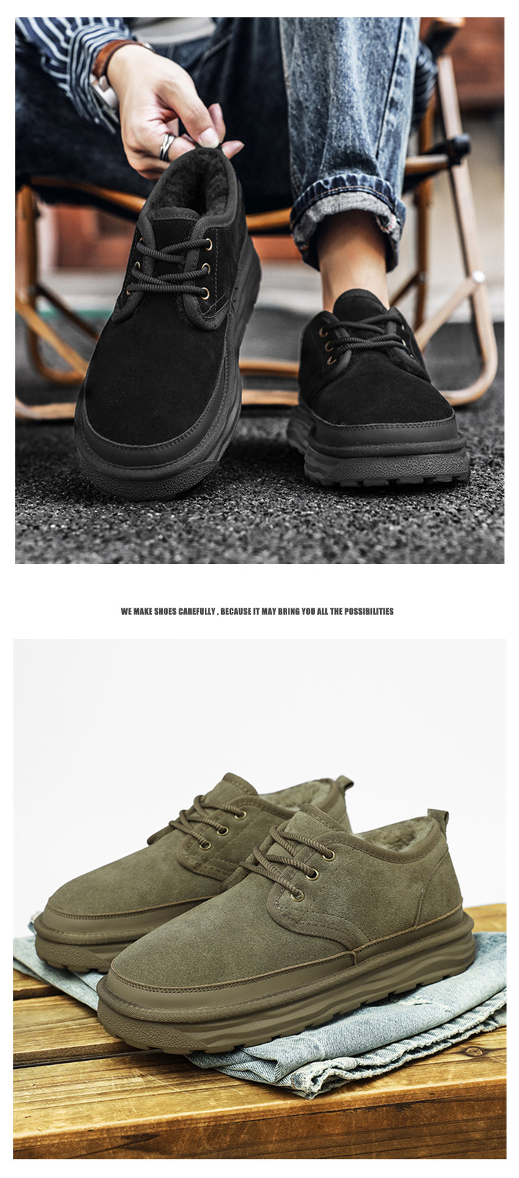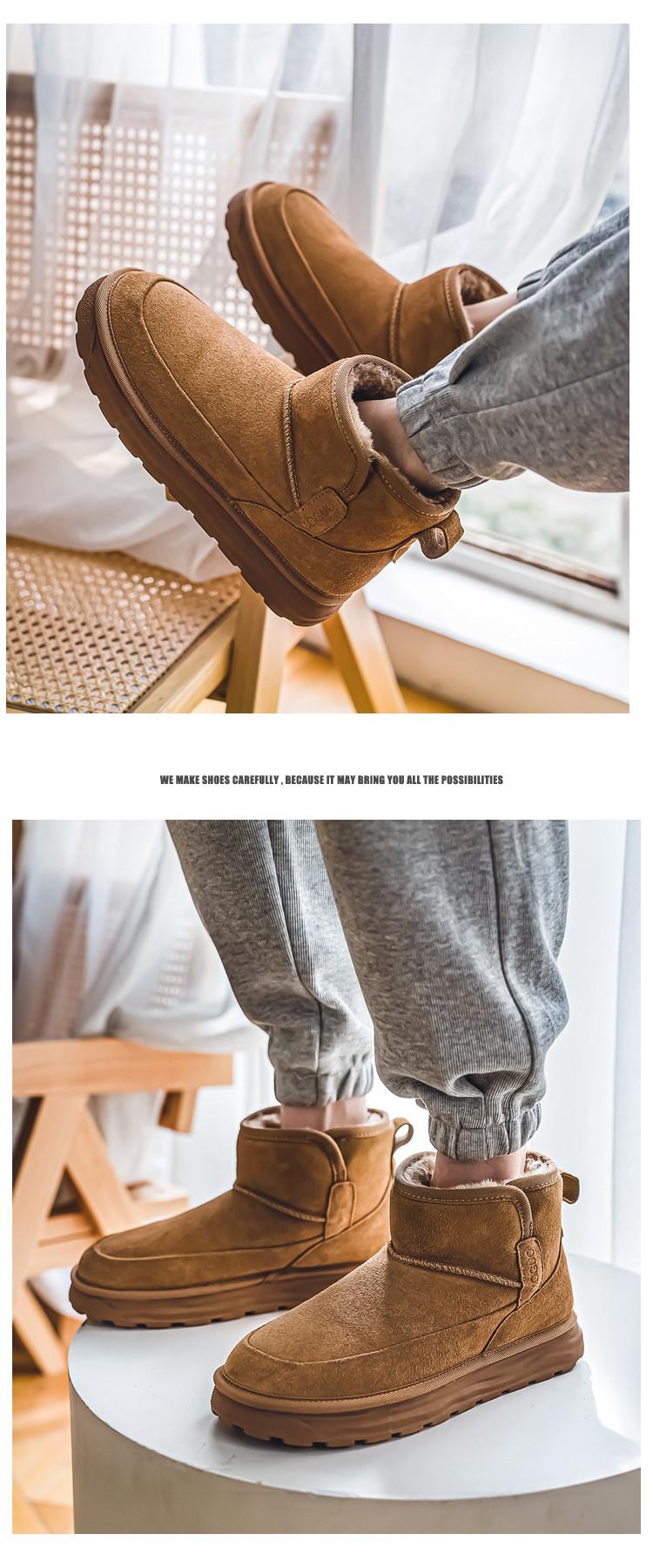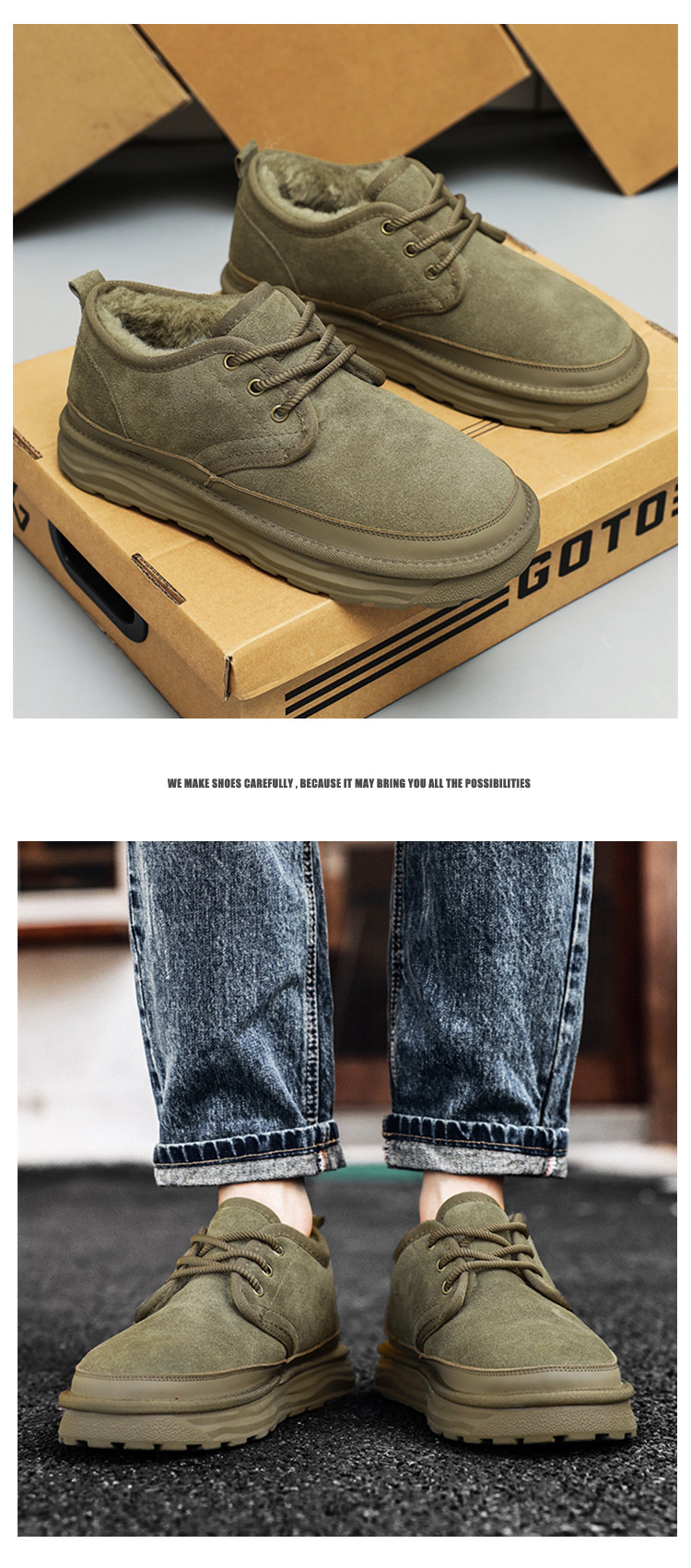 Men's Snow Boots, Northeast-Style Large Cotton Shoes, Cold-Resistant, Non-Slip, Thick-Soled Genuine Leather Cotton Boots, Winter Fleece-Lined, Thickened, Warm Loafers