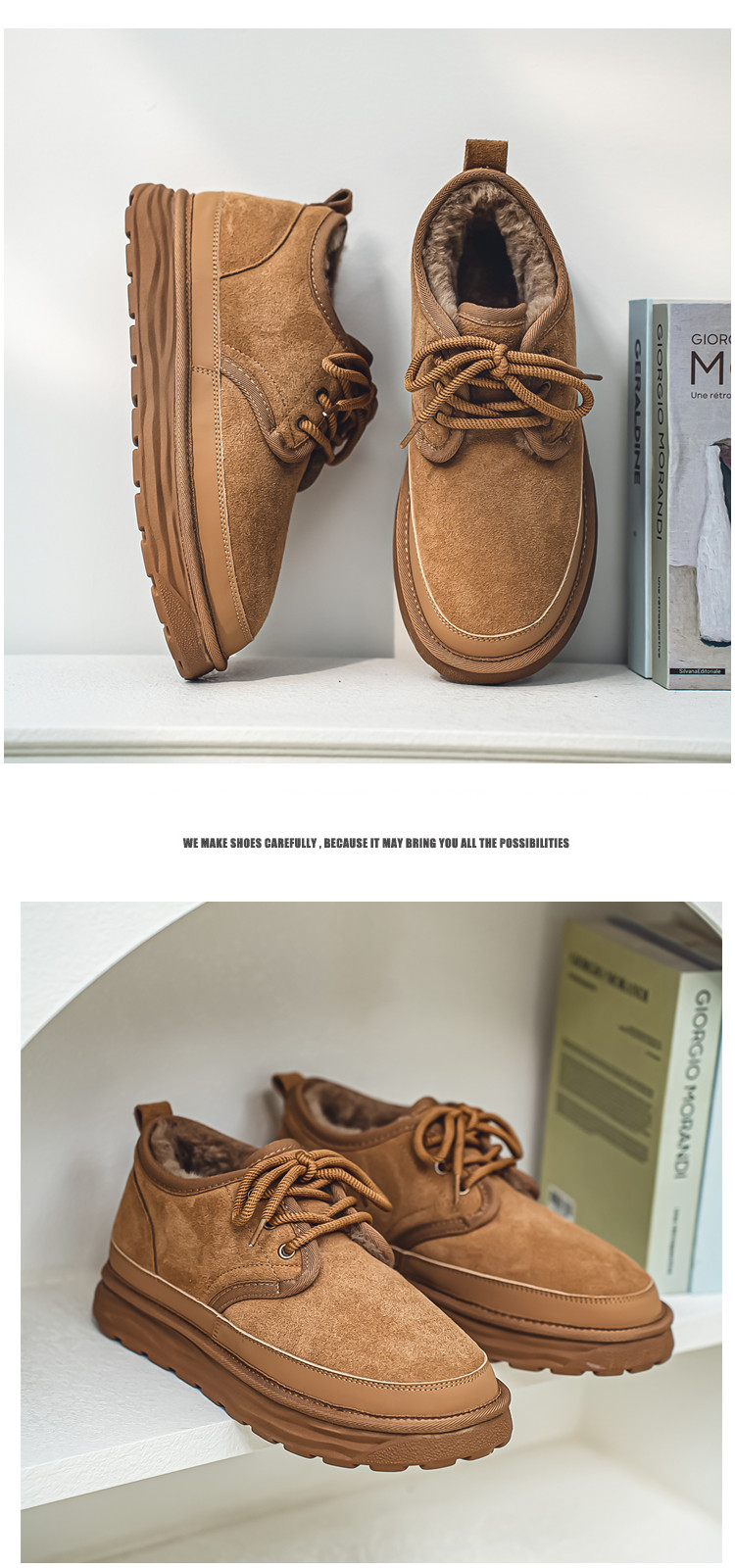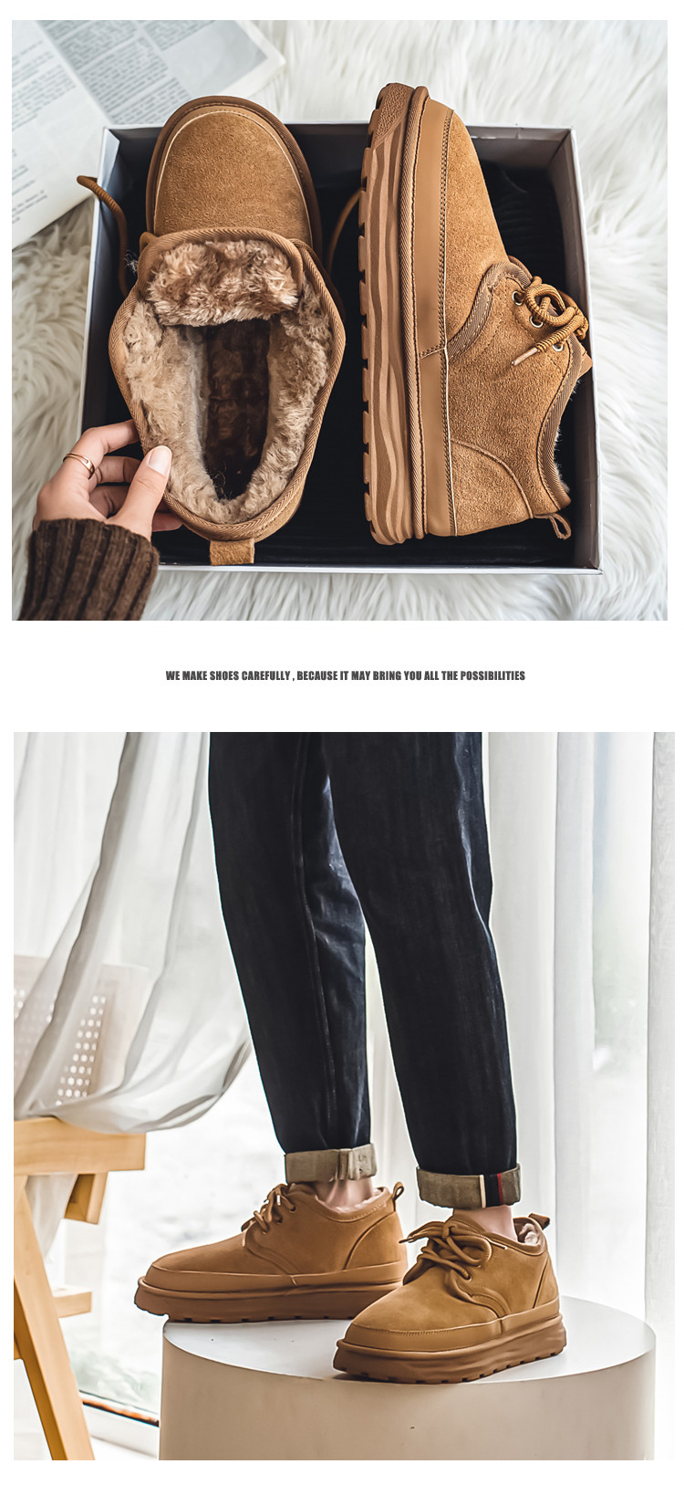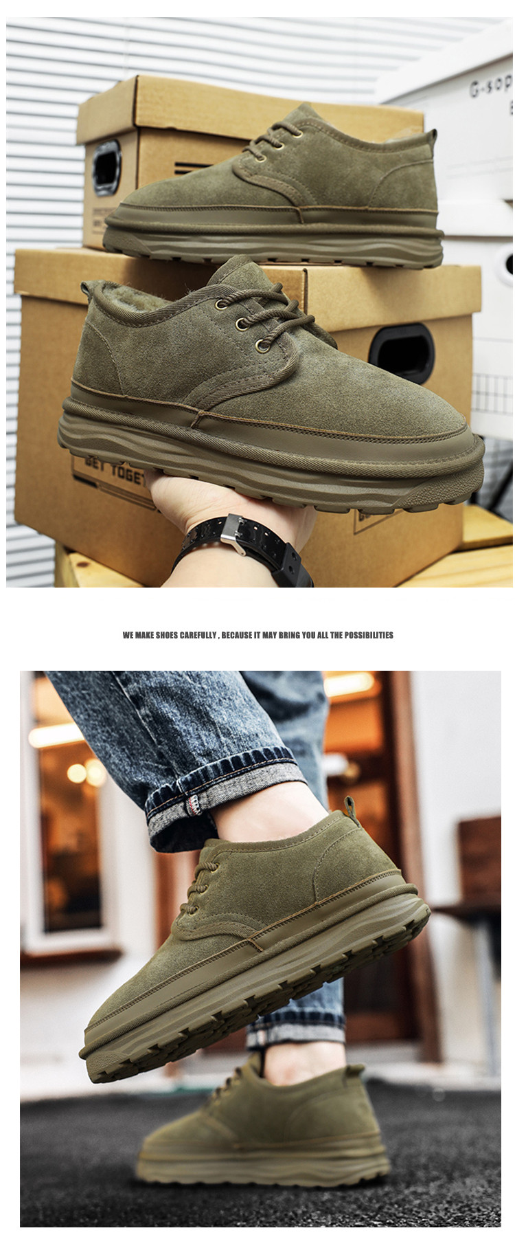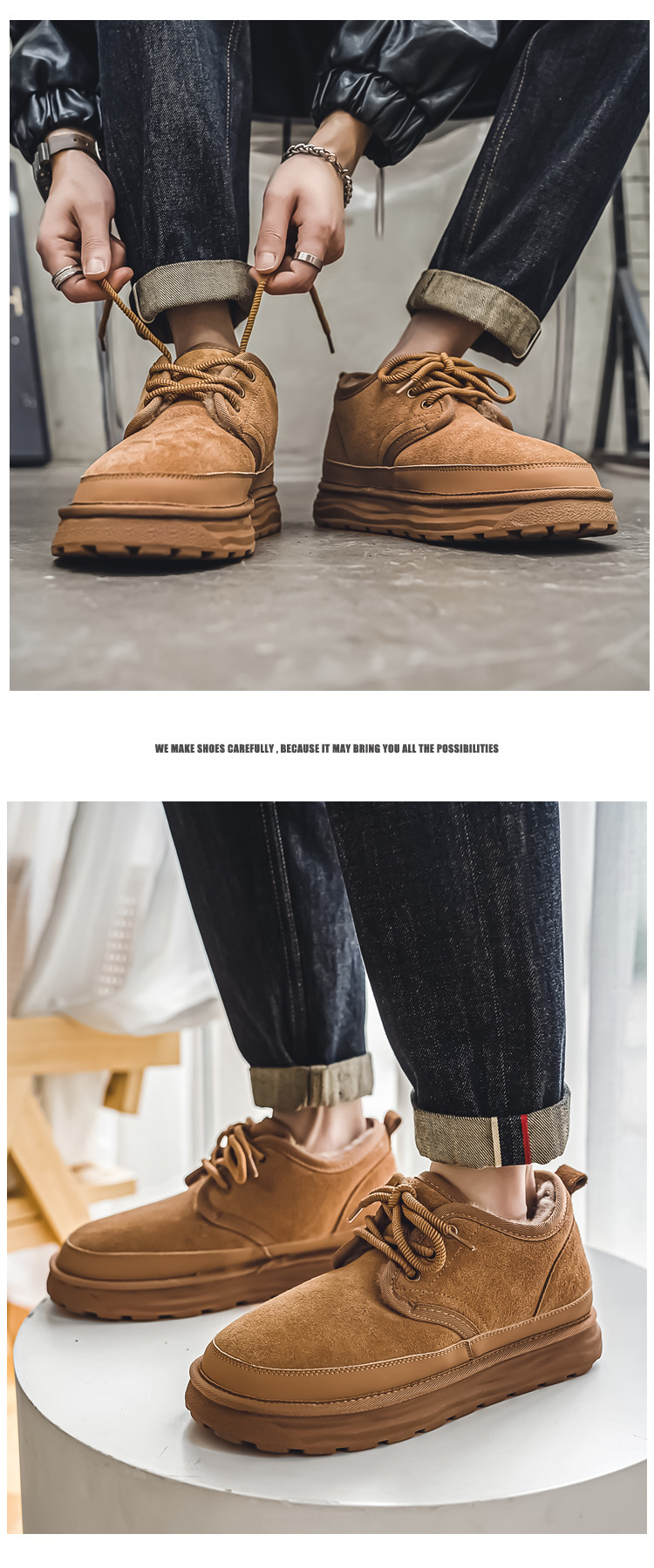 Men's Snow Boots, Northeast-Style Large Cotton Shoes, Cold-Resistant, Non-Slip, Thick-Soled Genuine Leather Cotton Boots, Winter Fleece-Lined, Thickened, Warm Loafers