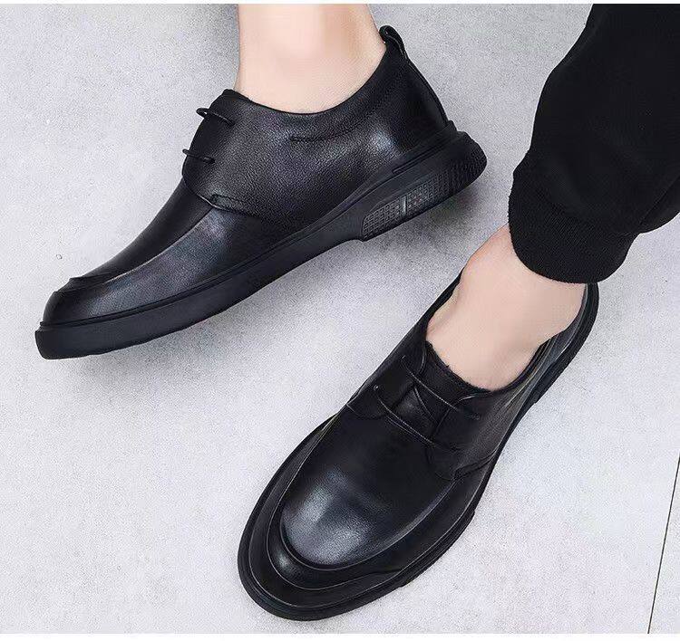 2025 New Leather Shoes Men's Genuine Leather Winter Warm Casual Shoes Business Formal Non-Slip Cotton Shoes Middle-aged Men's Shoes