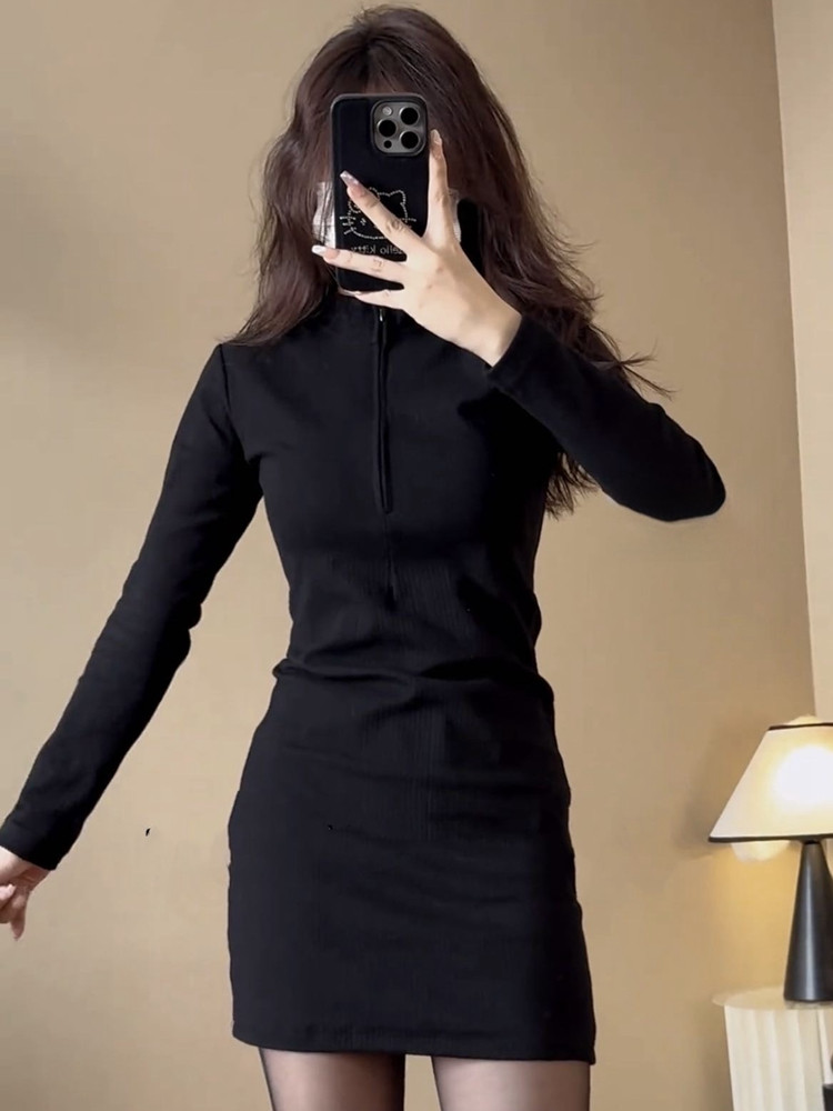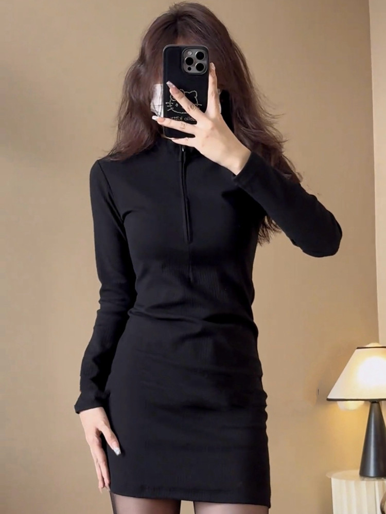 Spring Black Base Layer Knit Dress for Women 2024 New Style Sexy Slim Fit Bodycon Skirt