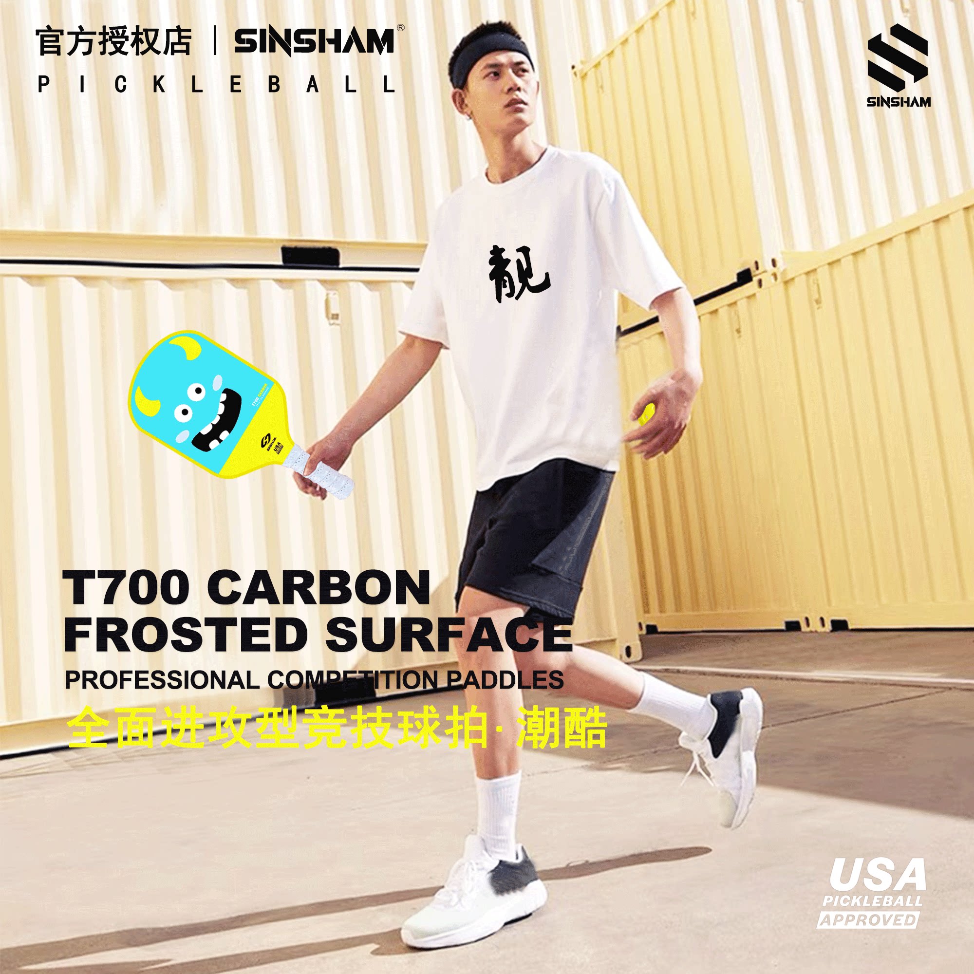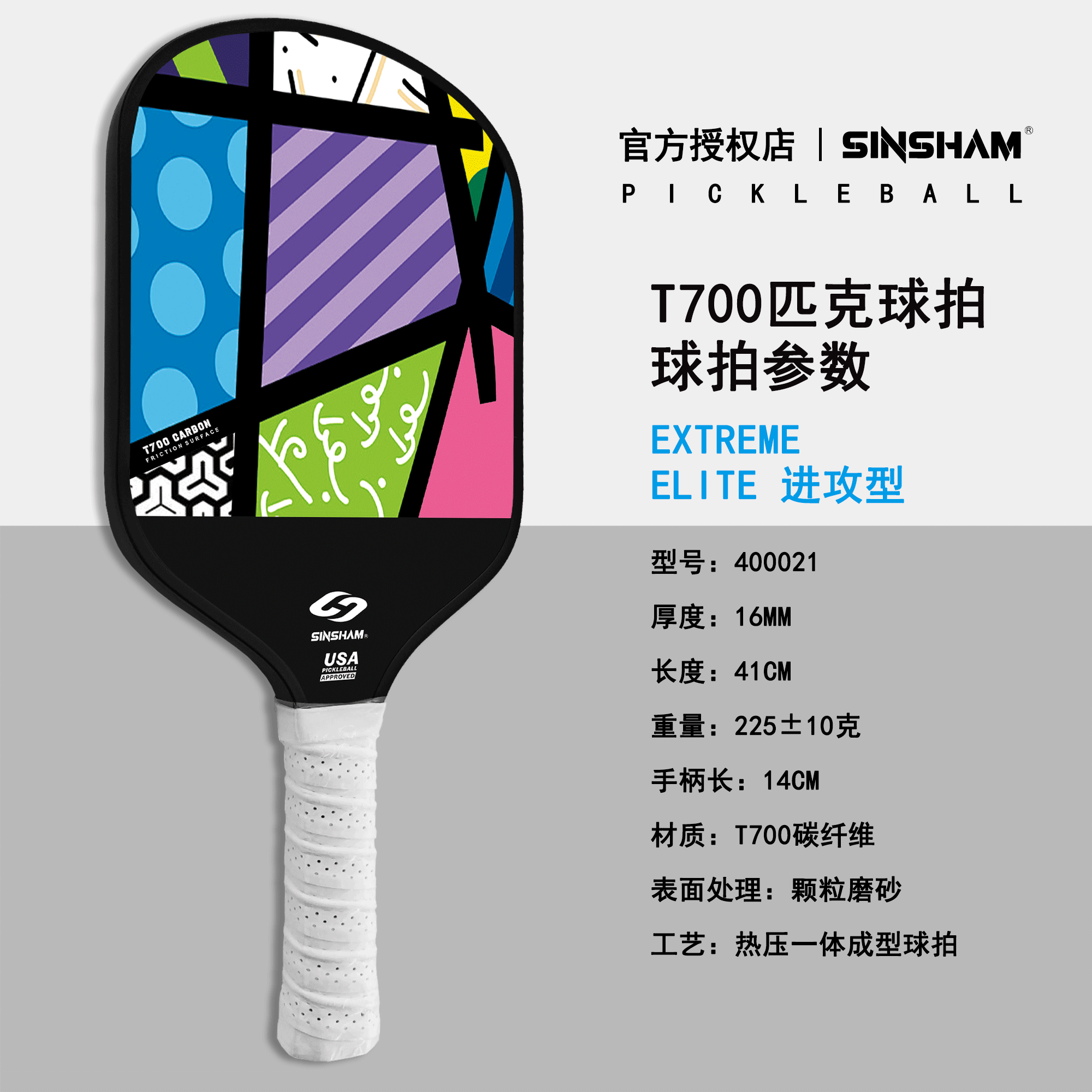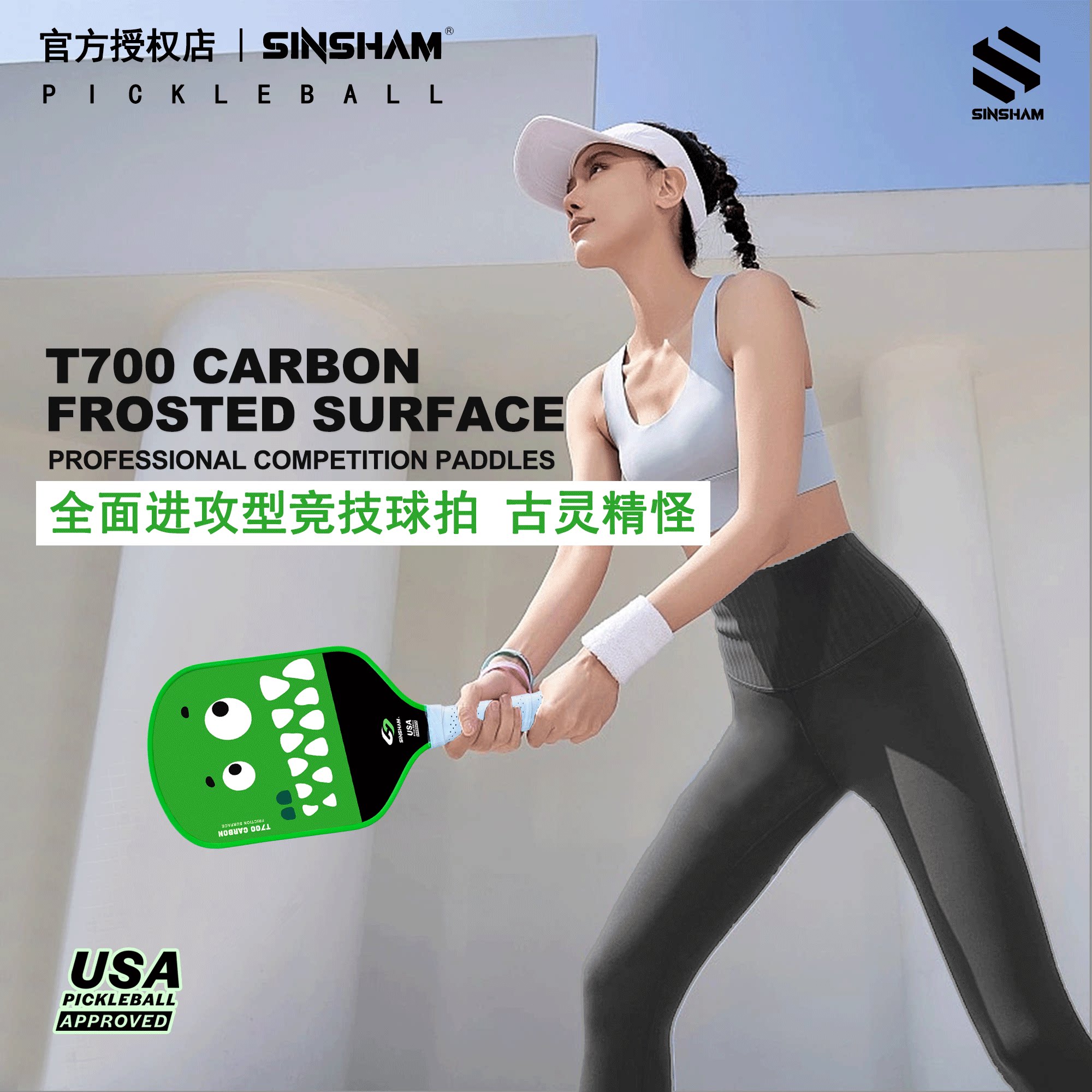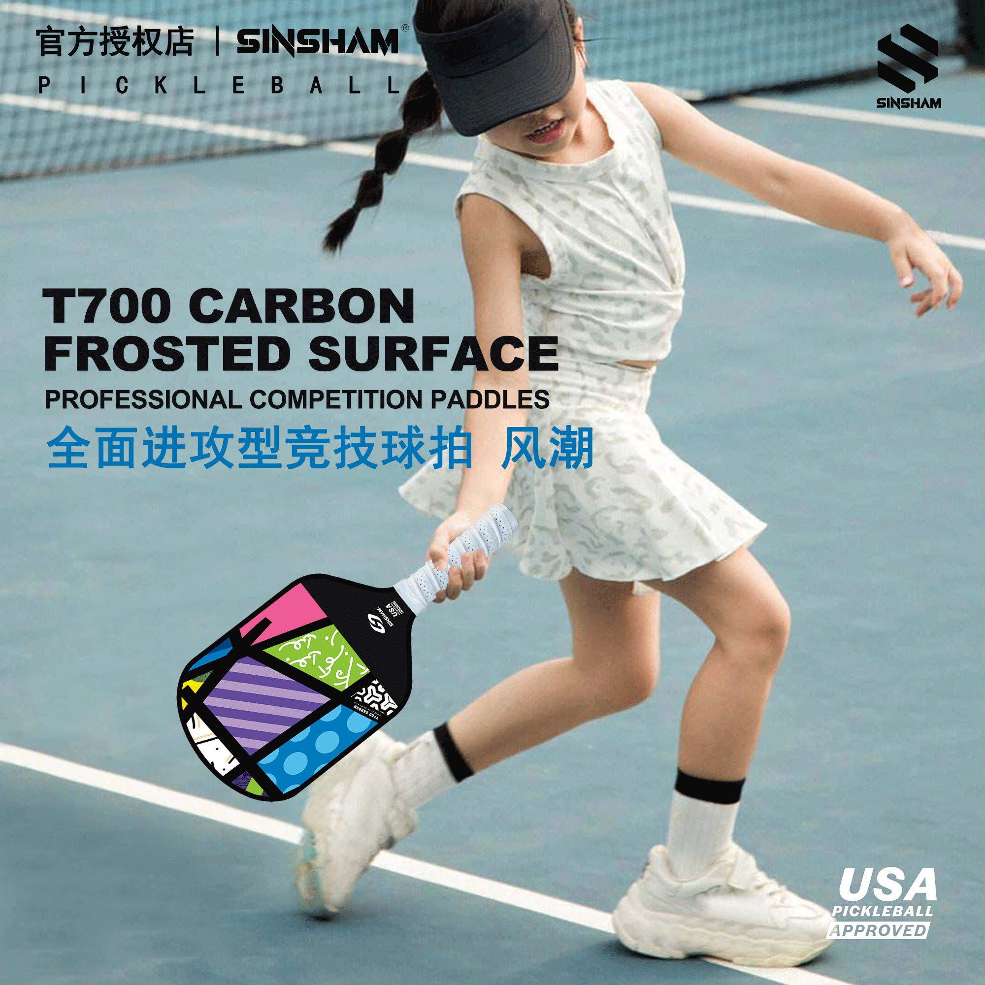 Sinsham Event-Level T700 Carbon Fiber Trendy Hot-Pressed One-Piece Particle Frosted Pickleball Paddle