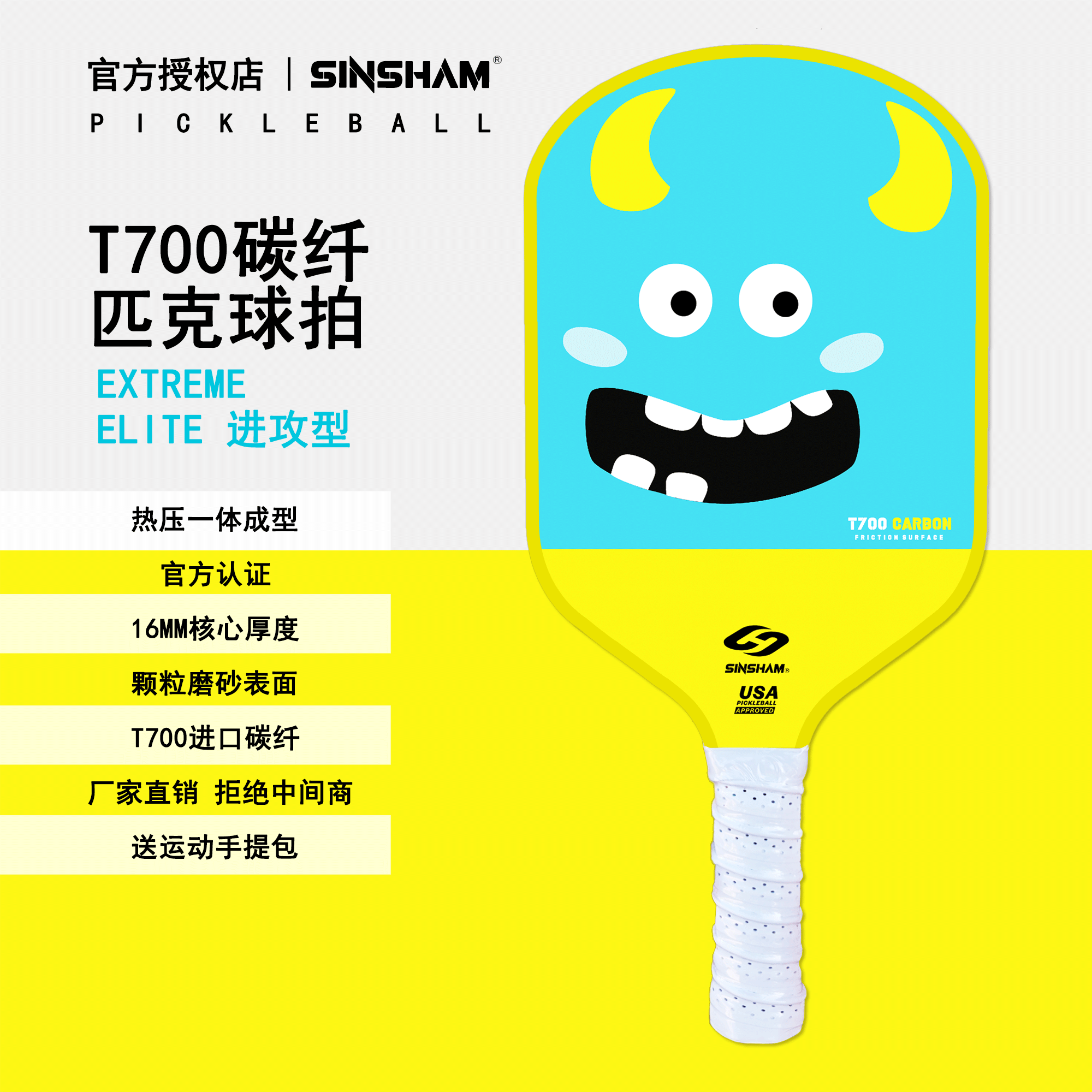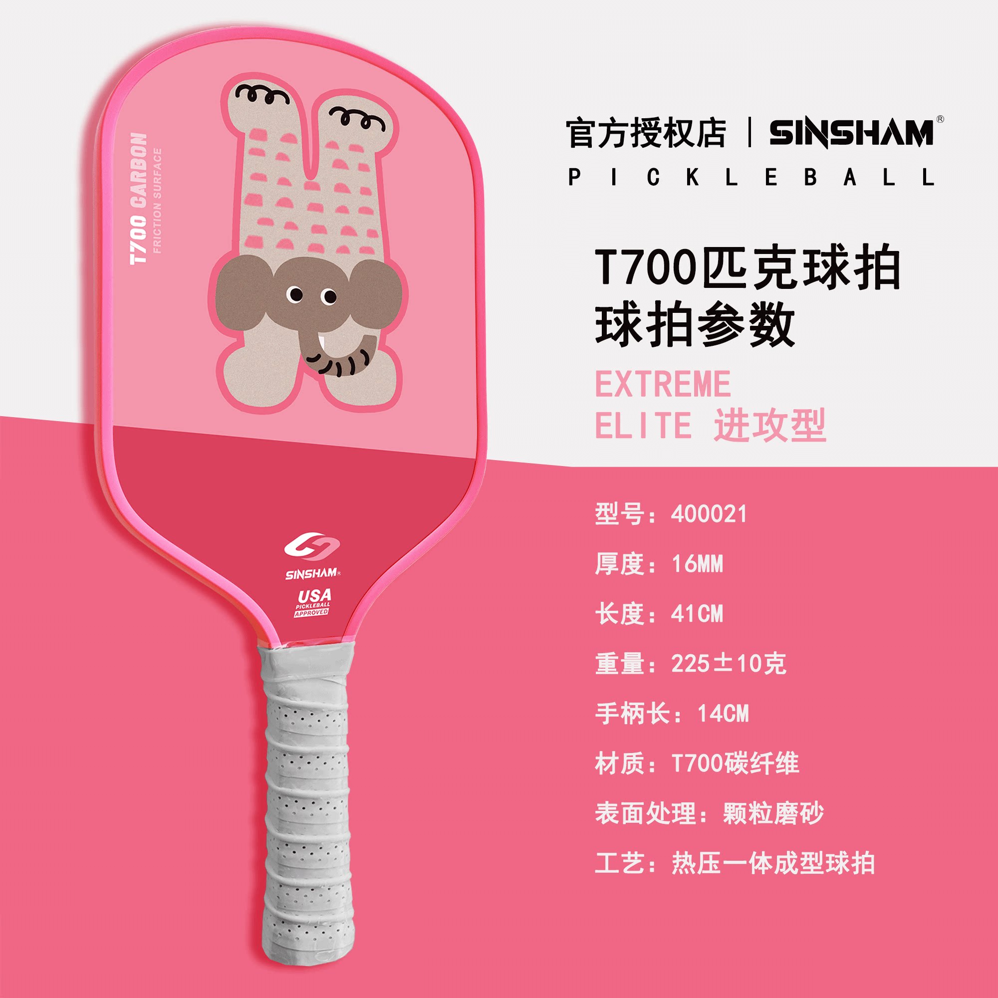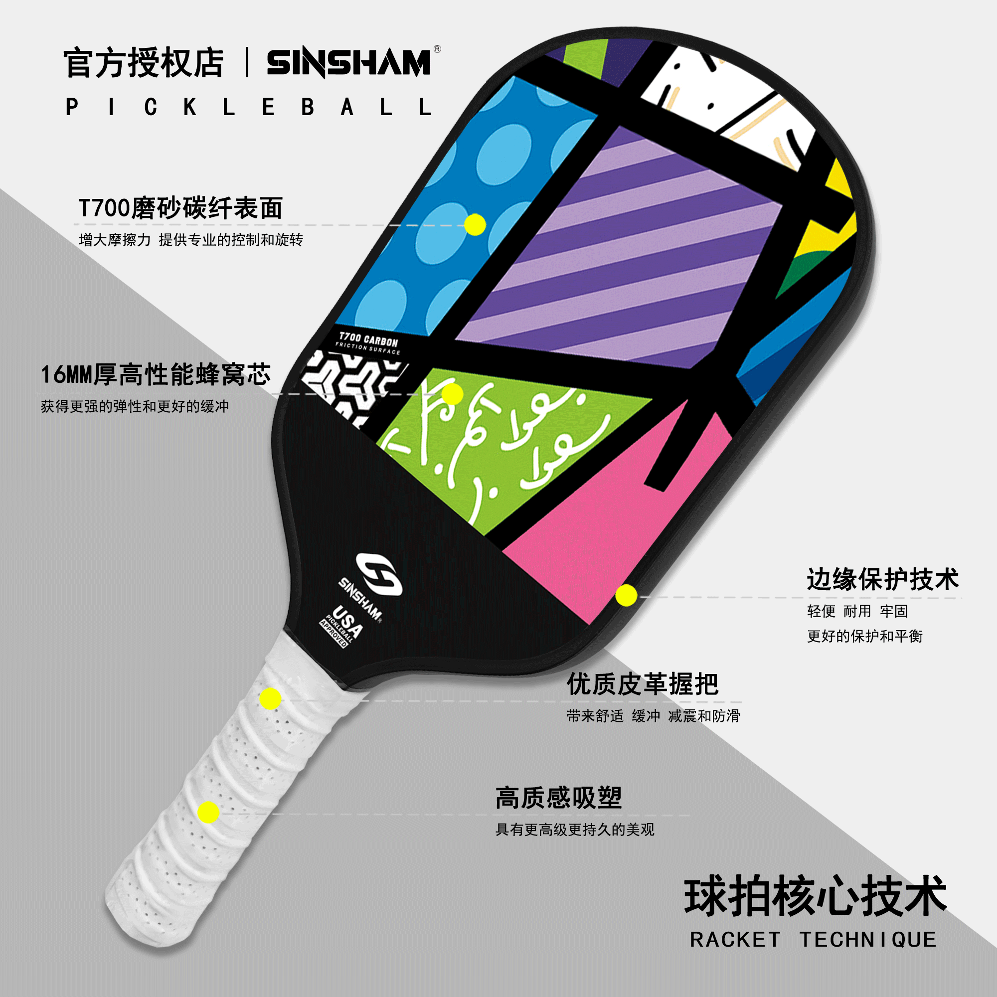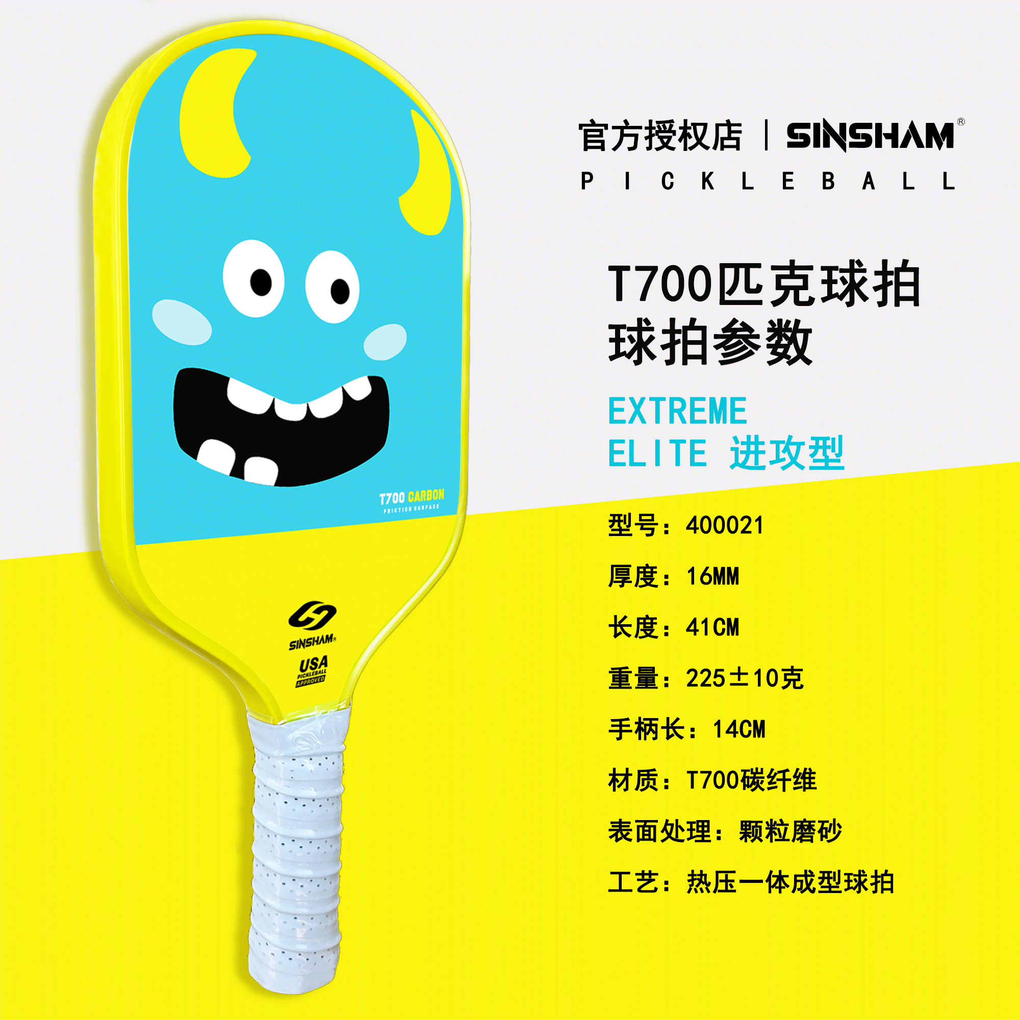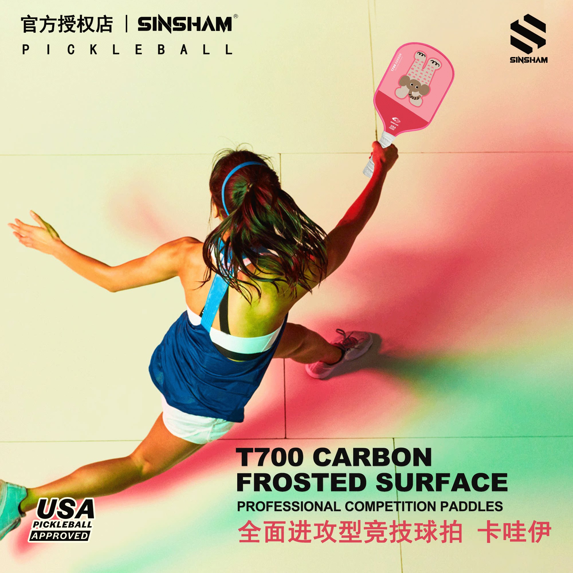 Sinsham Event-Level T700 Carbon Fiber Trendy Hot-Pressed One-Piece Particle Frosted Pickleball Paddle