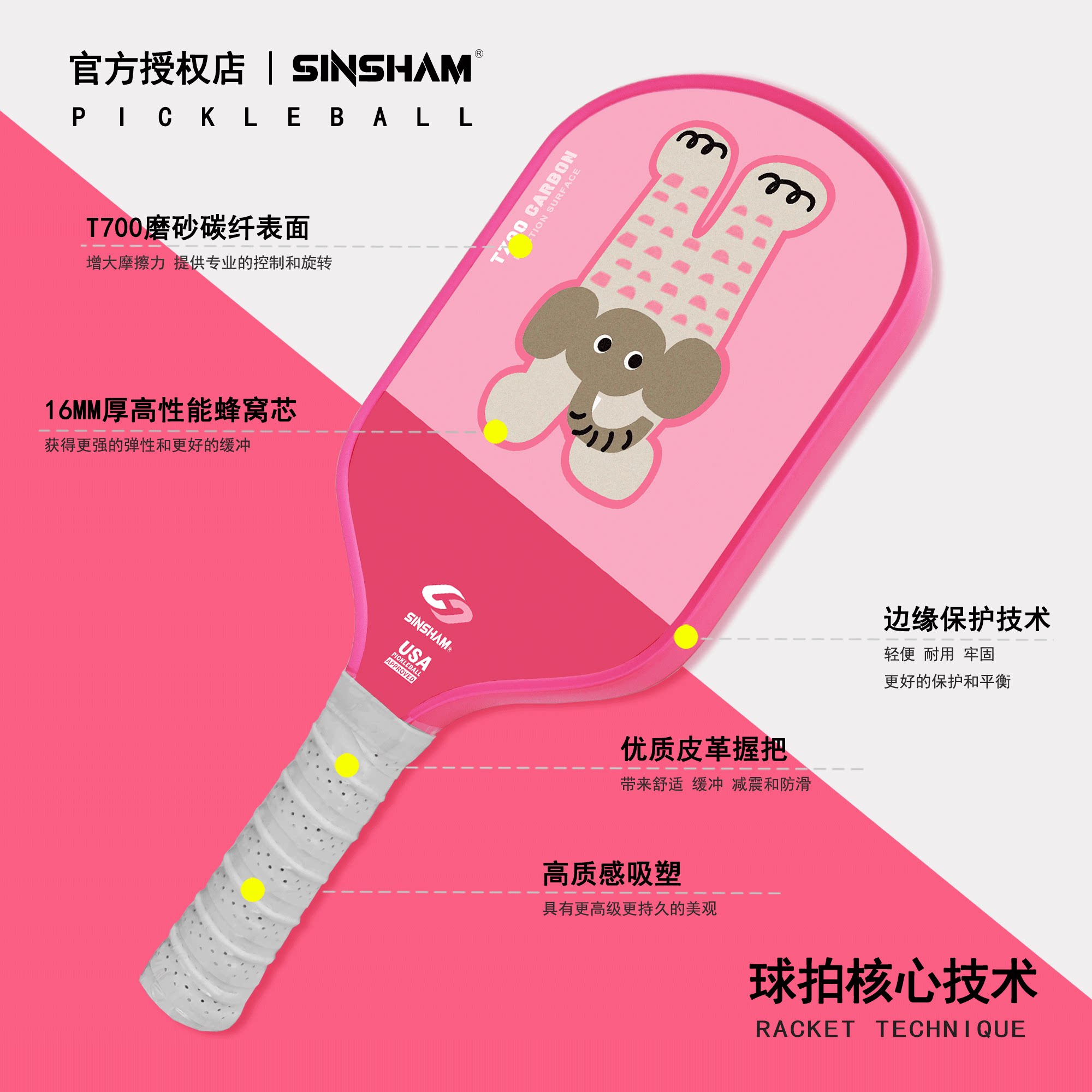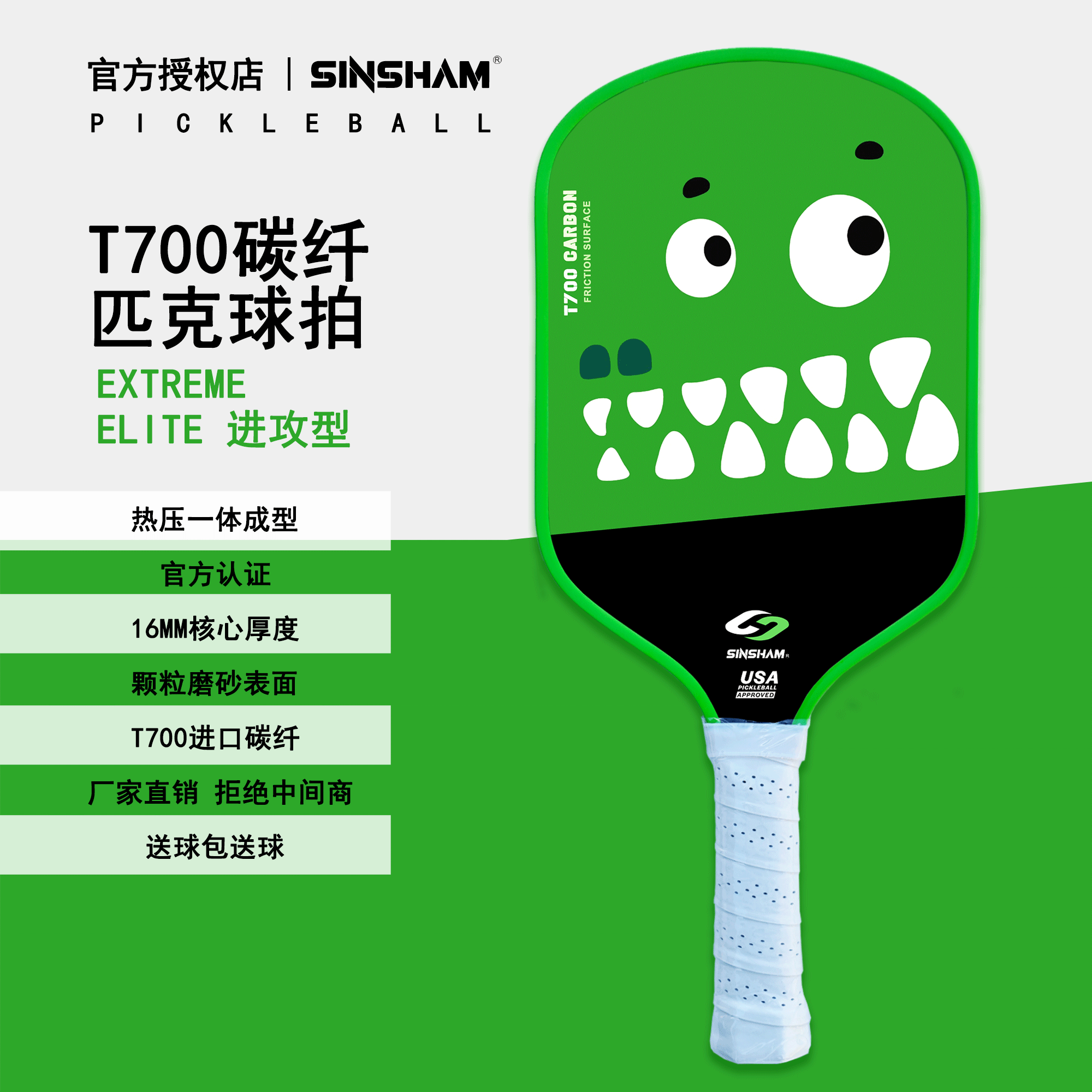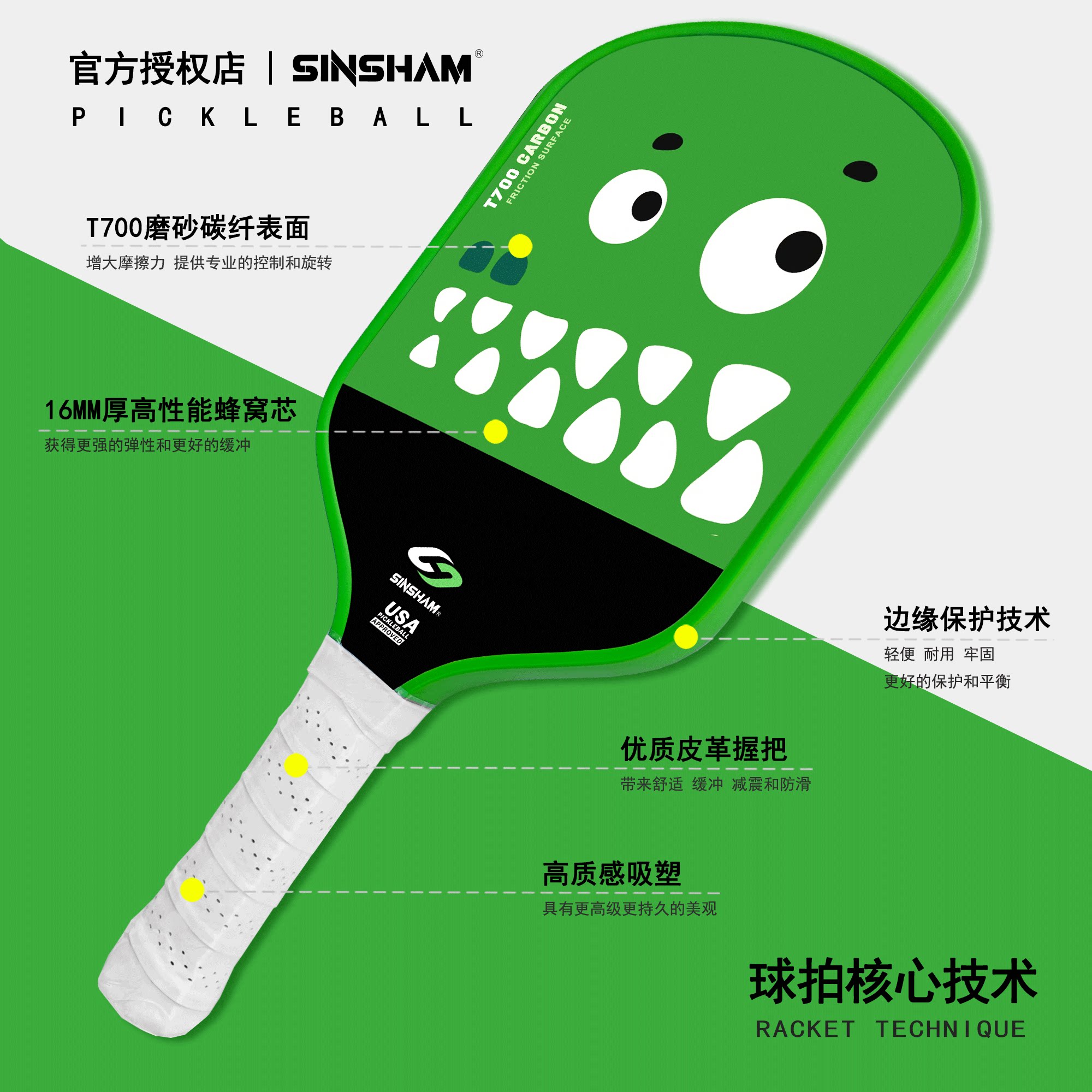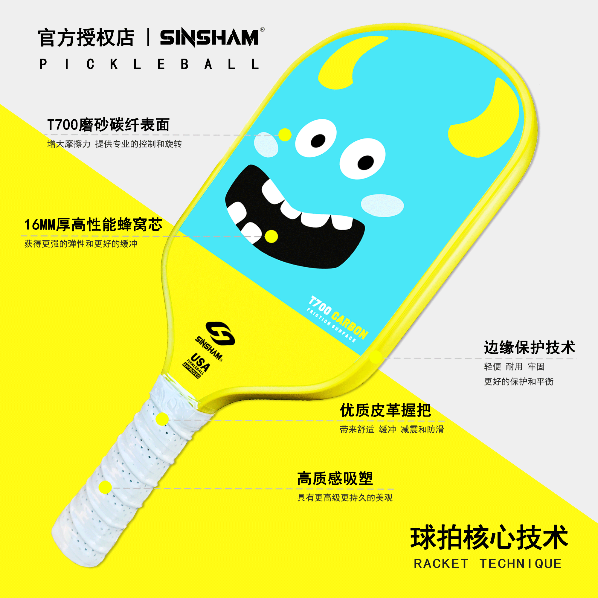 Sinsham Event-Level T700 Carbon Fiber Trendy Hot-Pressed One-Piece Particle Frosted Pickleball Paddle