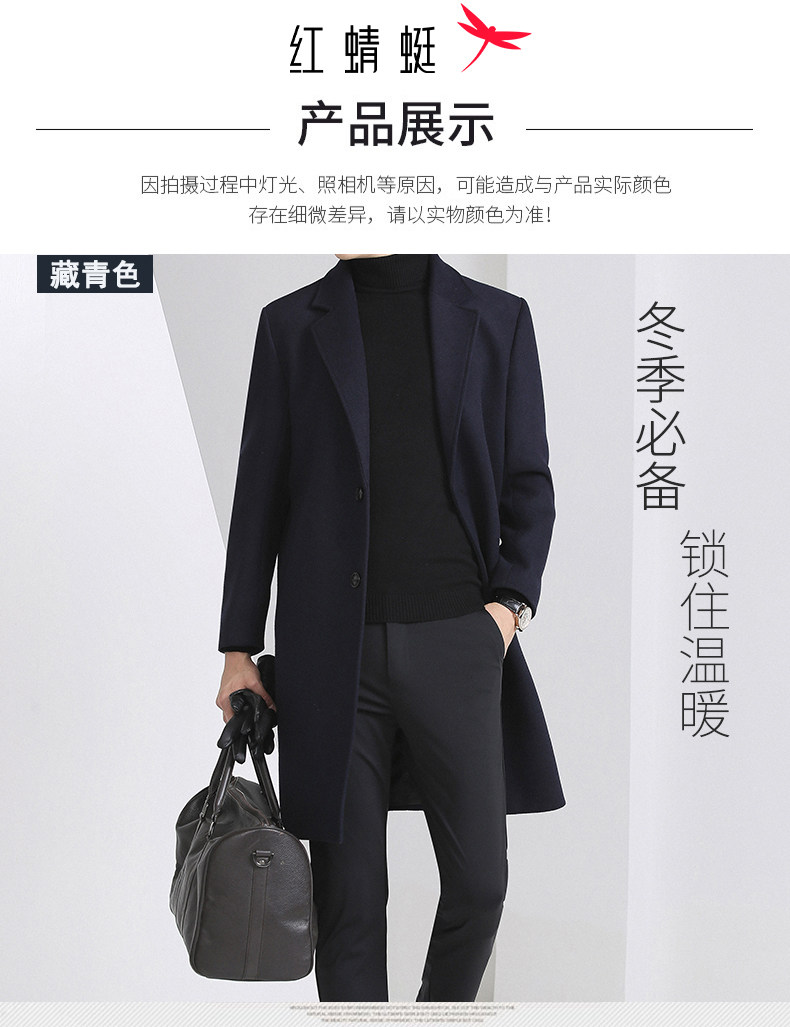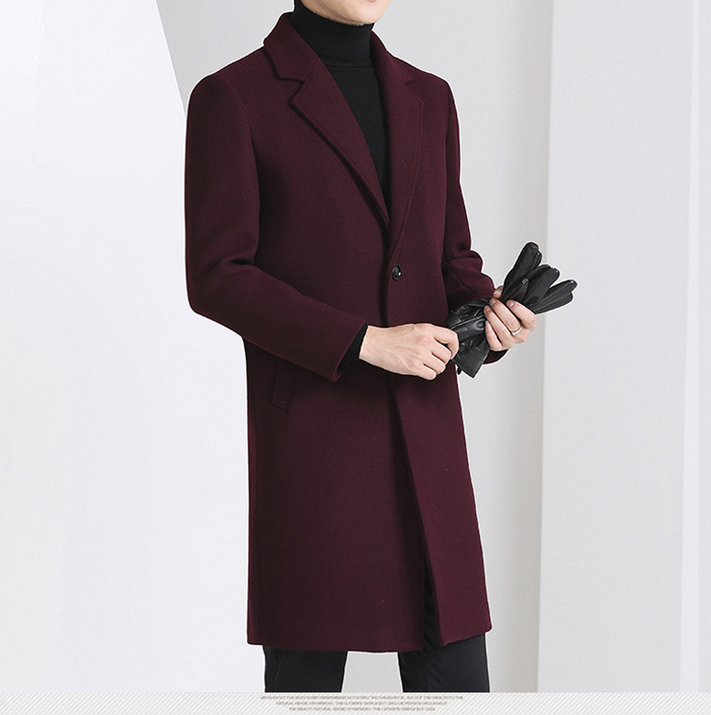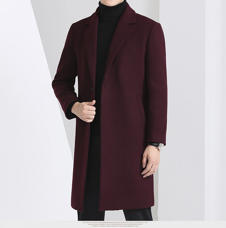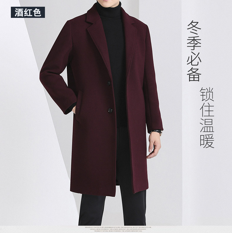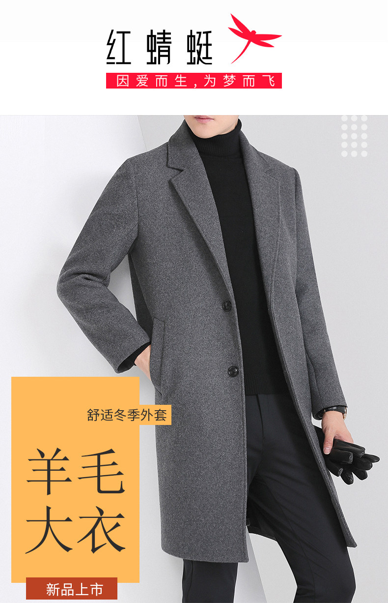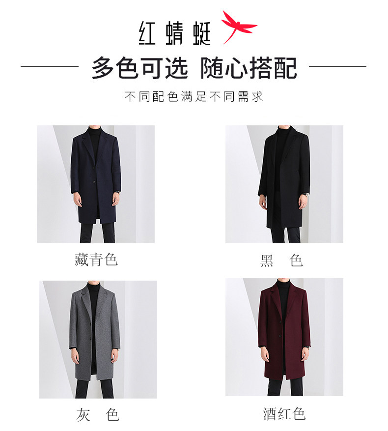 Red Dragonfly Woolen Coat for Men, New Trendy Woolen Outerwear for Spring and Autumn, Casual Mid-Length Trench Coat for Men