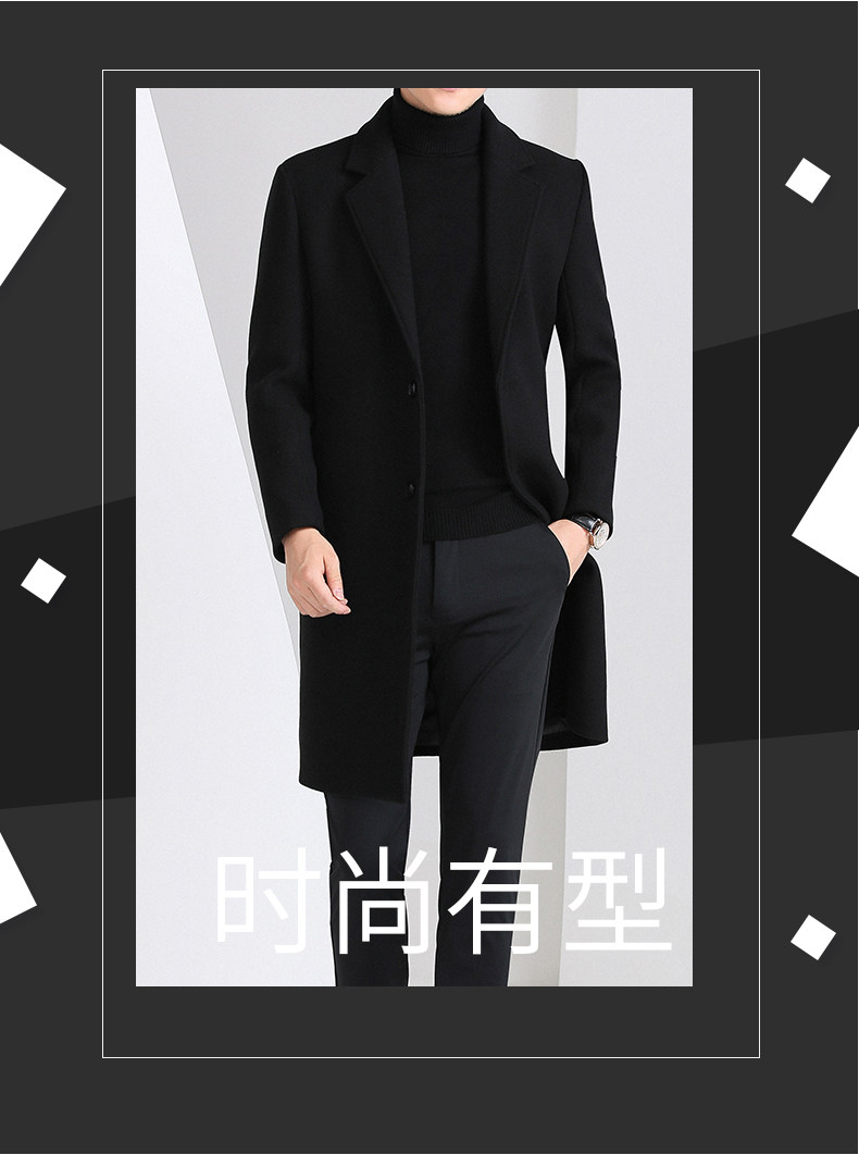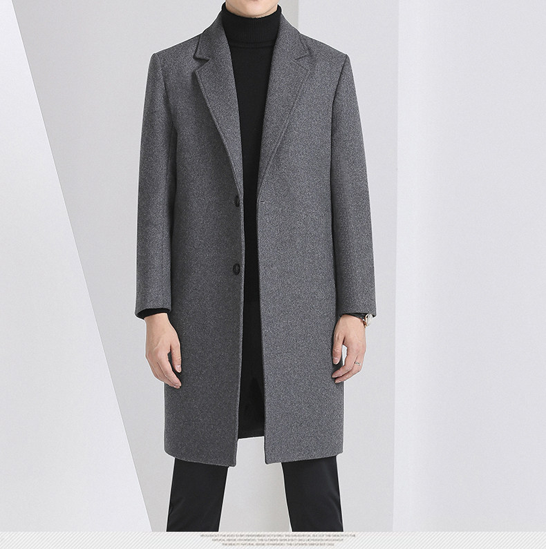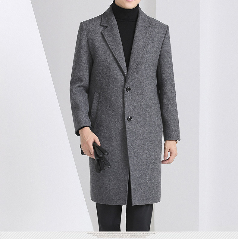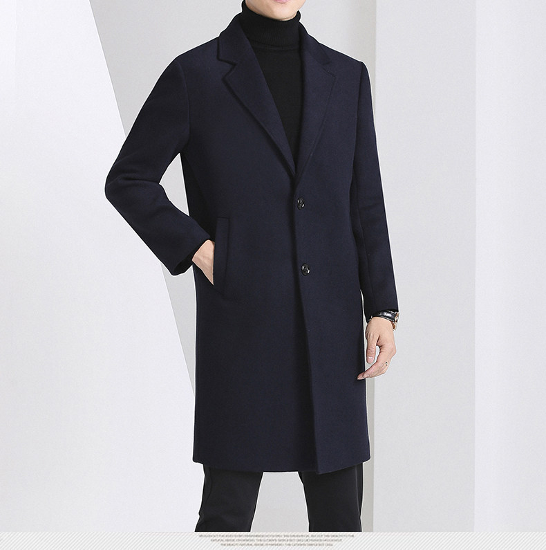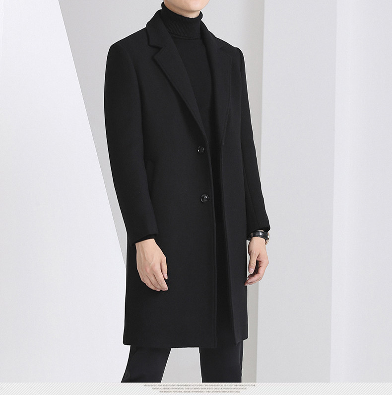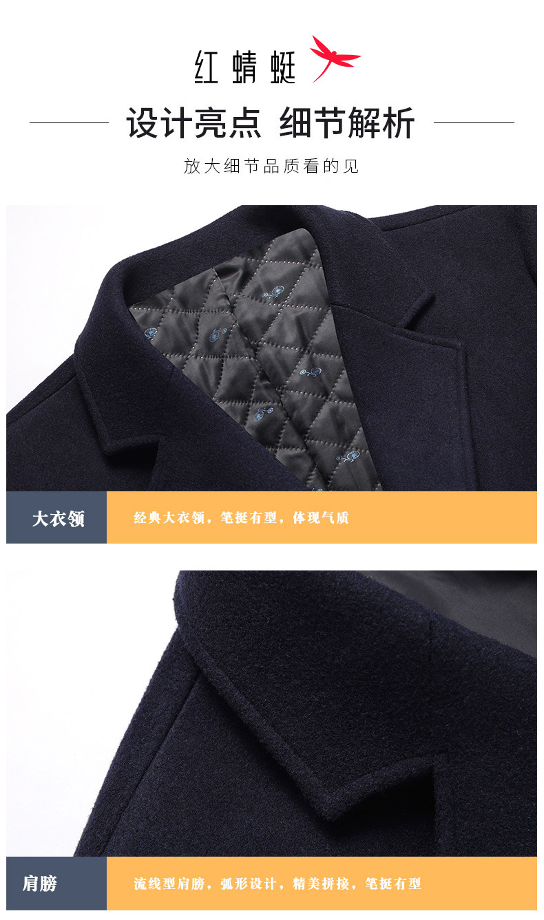 Red Dragonfly Woolen Coat for Men, New Trendy Woolen Outerwear for Spring and Autumn, Casual Mid-Length Trench Coat for Men