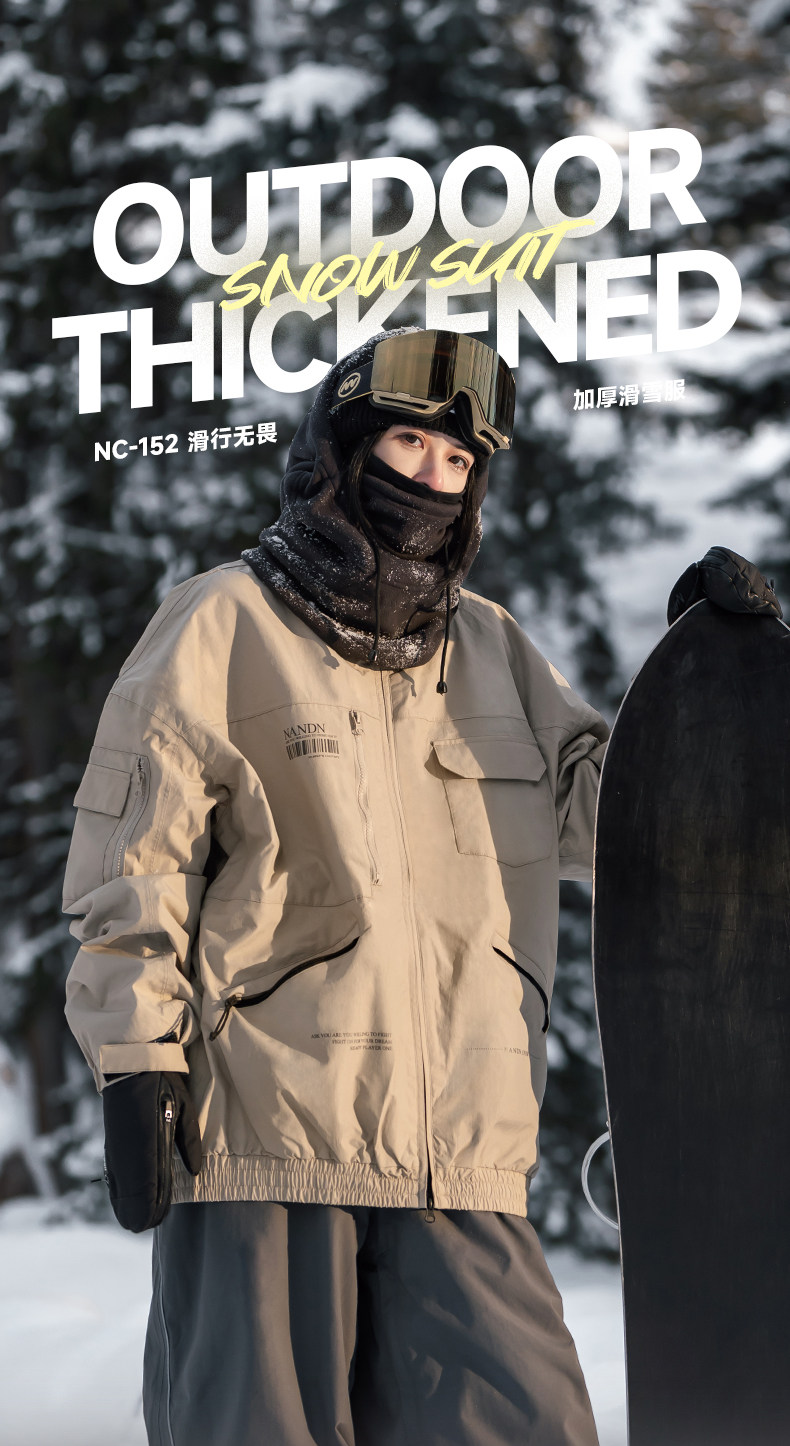 Nanen Ski Jacket for Women, Waterproof and Windproof, Niche Autumn and Winter Loose-Fitting Top, Men's Cold-Proof and Warm Snow Jacket