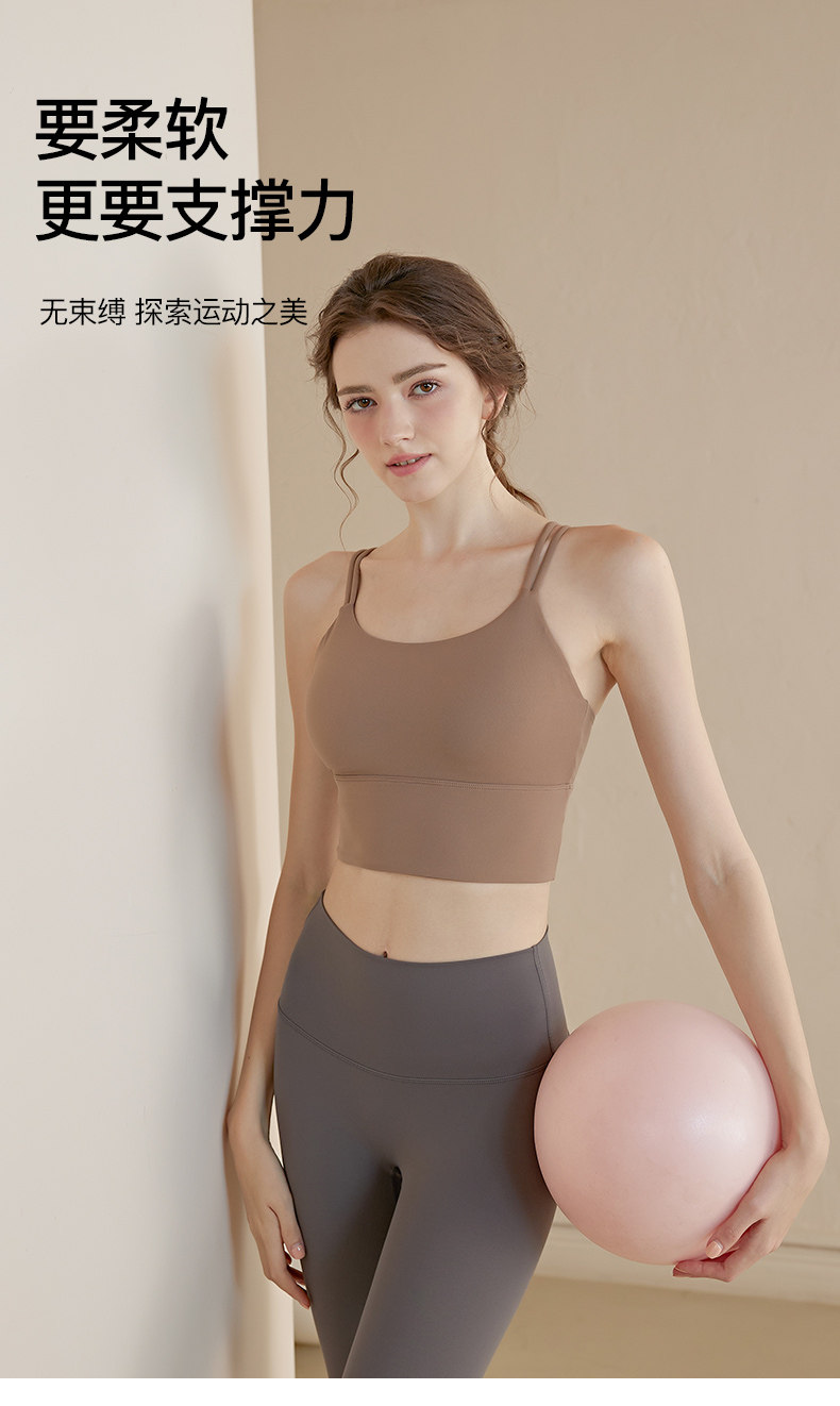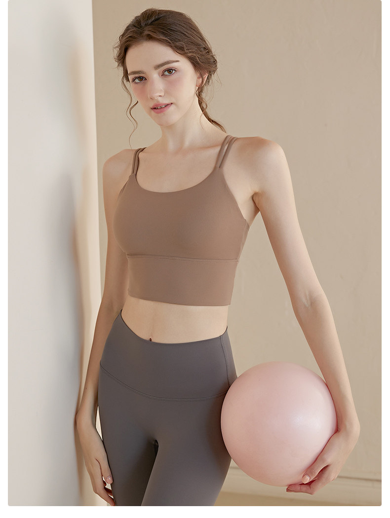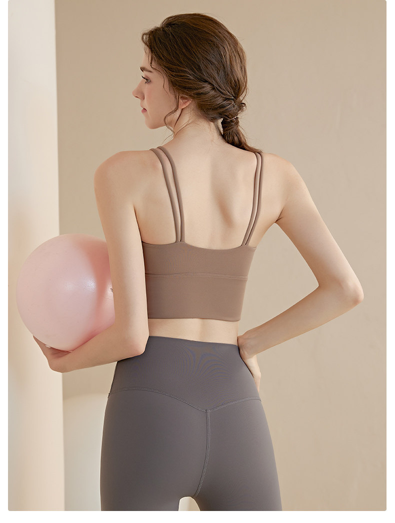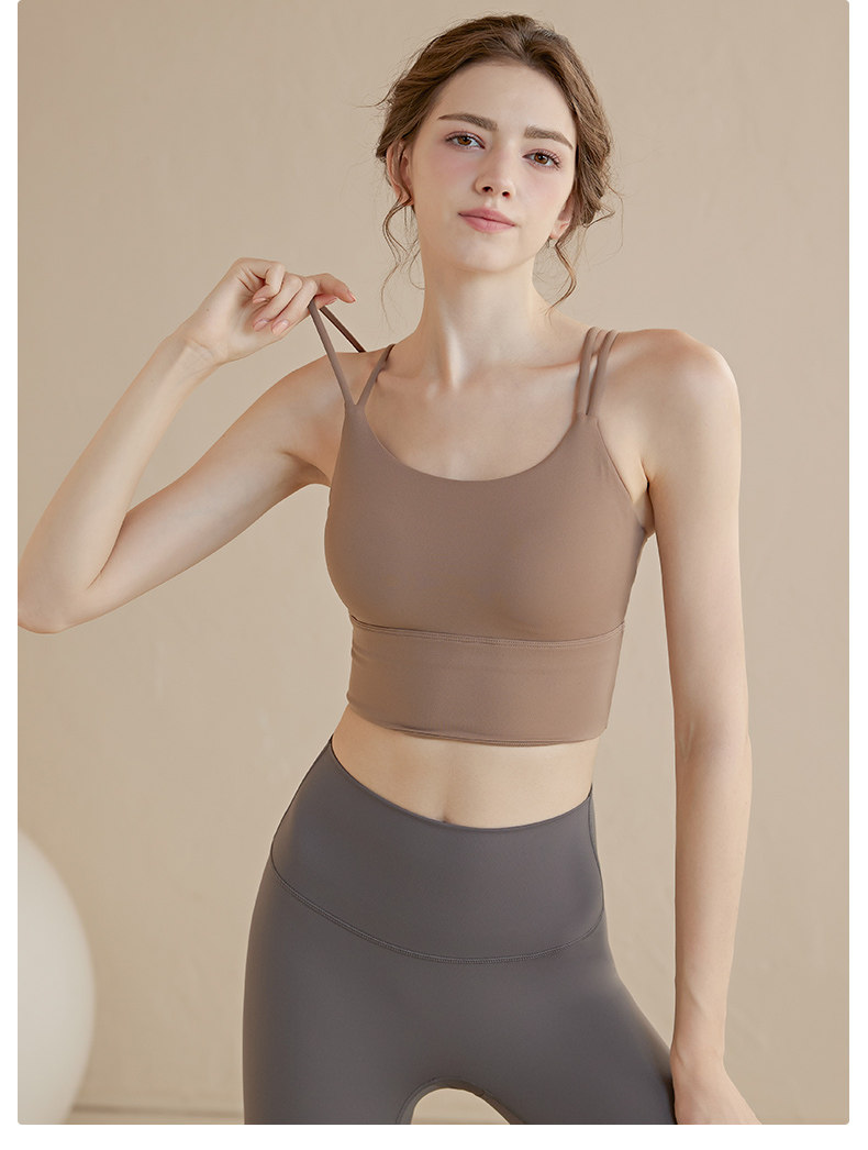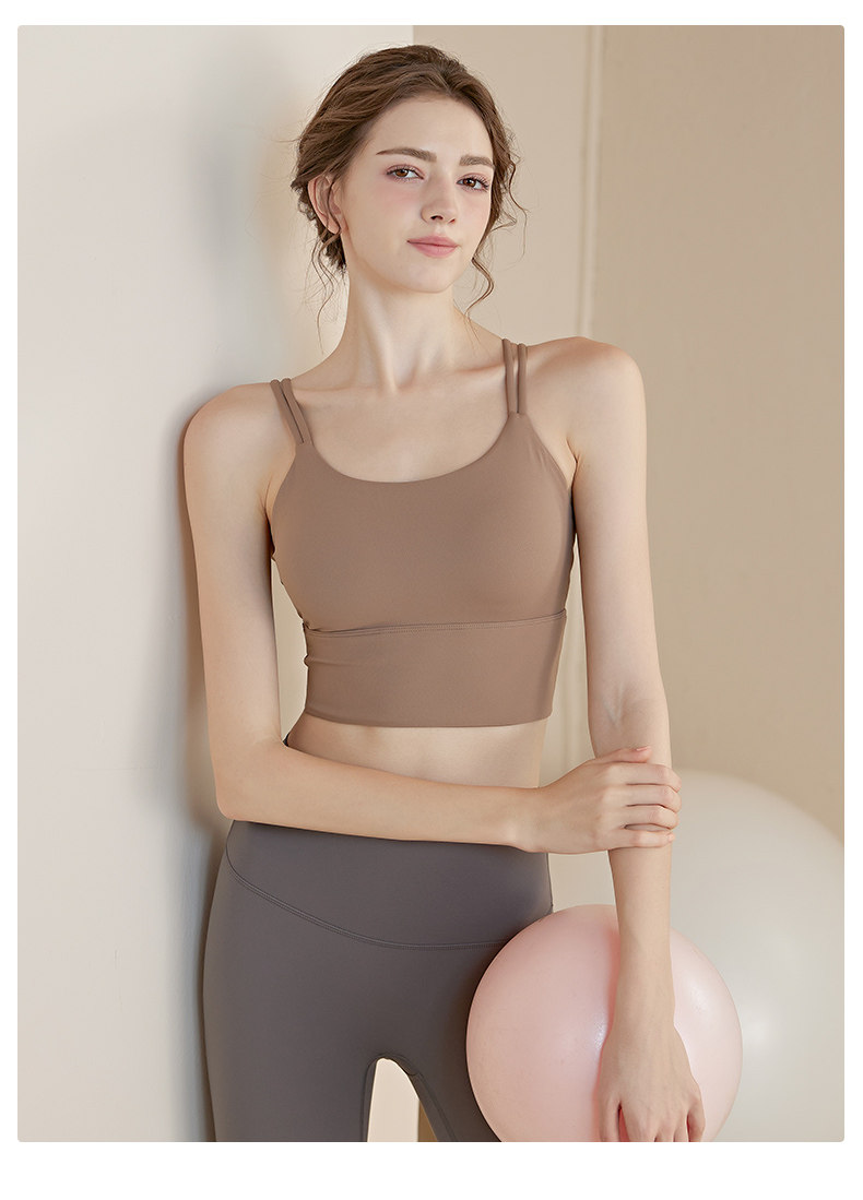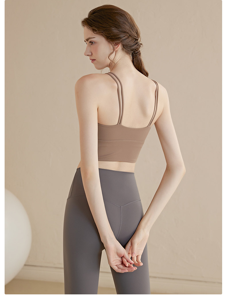 Thin Strap Camisole Yoga Bra with Beautiful Back Design, Shockproof Running Integrated Push-Up Shaping Fitness Top Sports Bra