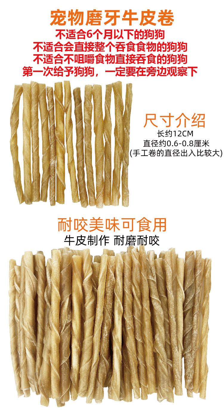 Dog cowhide rolls, bite-resistant dog snacks, teeth cleaning and molar sticks, bone French bulldog molar toys, chewing gum for small and medium-sized dogs