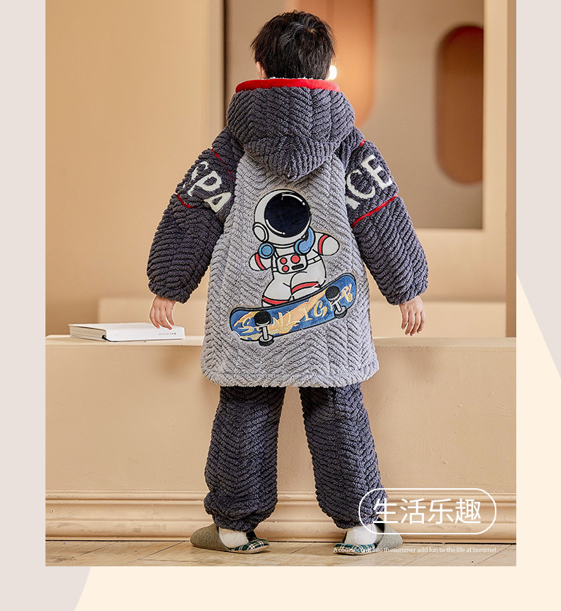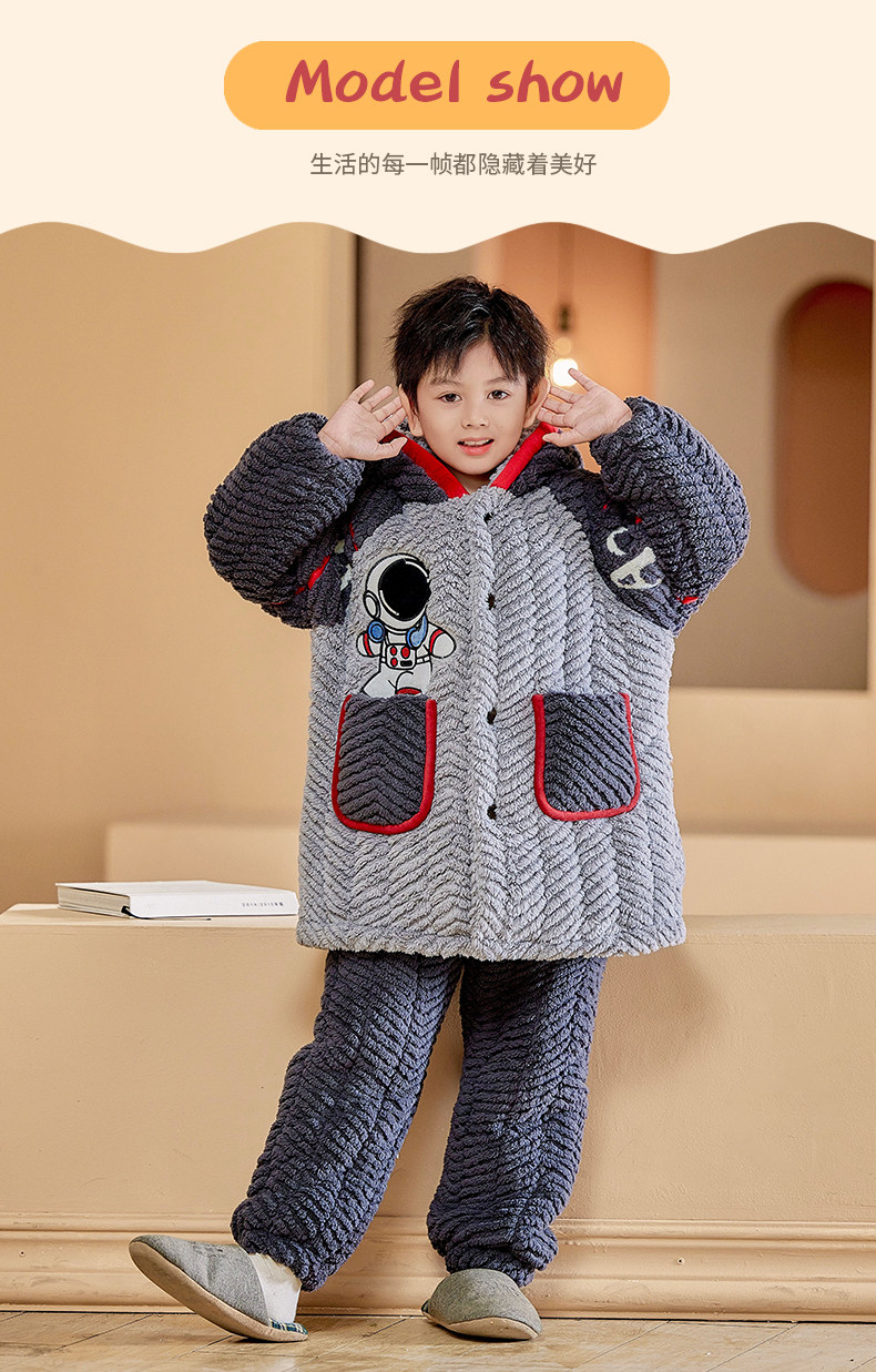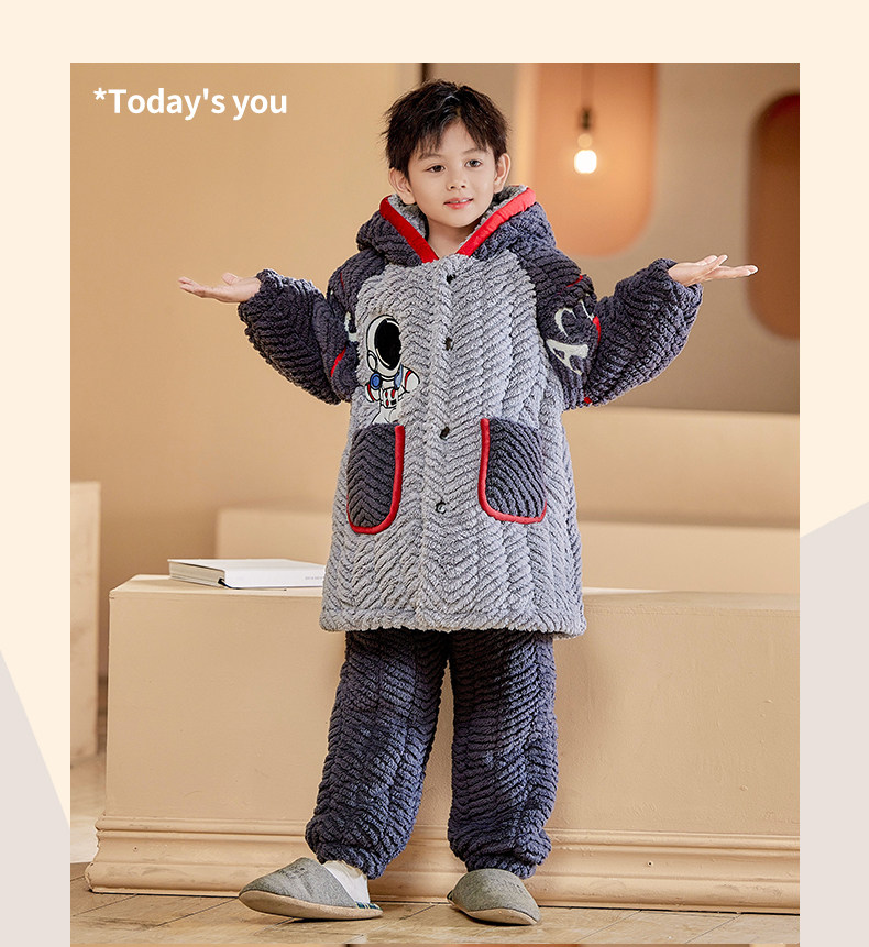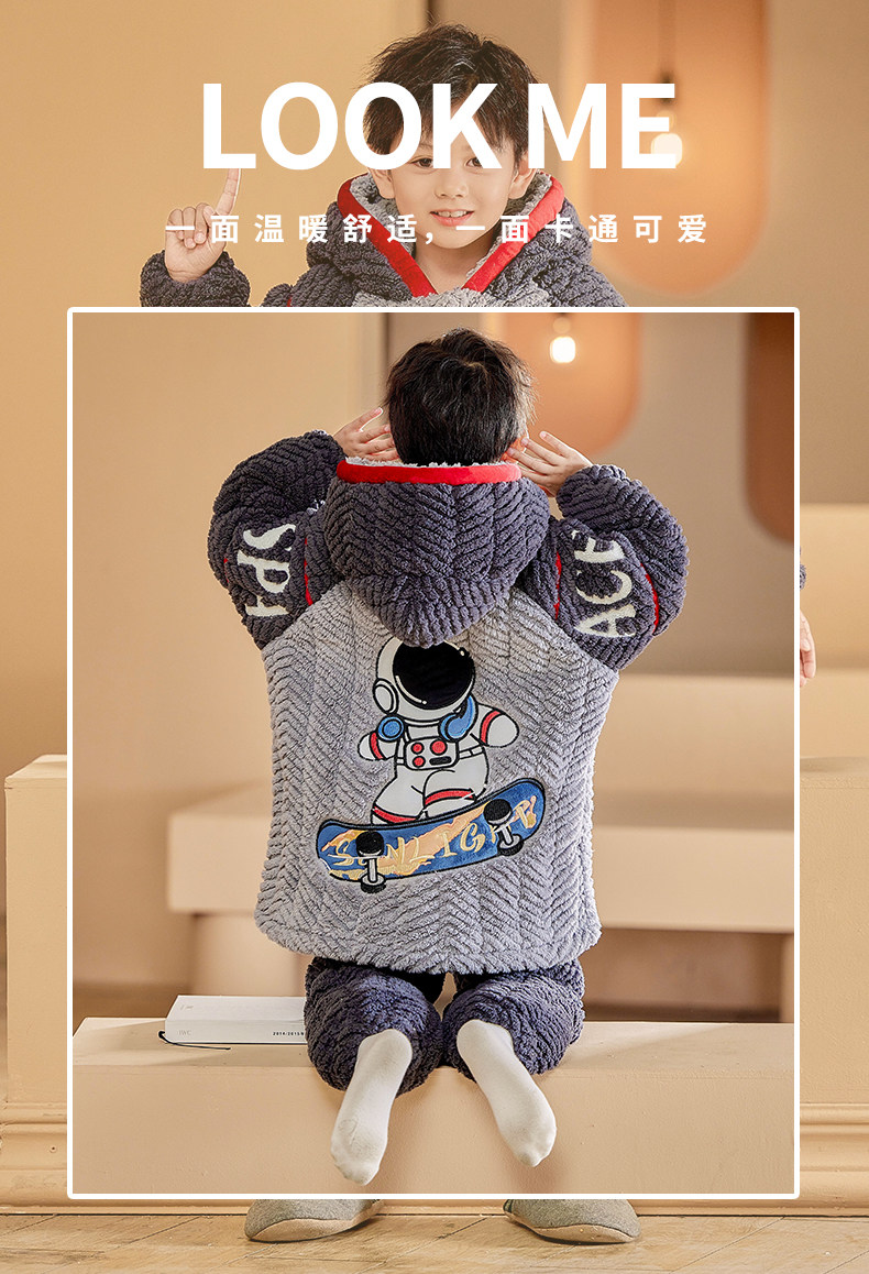New Three-Layer Quilted Cartoon Children's Set for Autumn and Winter, Boys' Coral Fleece Thickened Pajamas and Loungewear