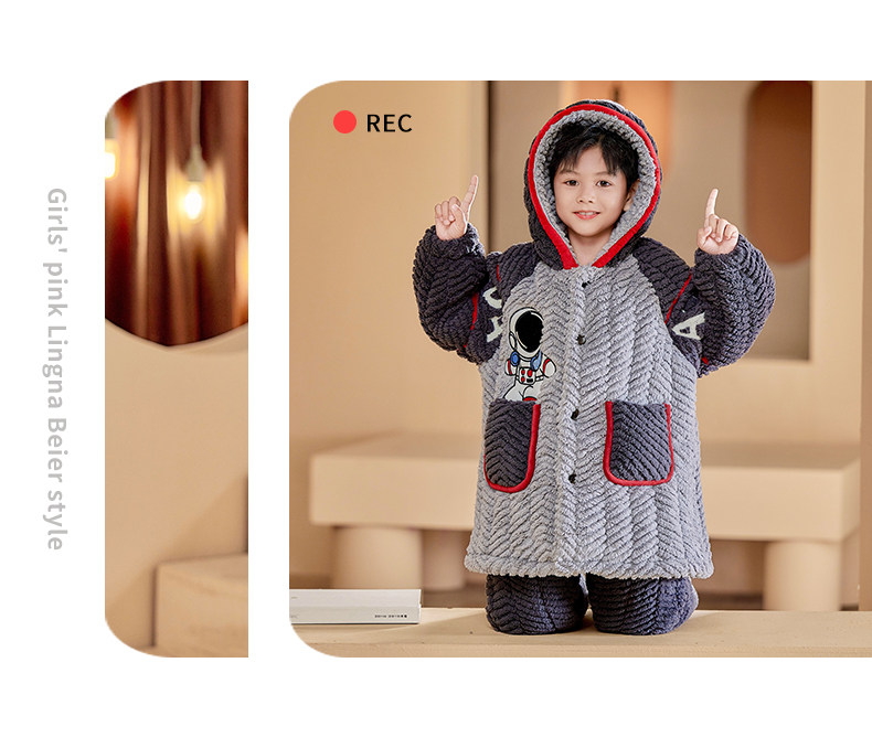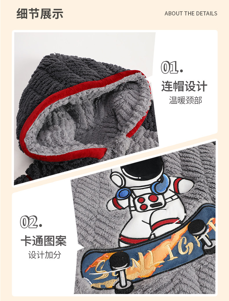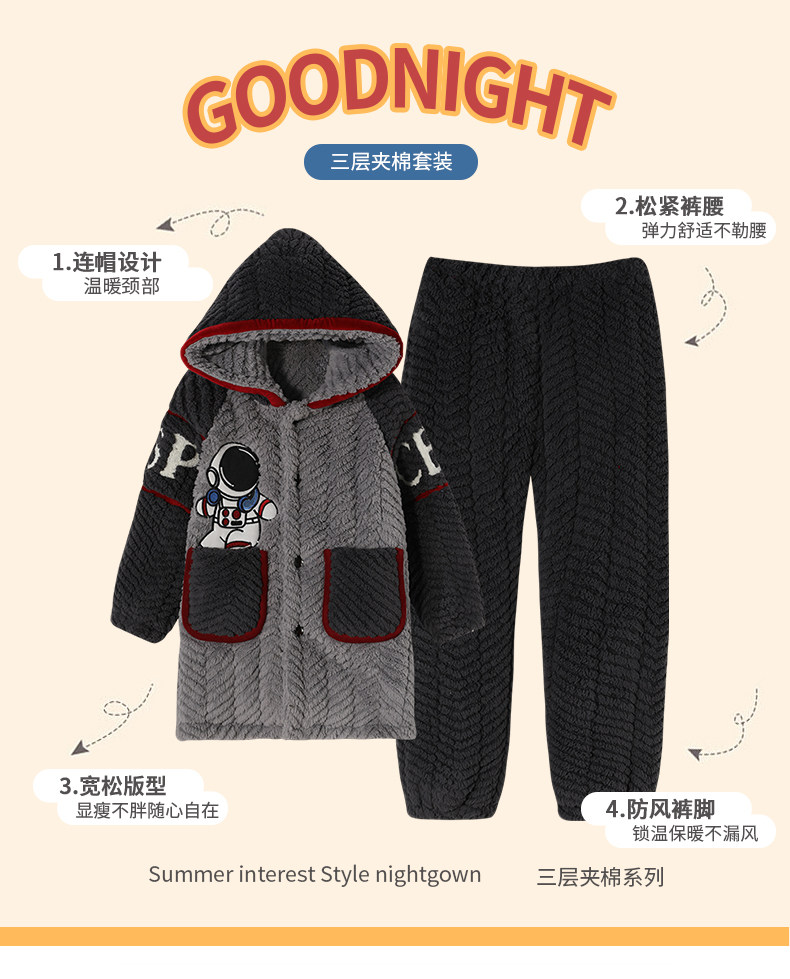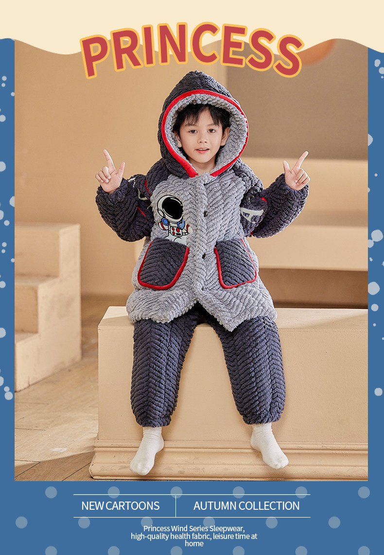 New Three-Layer Quilted Cartoon Children's Set for Autumn and Winter, Boys' Coral Fleece Thickened Pajamas and Loungewear