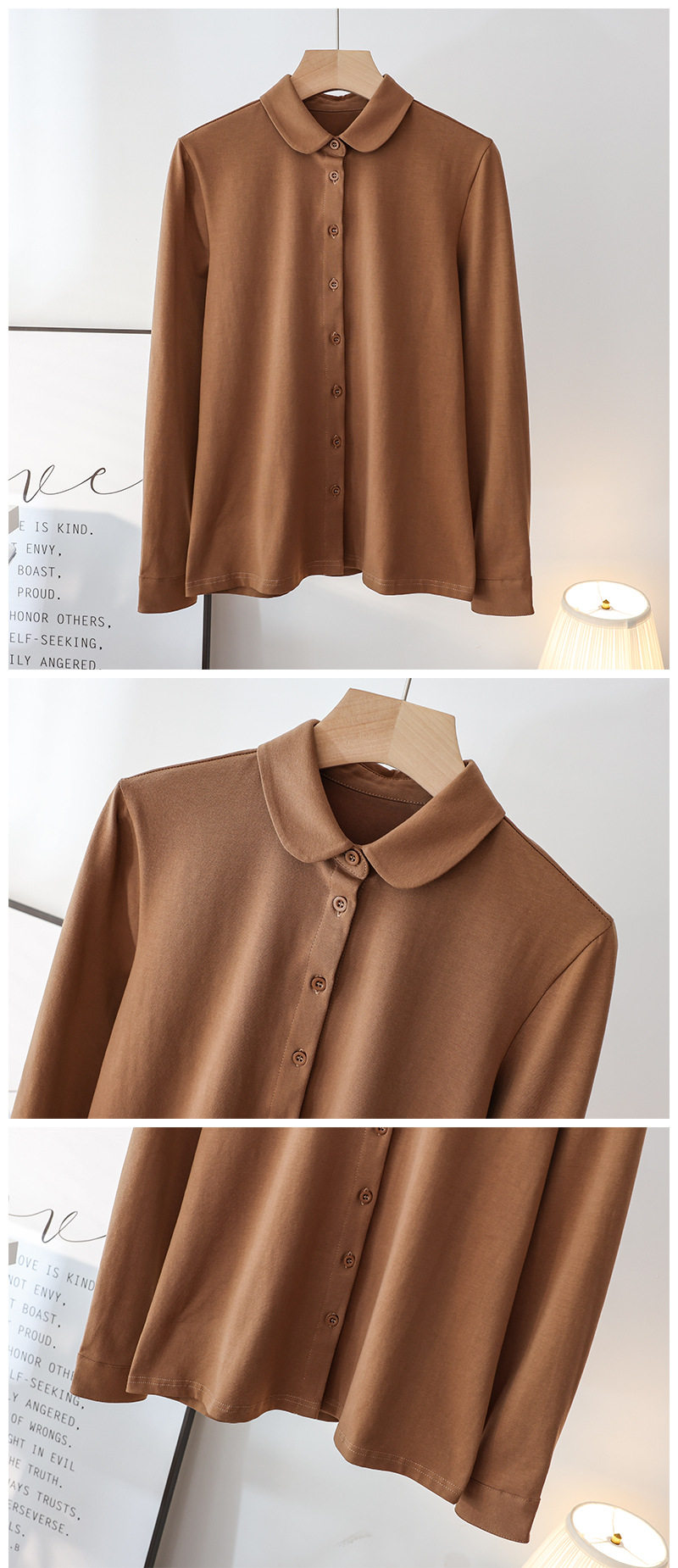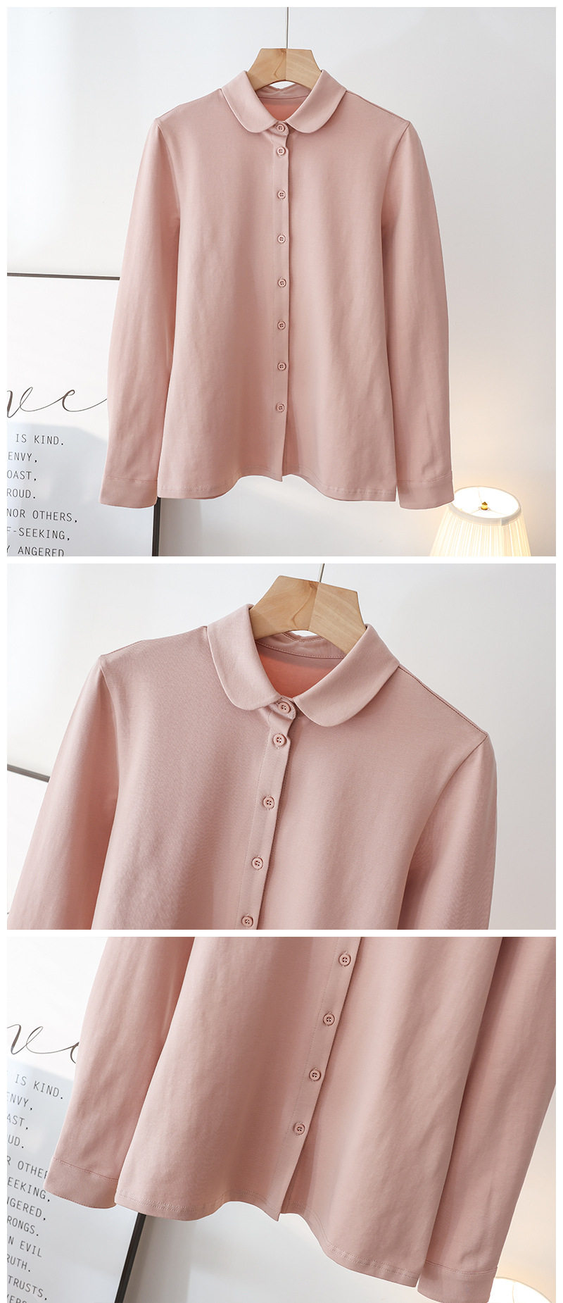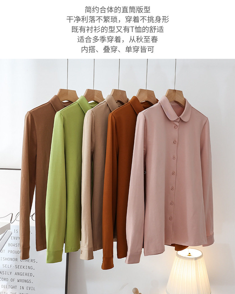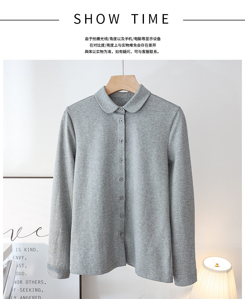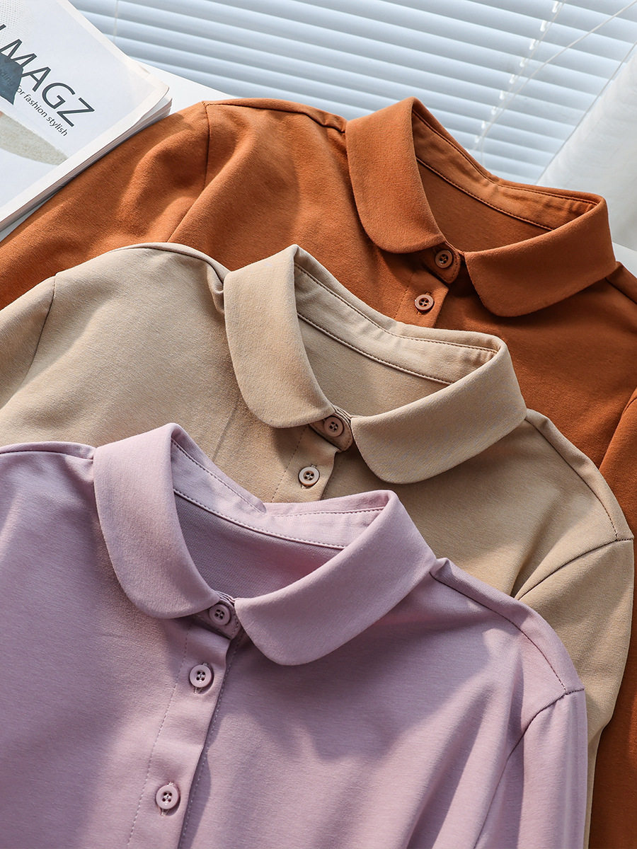 Big doll collar shirt women's elastic cotton long-sleeved 2025 spring new style literary age-reducing round neck shirt top