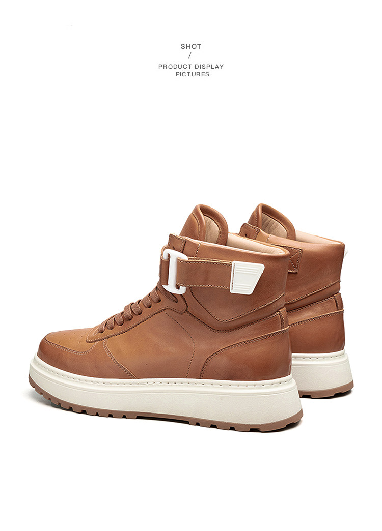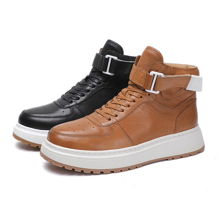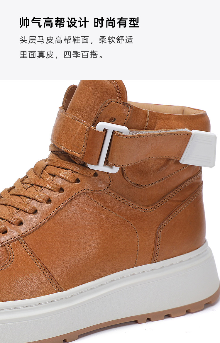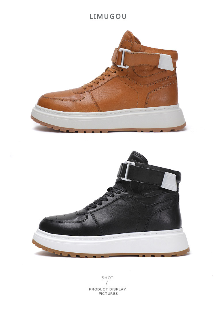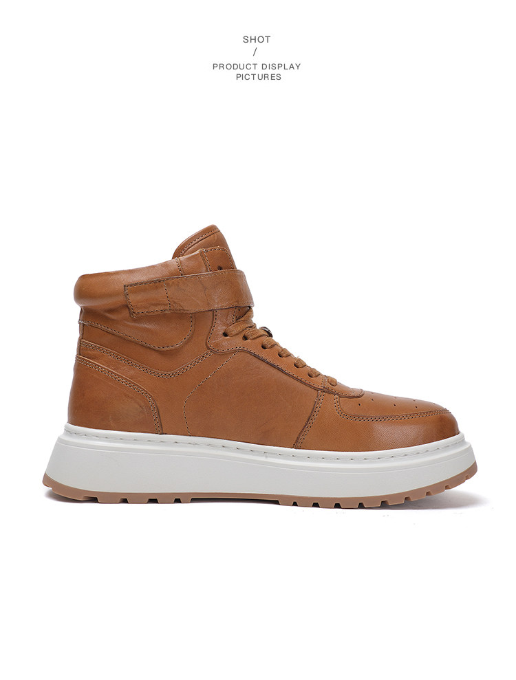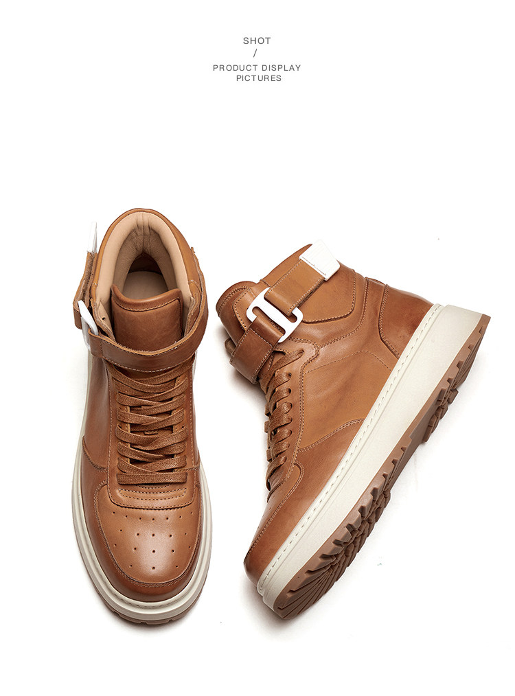 High-Top Shoes for Men, Genuine Leather, Goodyear Handmade, High-End Horse Leather, Trendy Casual Sneakers, British Retro Thick-Soled Martin Boots