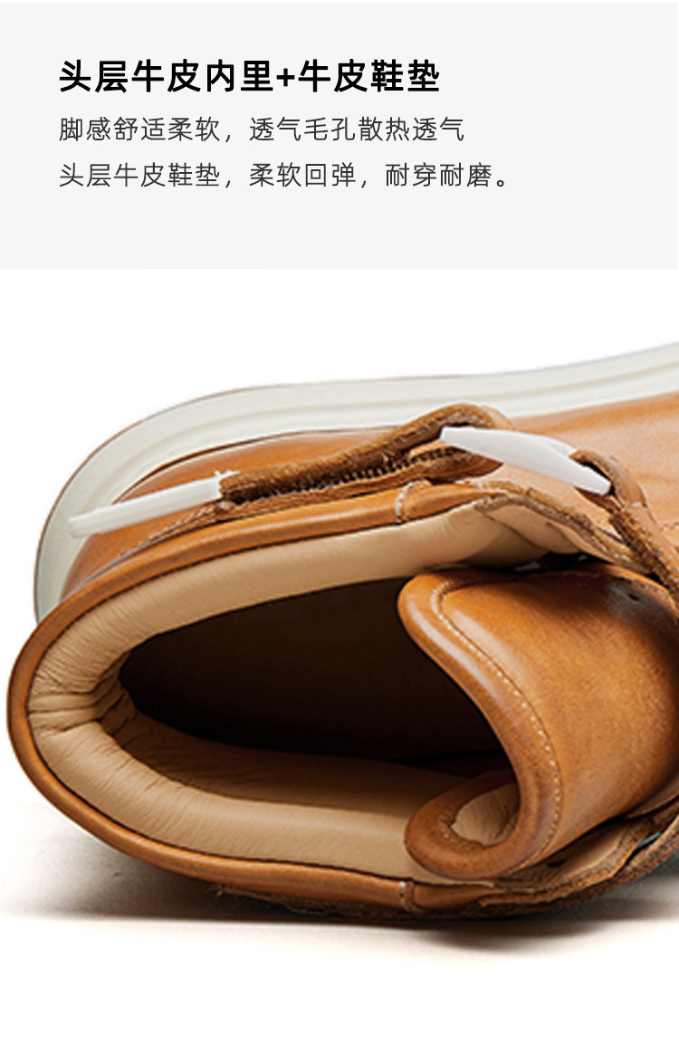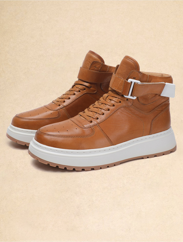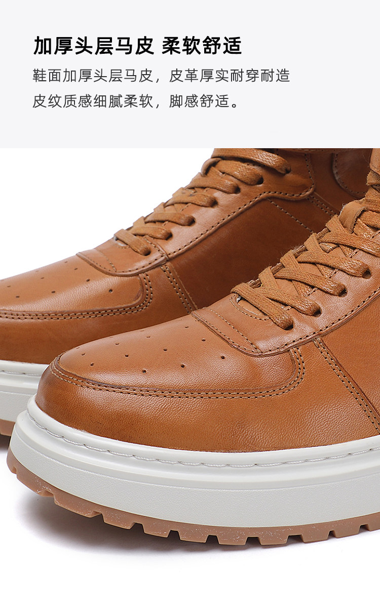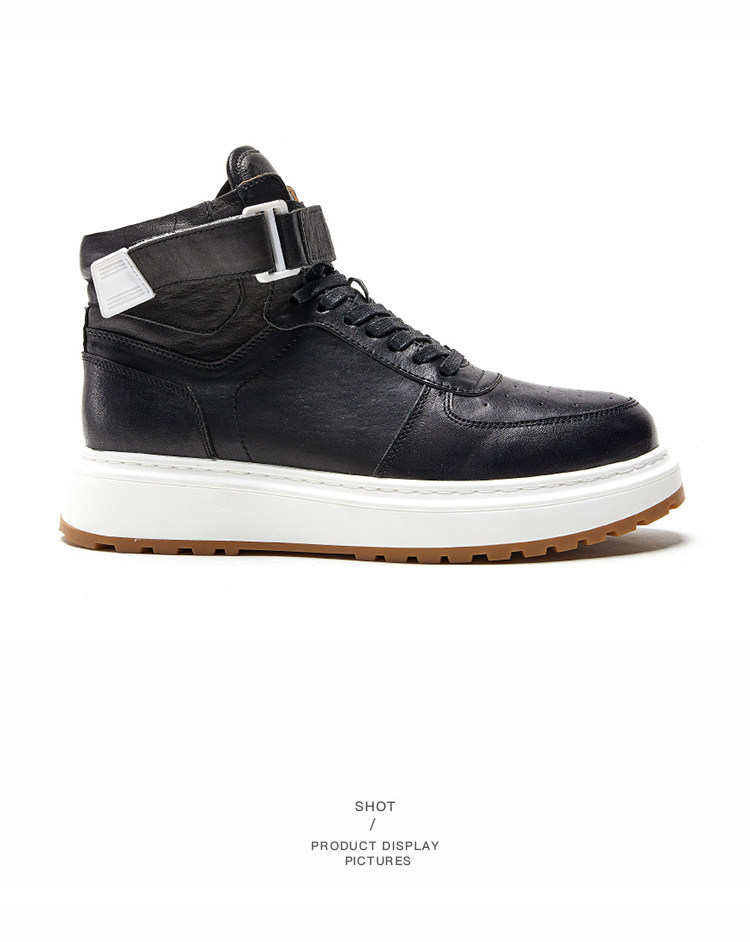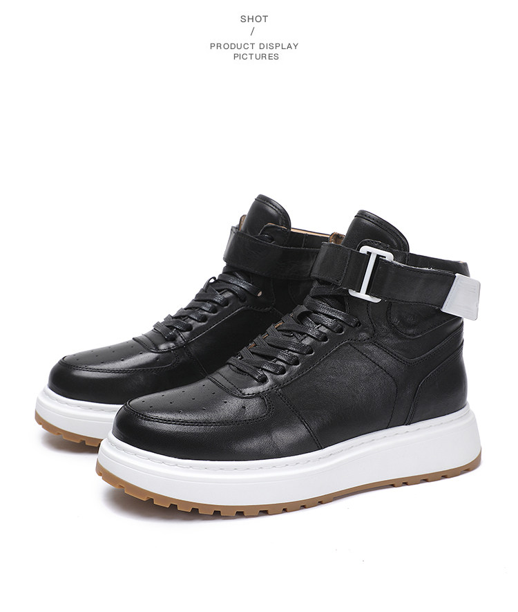High-Top Shoes for Men, Genuine Leather, Goodyear Handmade, High-End Horse Leather, Trendy Casual Sneakers, British Retro Thick-Soled Martin Boots