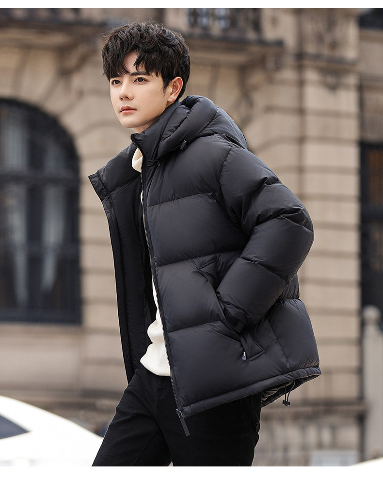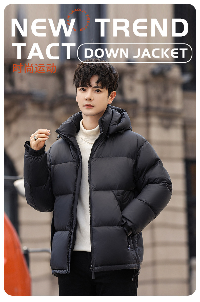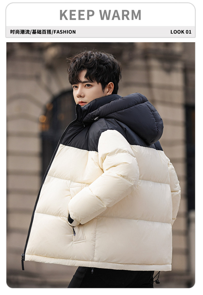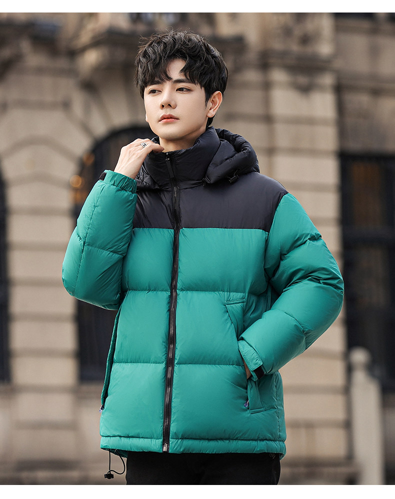 Hooded down jacket men's winter new trendy brand trend plus velvet thickened contrasting color stitching cold-proof warm jacket for men