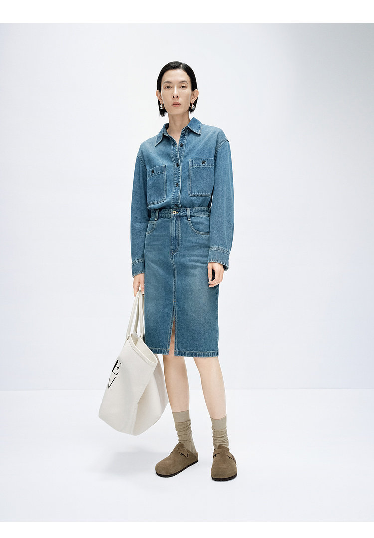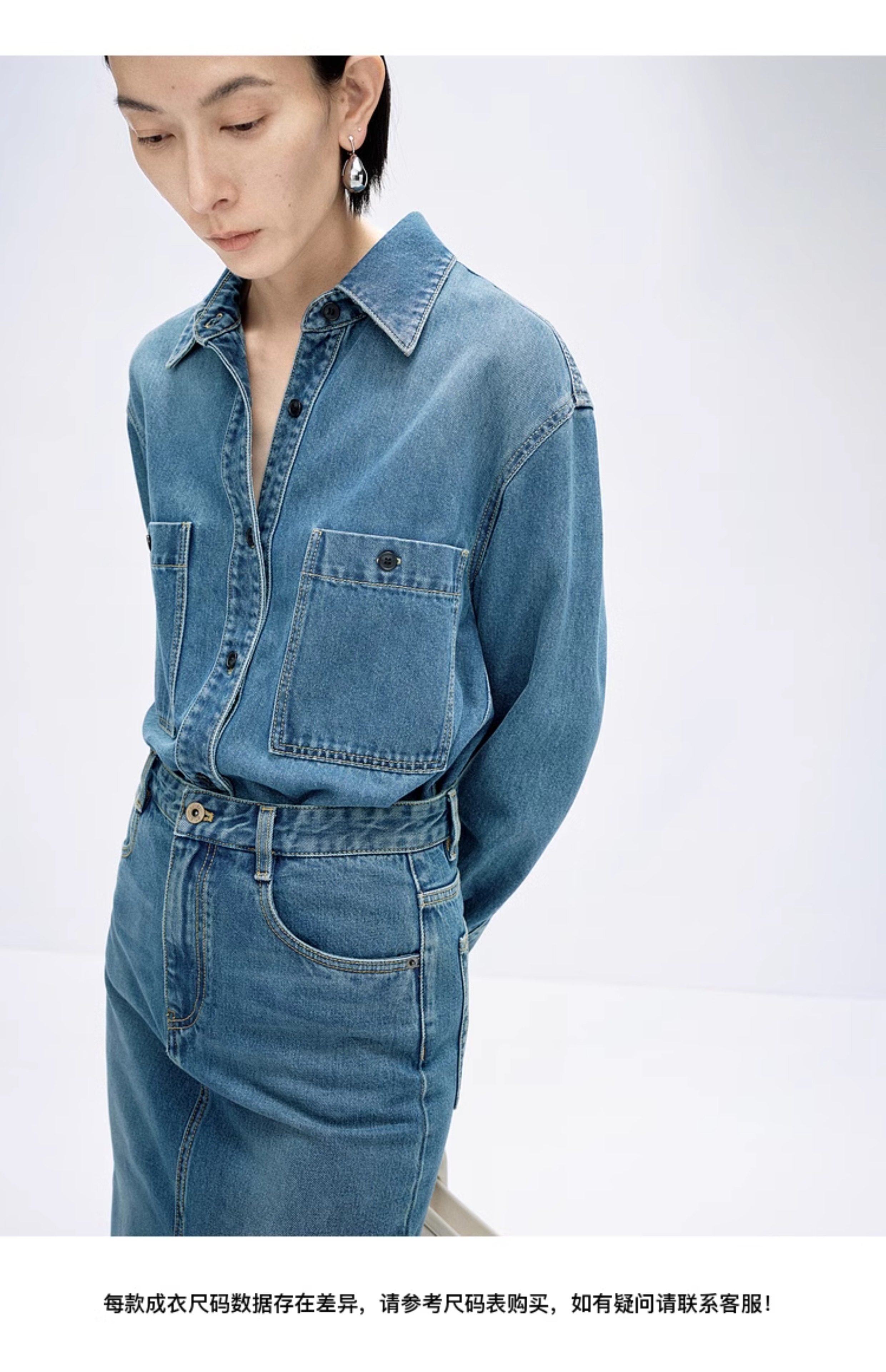 Edition Denim Shirt Women's Spring New Style Triacetate Soft Cotton Workwear Style Shirt Ebd1Sht015