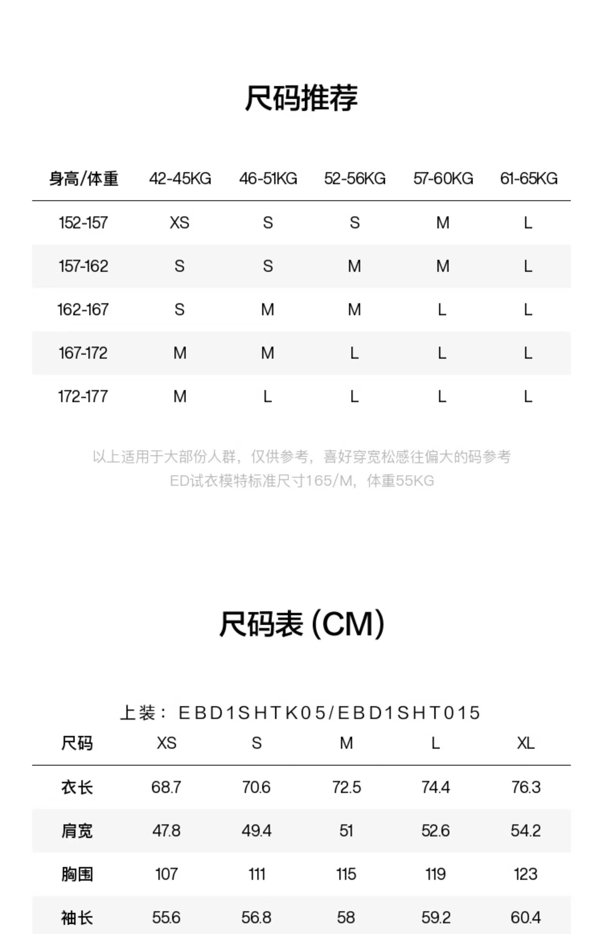 China (cm) 160-165/84-86 165-170 / 88-90 167-172 / 92-96 168-173 / 98-102 170-176 / 106-110