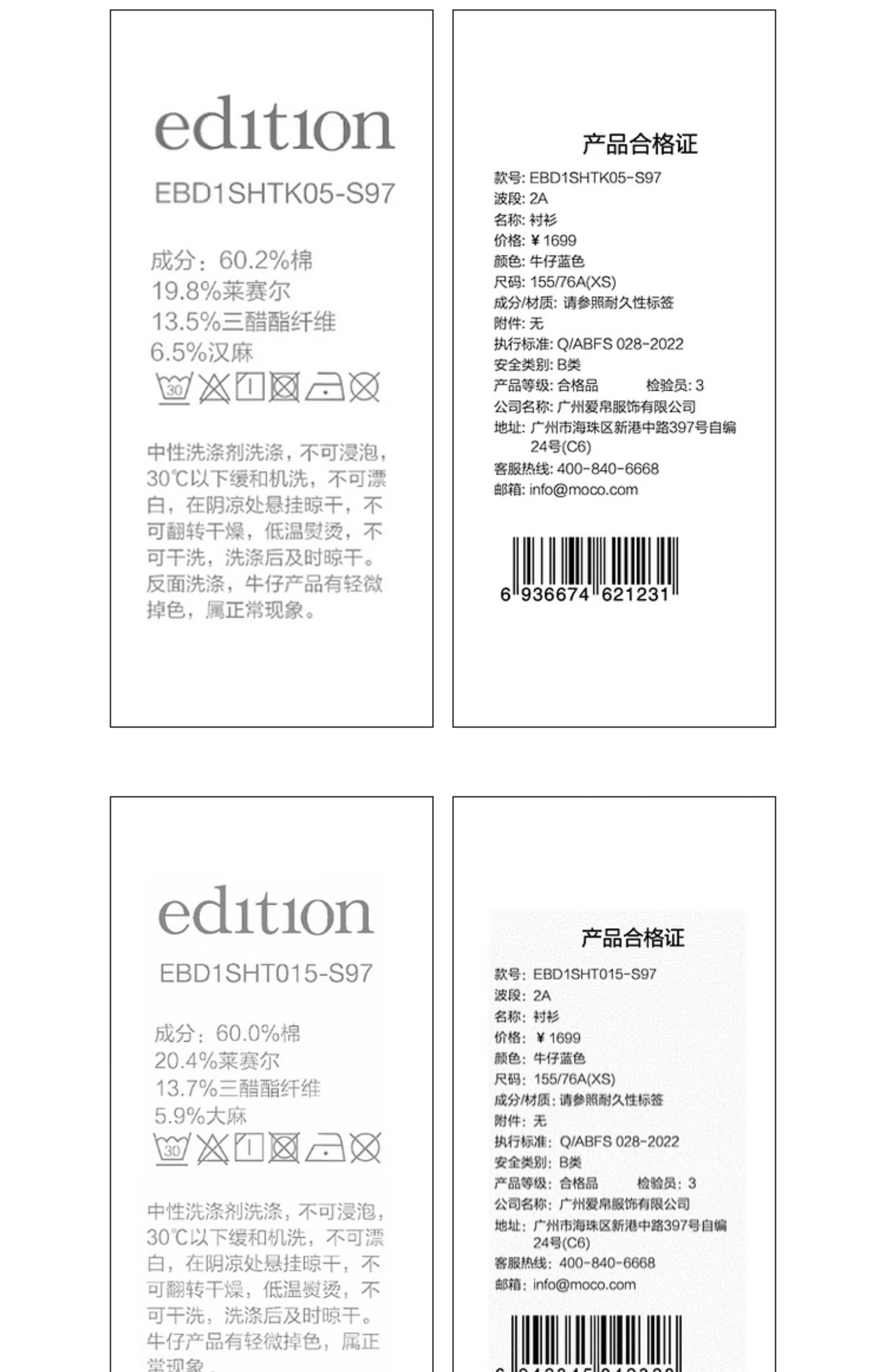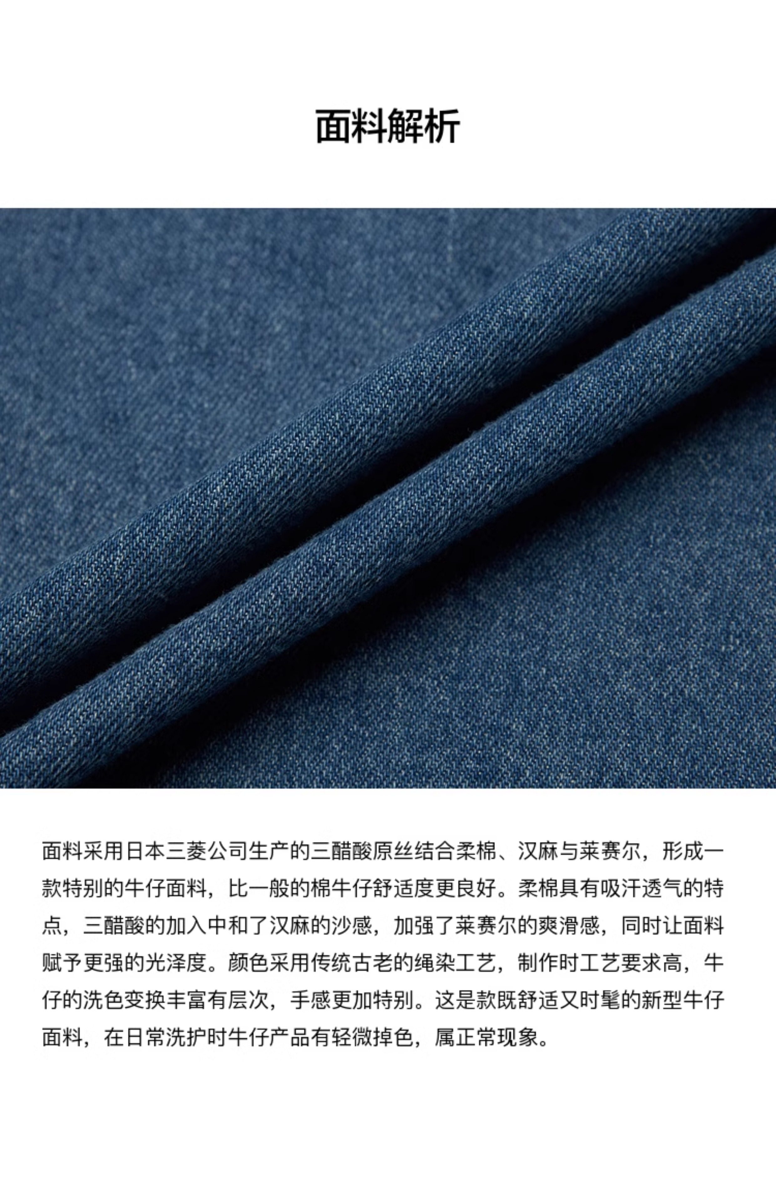 Material Composition Cotton 60.0% Lyocell Fiber (Lyocell) 20.4% Triacetate Fiber (Triacetate Fiber) 13.7% Hemp(Hemp) 5.9%