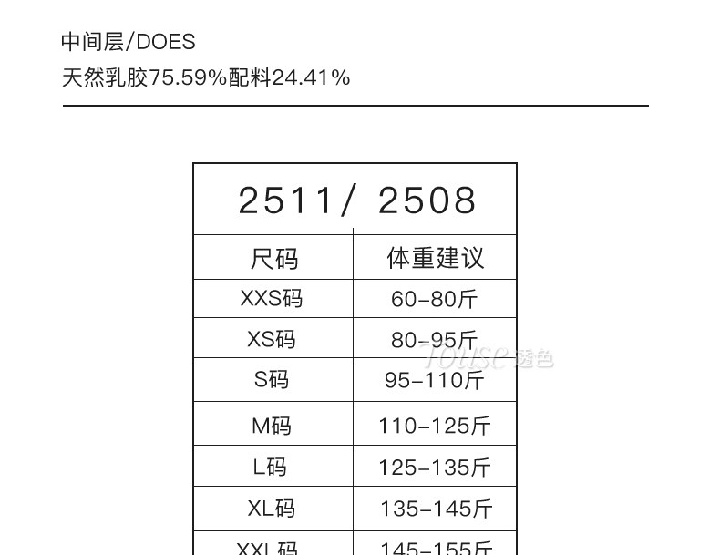 Size XXS (suitable for 60-80Jin Jin equal to 0.5kg),XS (suitable for 80-95Jin Jin equal to 0.5kg),S (suitable for 95-110 Jin Jin equals 0.5 kg),M (suitable for 110-125 Jin Jin equals 0.5 kg),L (suitable for 125-135 Jin Jin is equal to 0.5 kg),XL (suitable for 135-145Jin Jin equal to 0.5kg),XXL (suitable for 145-155 Jin Jin equal to 0.5 kg),XXXL (suitable for 155-170Jin Jin equal to 0.5kg)