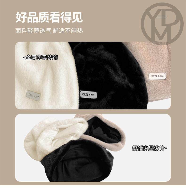 Women's Hat for Sleeping at Night, Pressure-Free, Furry, Anti-Frizz, Warm, Postpartum Hat, Cute for Winter