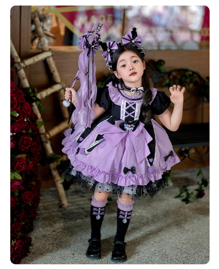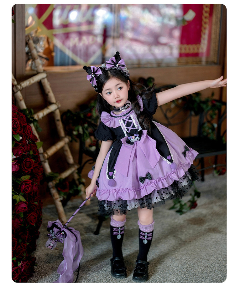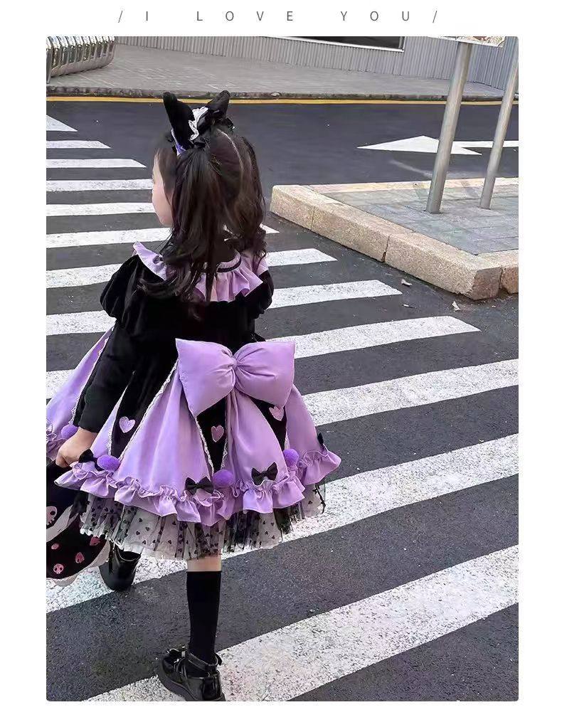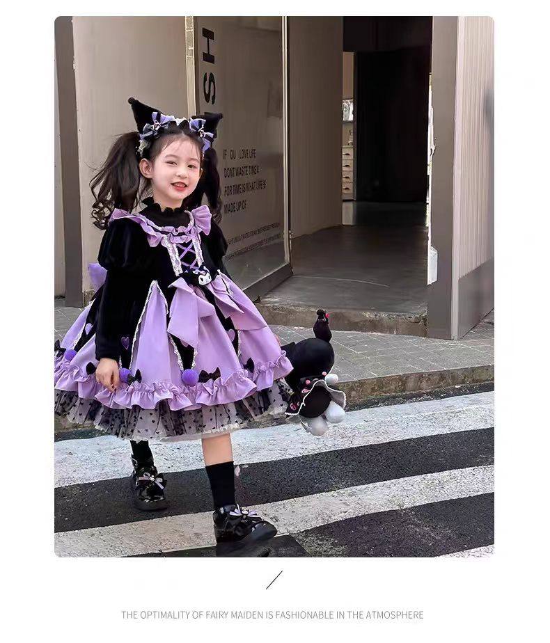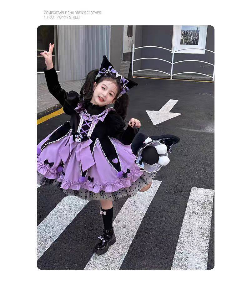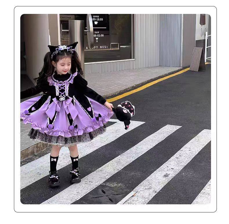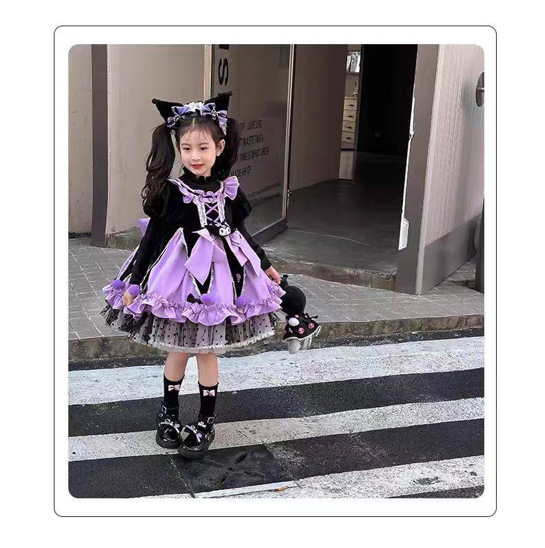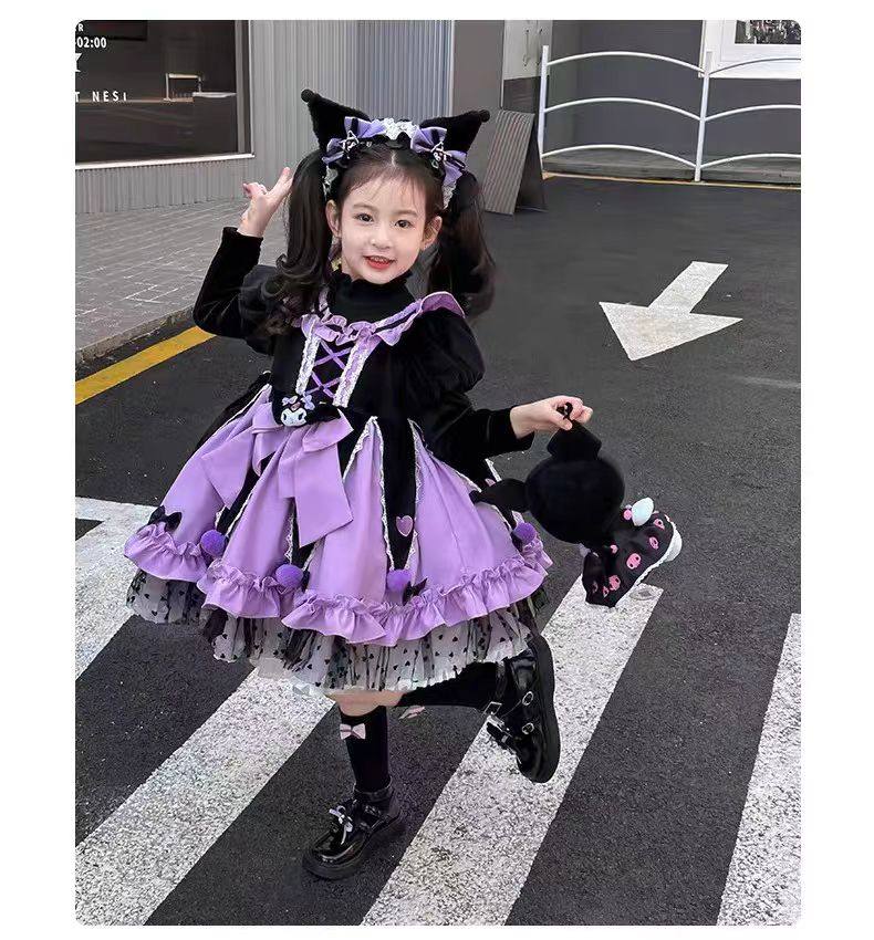 Kuromi Herbst und Winter langärmeliger samtverdickter Lolita-Tutu-Rock für Damen. Kinder-Cos-Performance-Kostüme für Damen-Frühlings- und Herbströcke