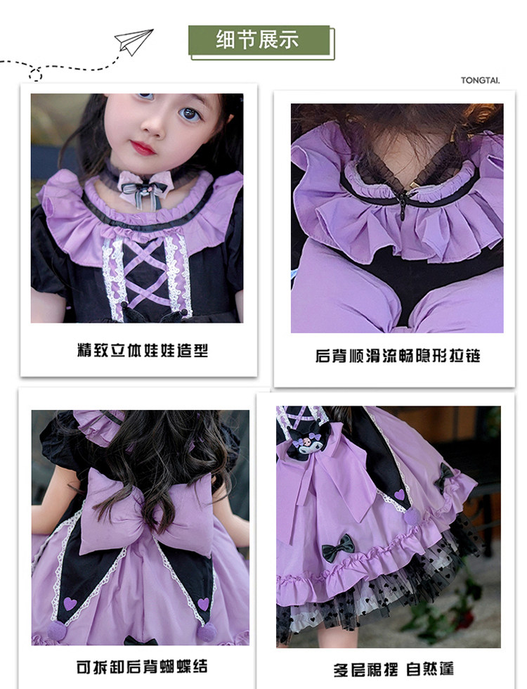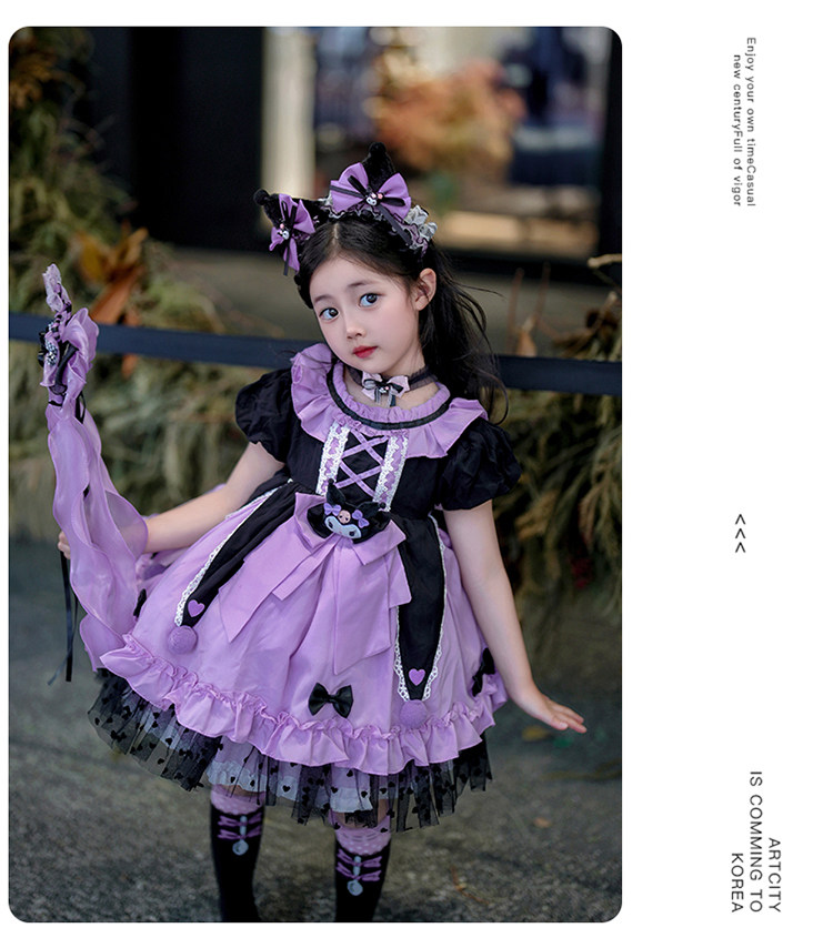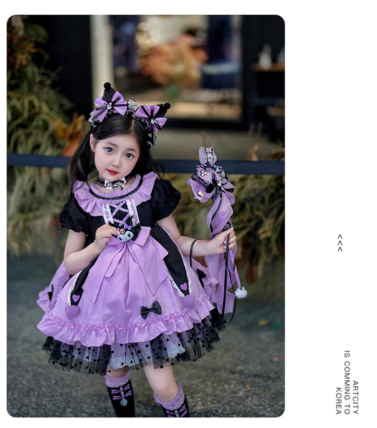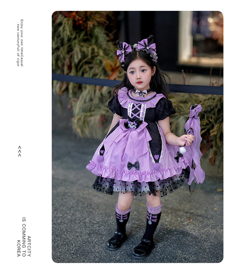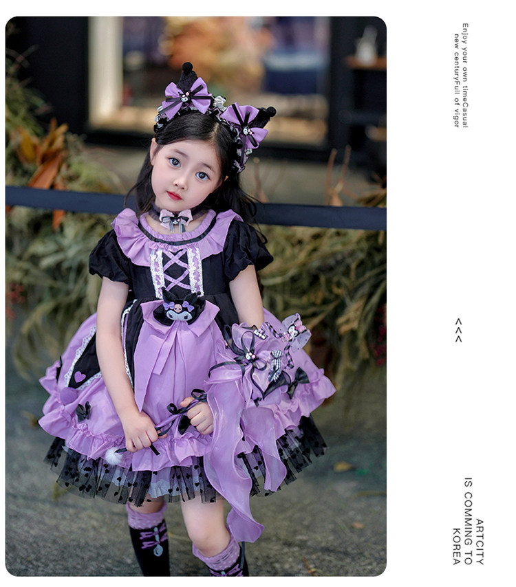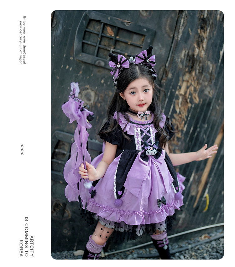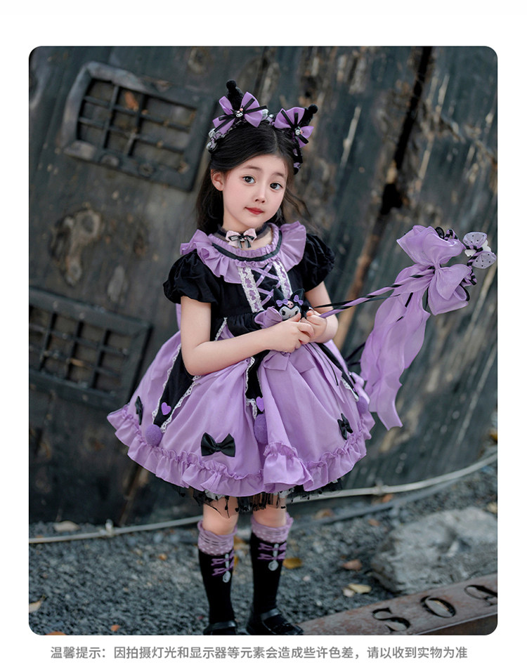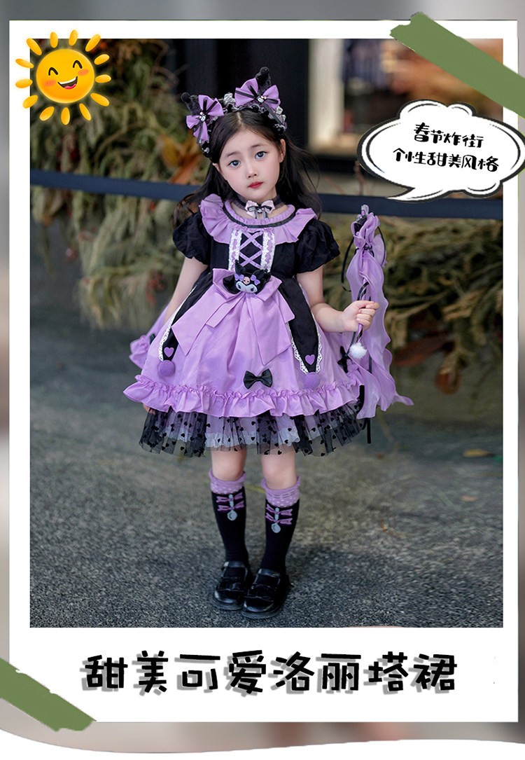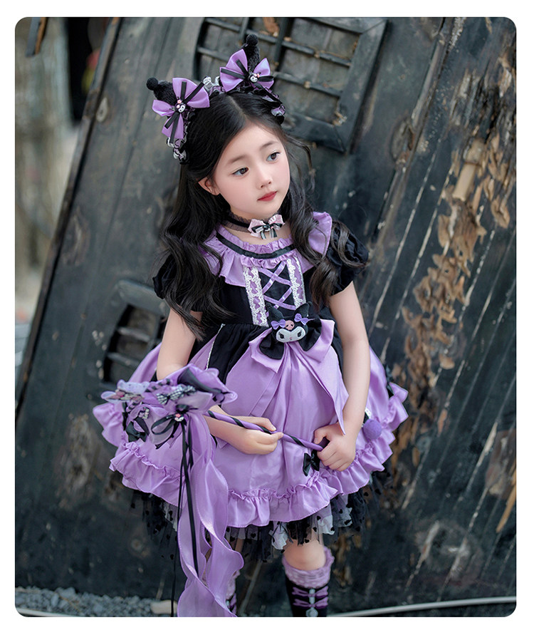 Kuromi Herbst und Winter langärmeliger samtverdickter Lolita-Tutu-Rock für Damen. Kinder-Cos-Performance-Kostüme für Damen-Frühlings- und Herbströcke
