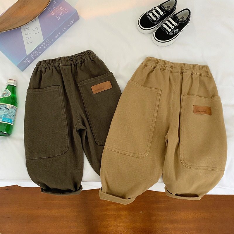 Boys' pants, baby autumn clothes, 2025 new children's overalls, pure cotton loose casual pants, handsome boys' clothes
