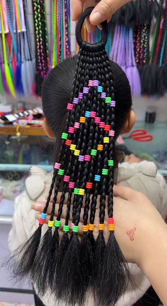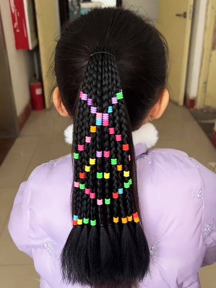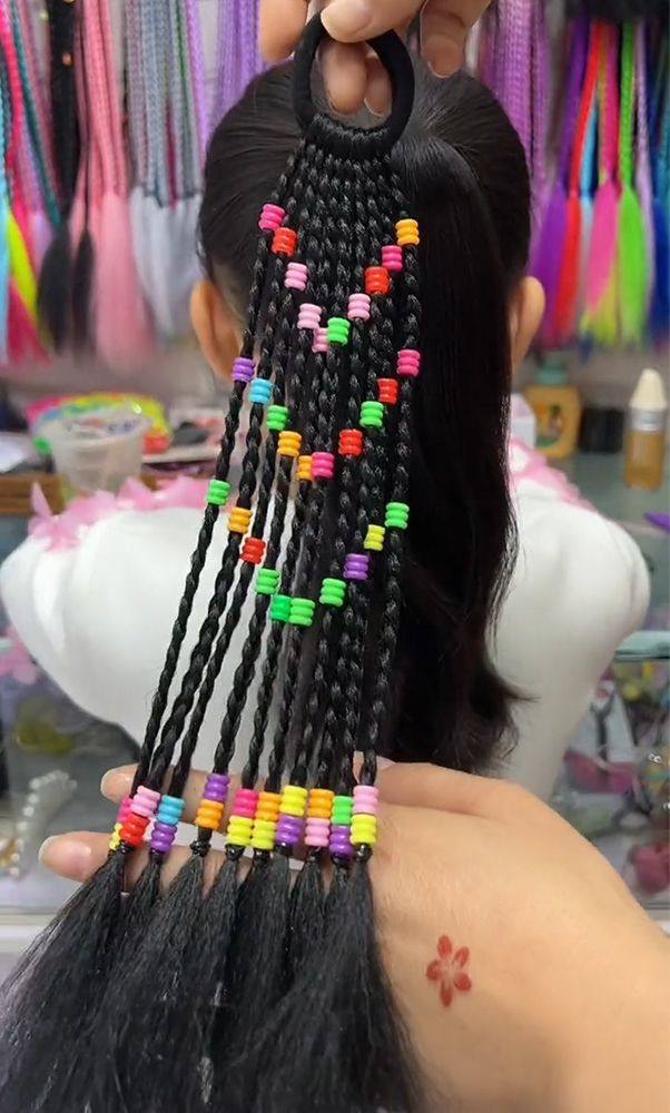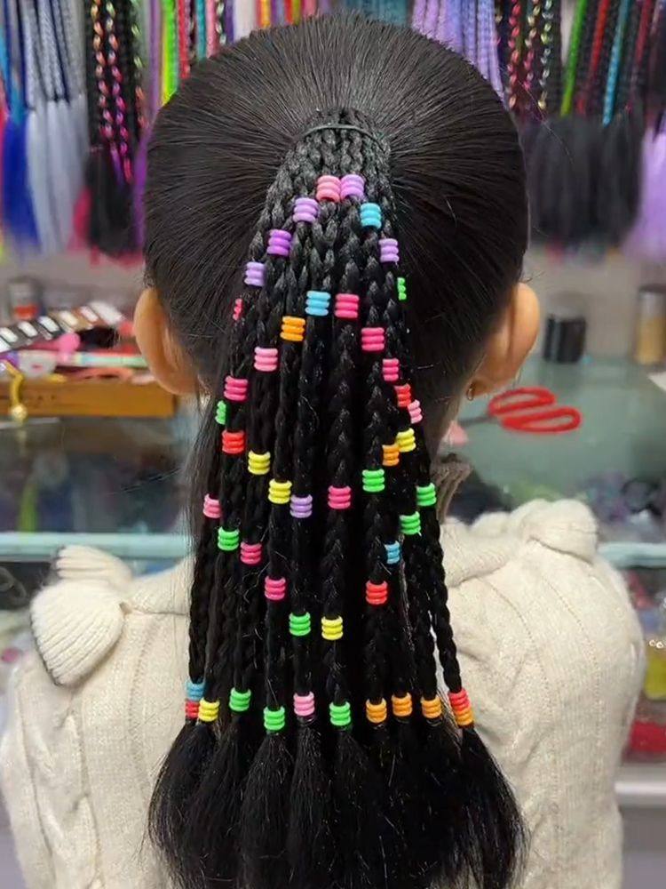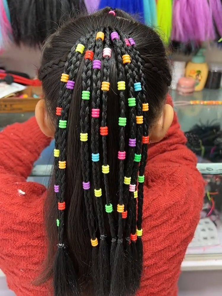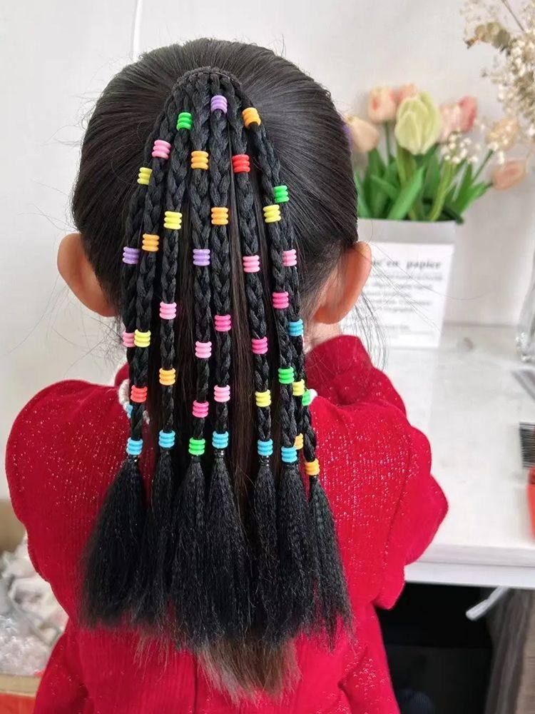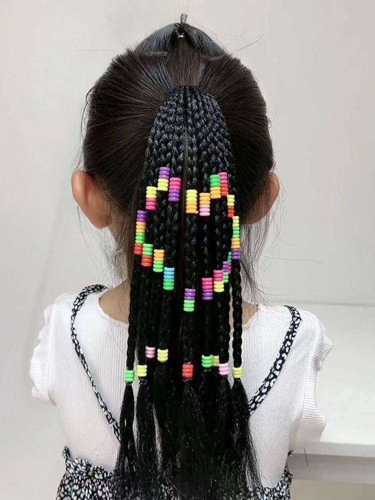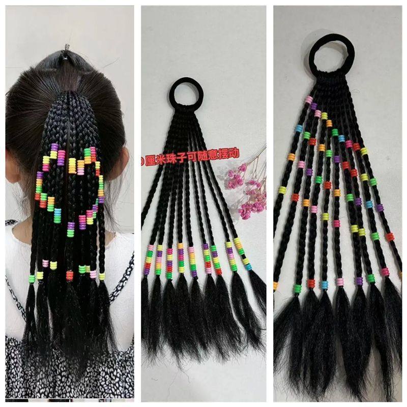 Girls' Handmade Beaded Braided Hair Ties, Sweet and Cool Colorful Bead Dreadlocks, Small Braids, Hair Rings, Boxing Braids, High Ponytail Hair Accessories