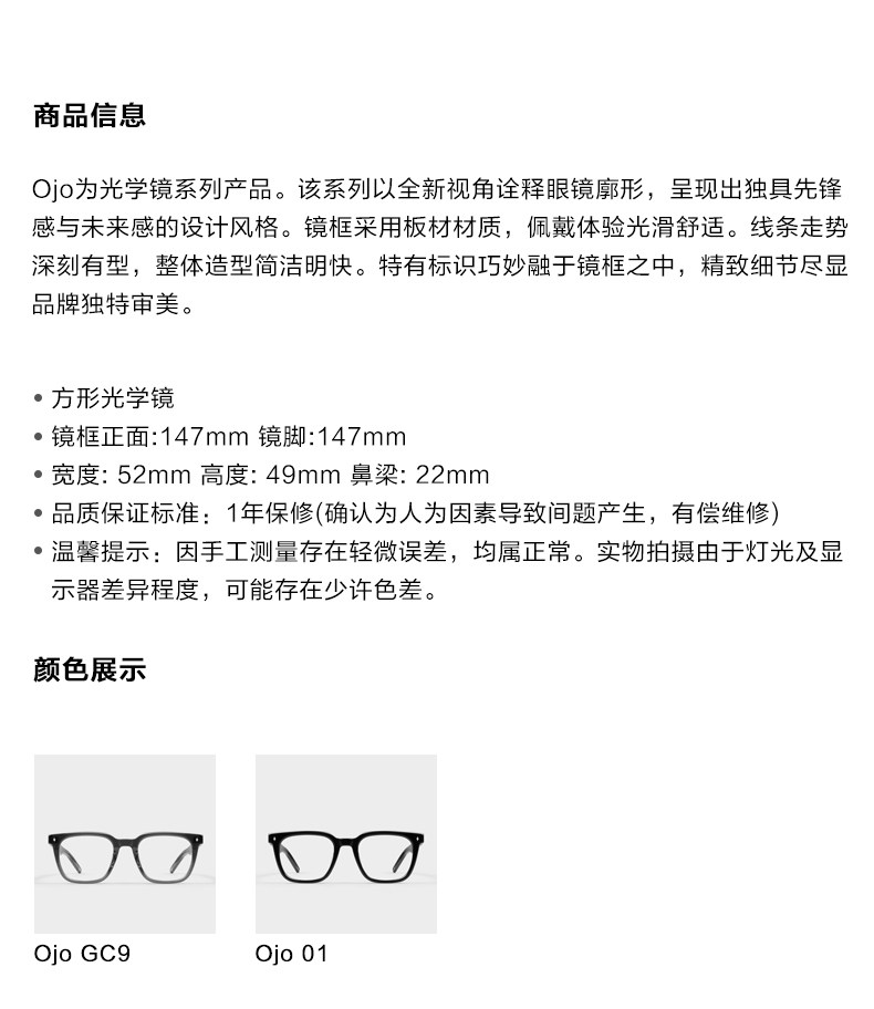 Gm2024 New Style Glasses for Myopia with Prescription Lenses, Women's Anti-Blue Light Fashion Square Black Frame, Slimming Effect for Large Faces, Men's Ojo