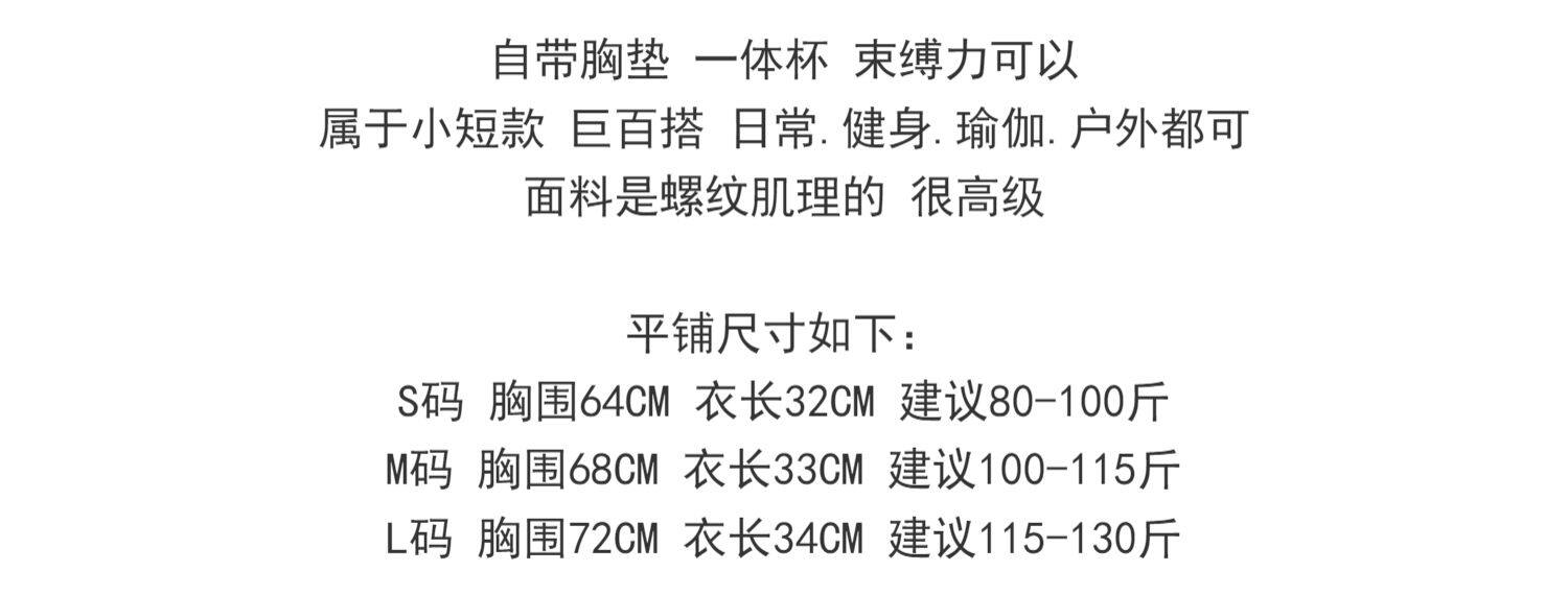 Bra size S code (recommended 80-100 Jin Jin is equal to 0.5 kg),M code (recommended 100-115 Jin Jin equals 0.5 kg),L code (recommended 115-130 Jin Jin equals 0.5 kg)