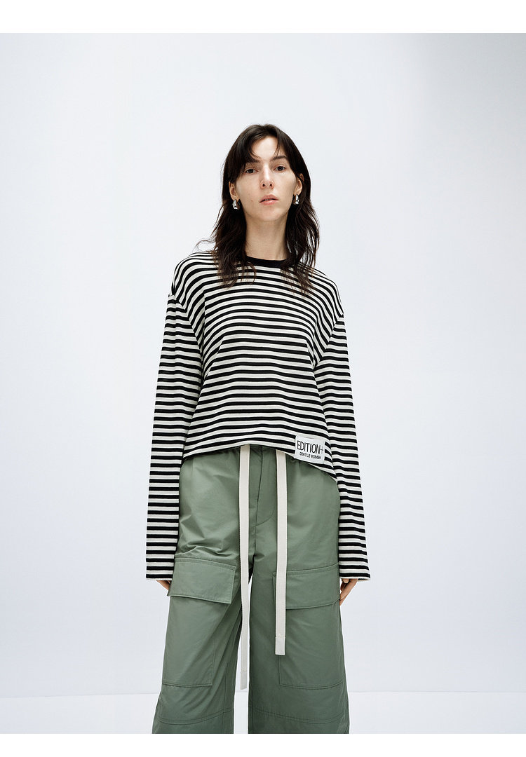 [E+ Chunyu Capsule Series]Edition Spring New Pure Wool Striped T-Shirt Ebd1Tee010