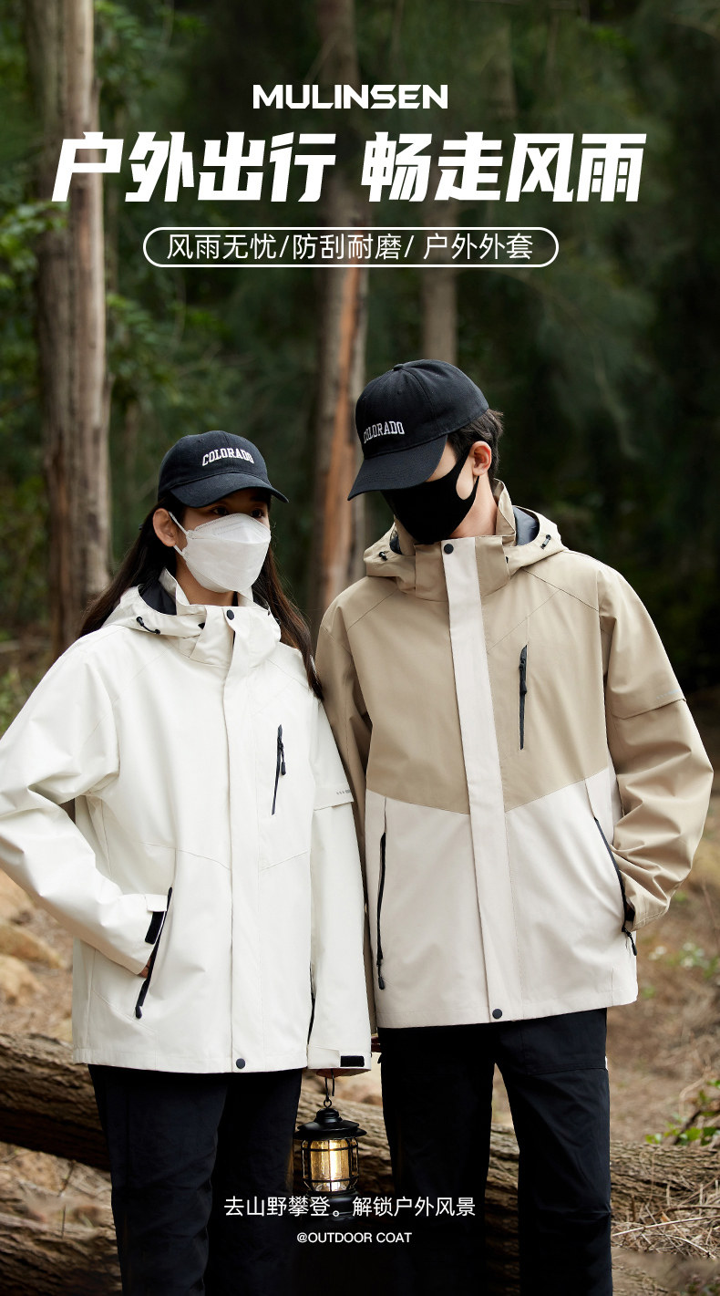 Mulinsen Outdoor Jacket Women's Three-in-One Jacket 2025 New Autumn and Winter Windproof and Waterproof Couple Mountaineering Suit for Men