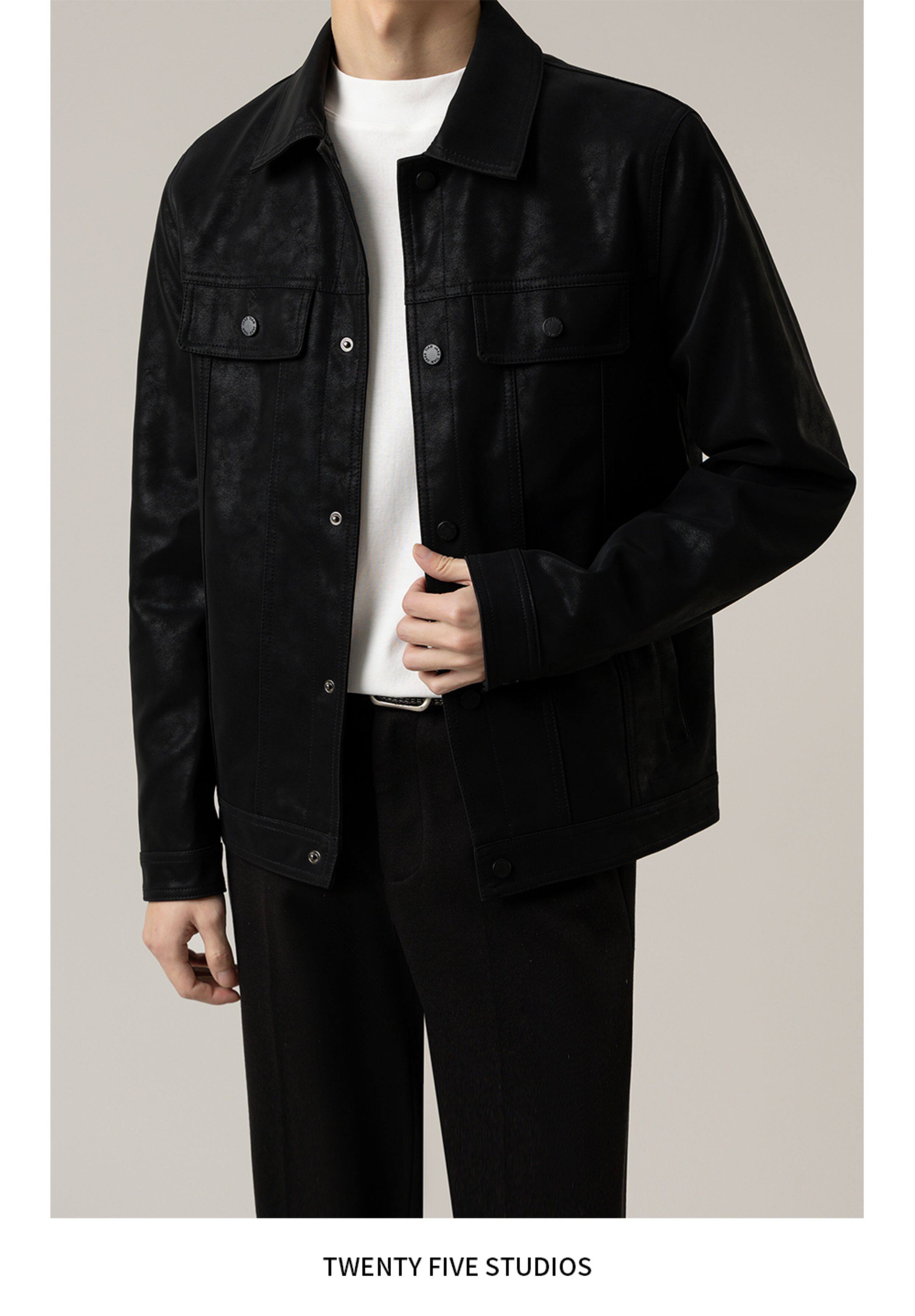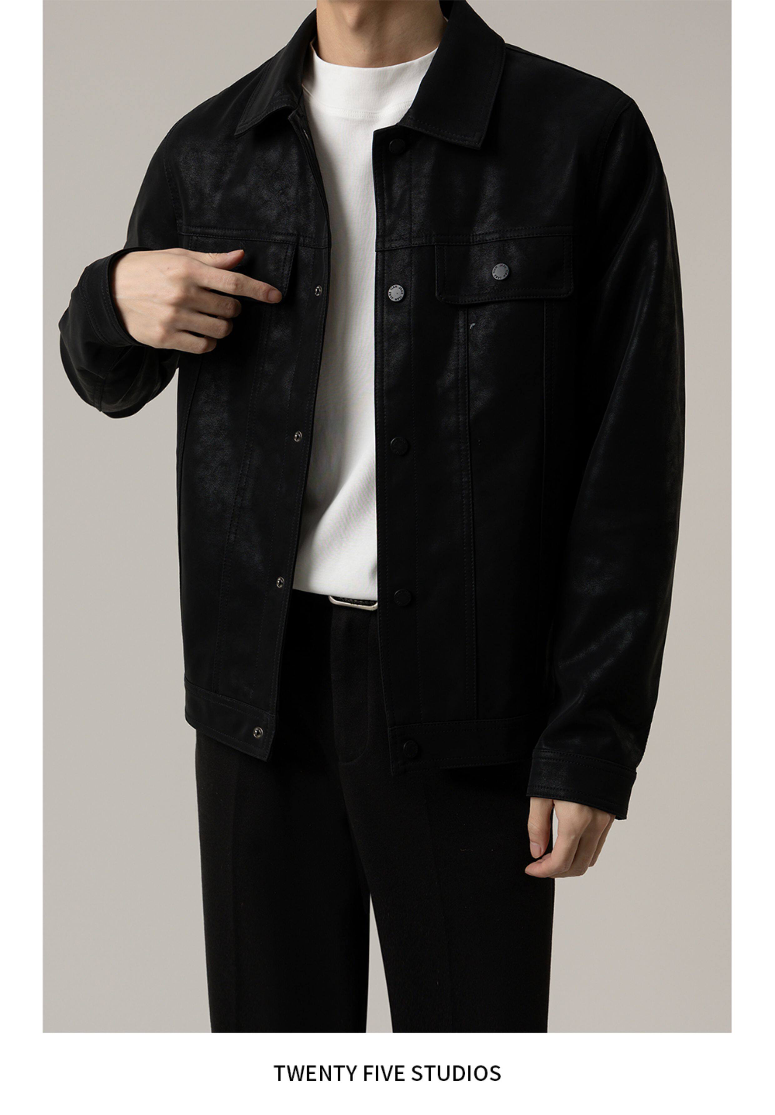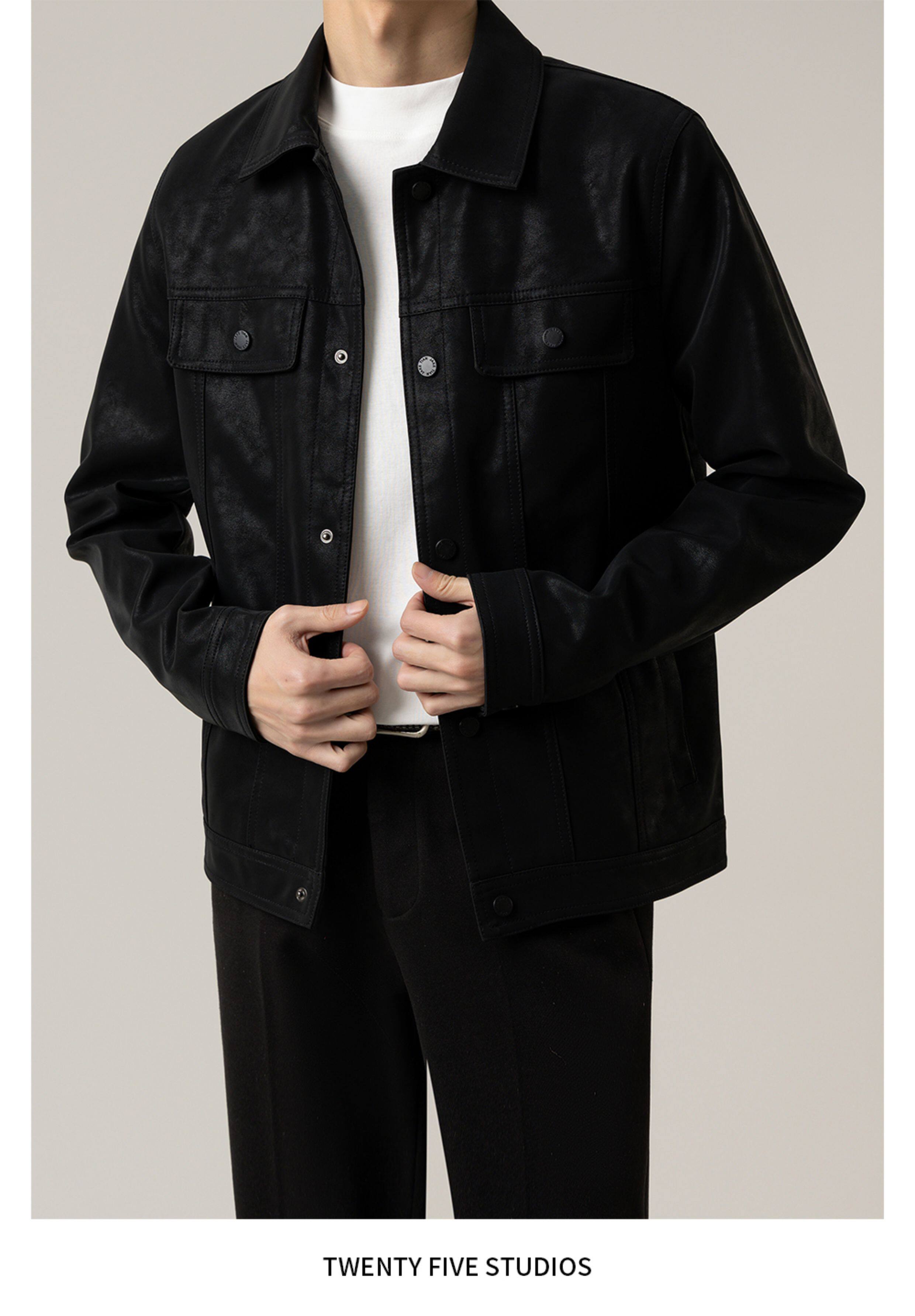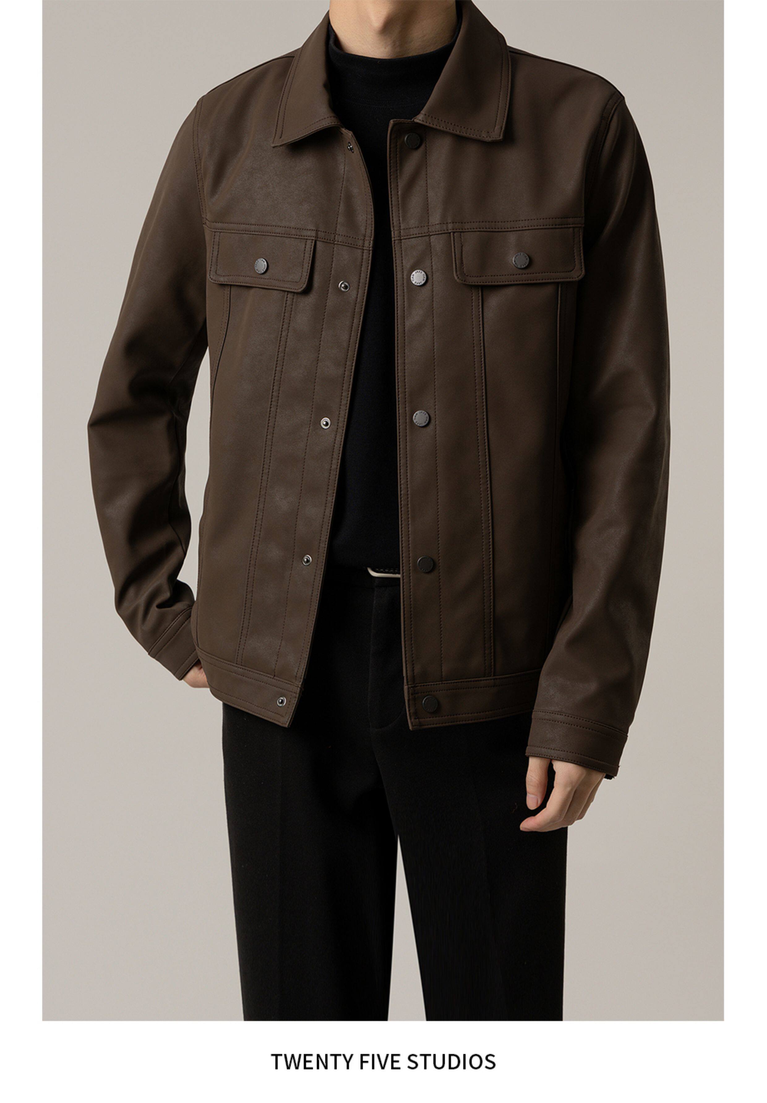 TWENTY FIVE spring and autumn light mature style lapel pu leather jacket men's Korean style trendy casual leather jacket