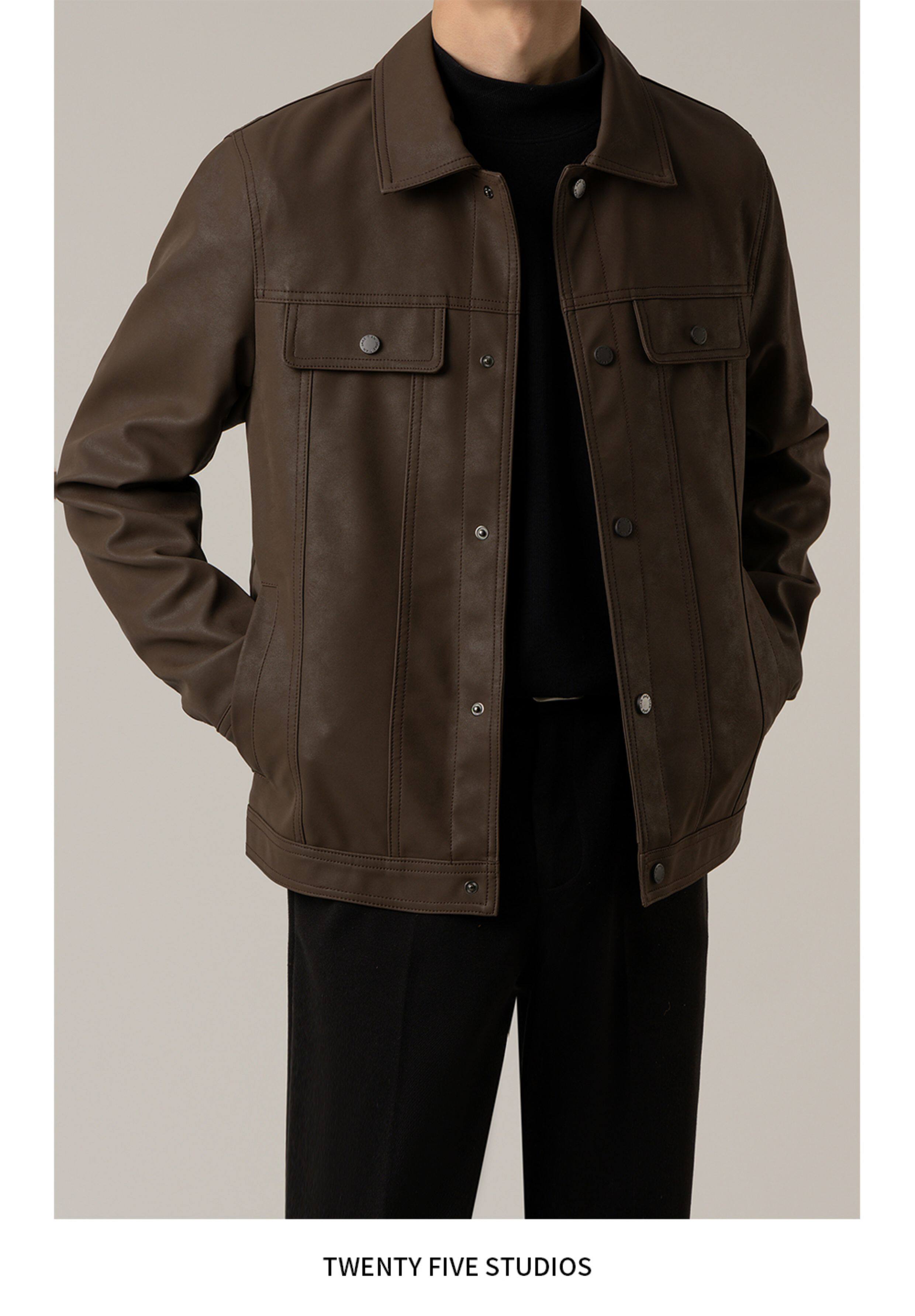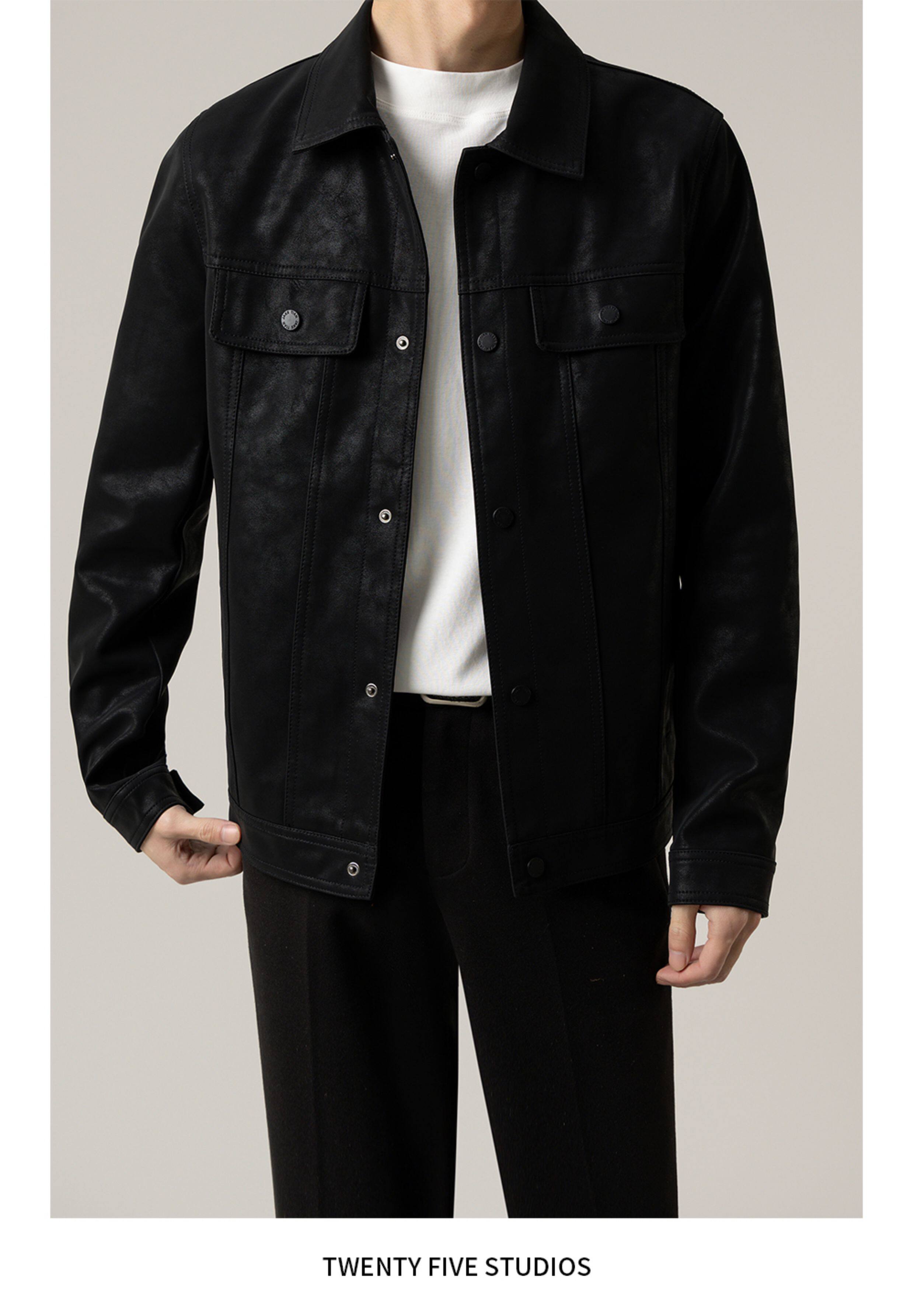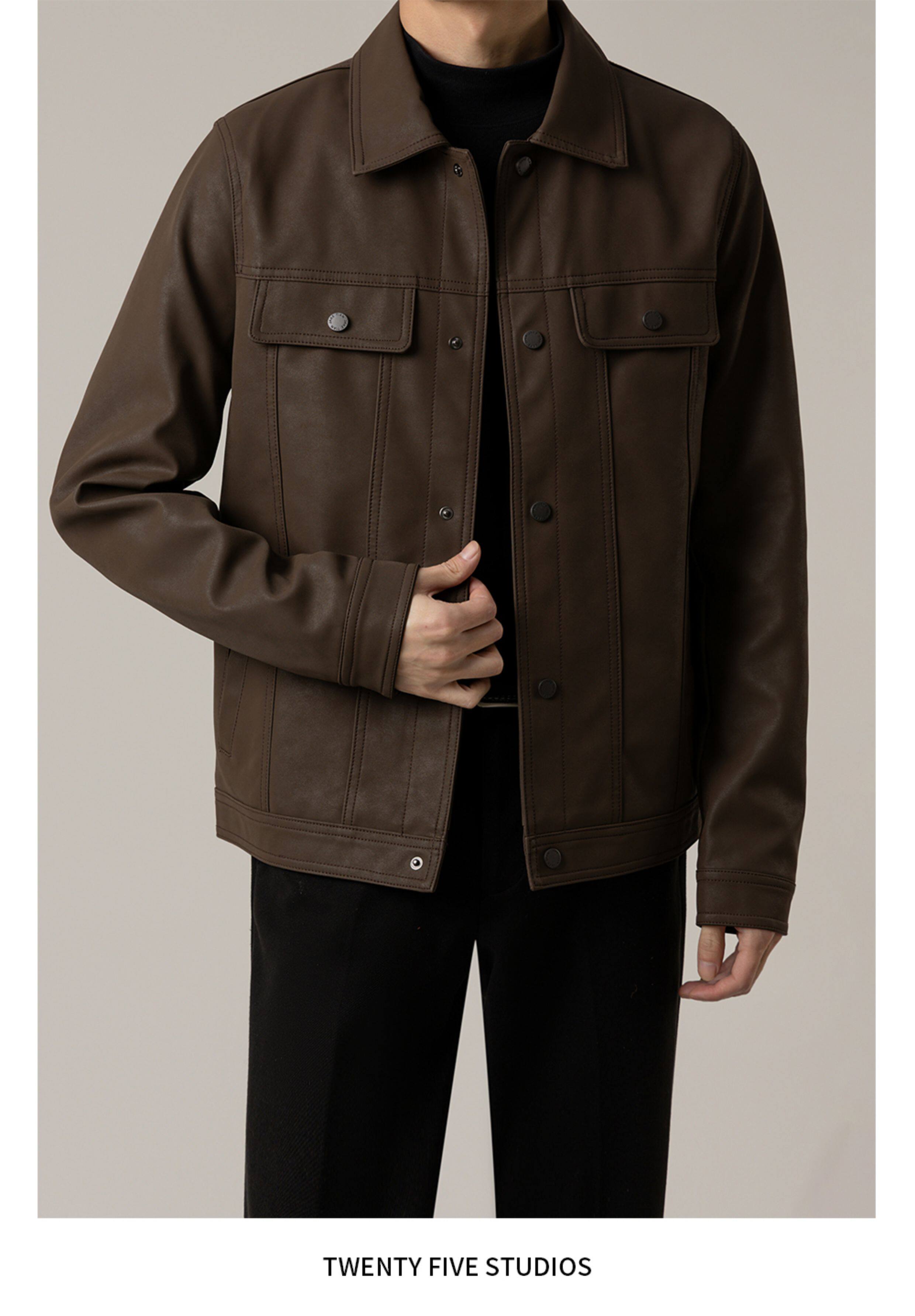 TWENTY FIVE spring and autumn light mature style lapel pu leather jacket men's Korean style trendy casual leather jacket
