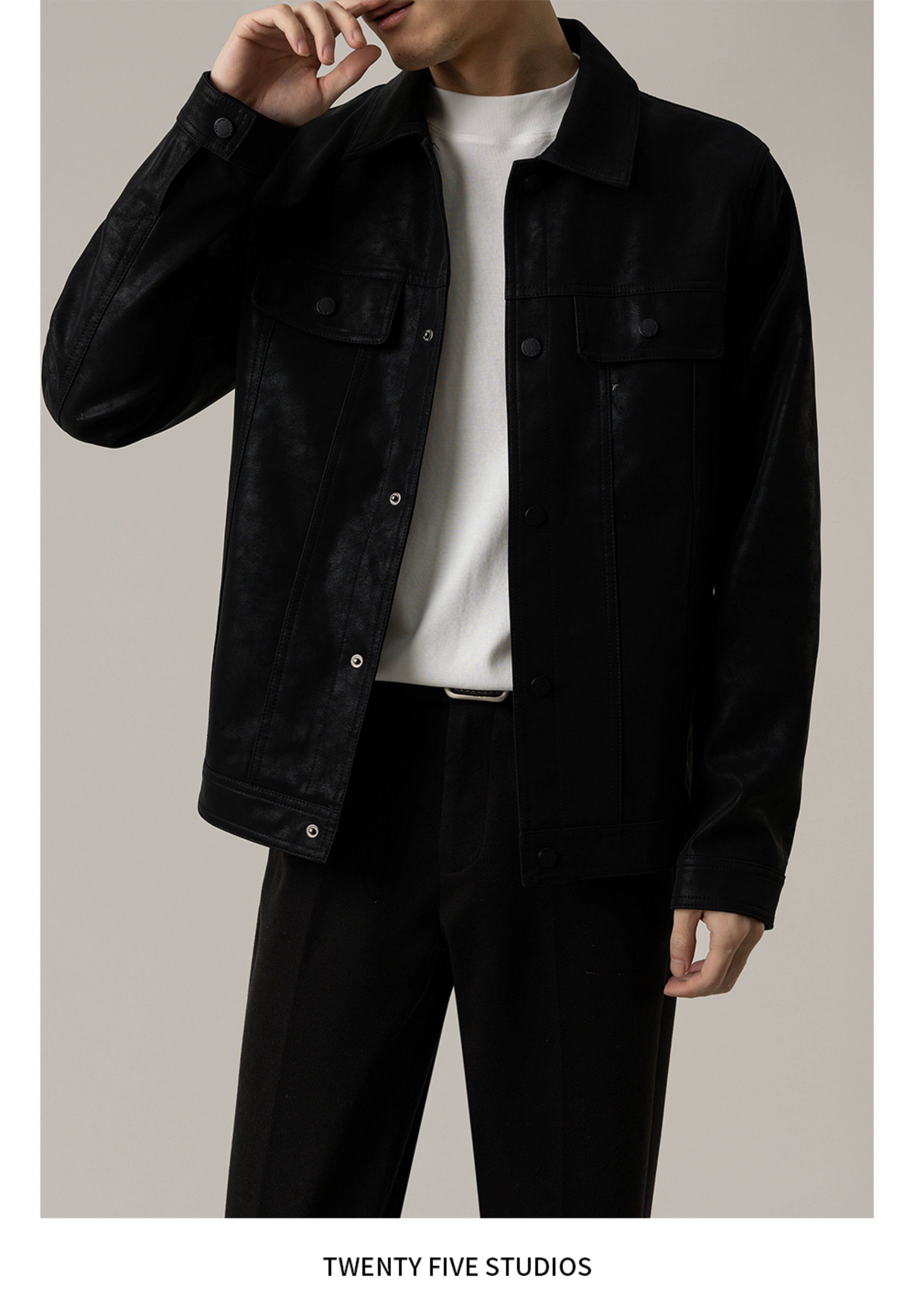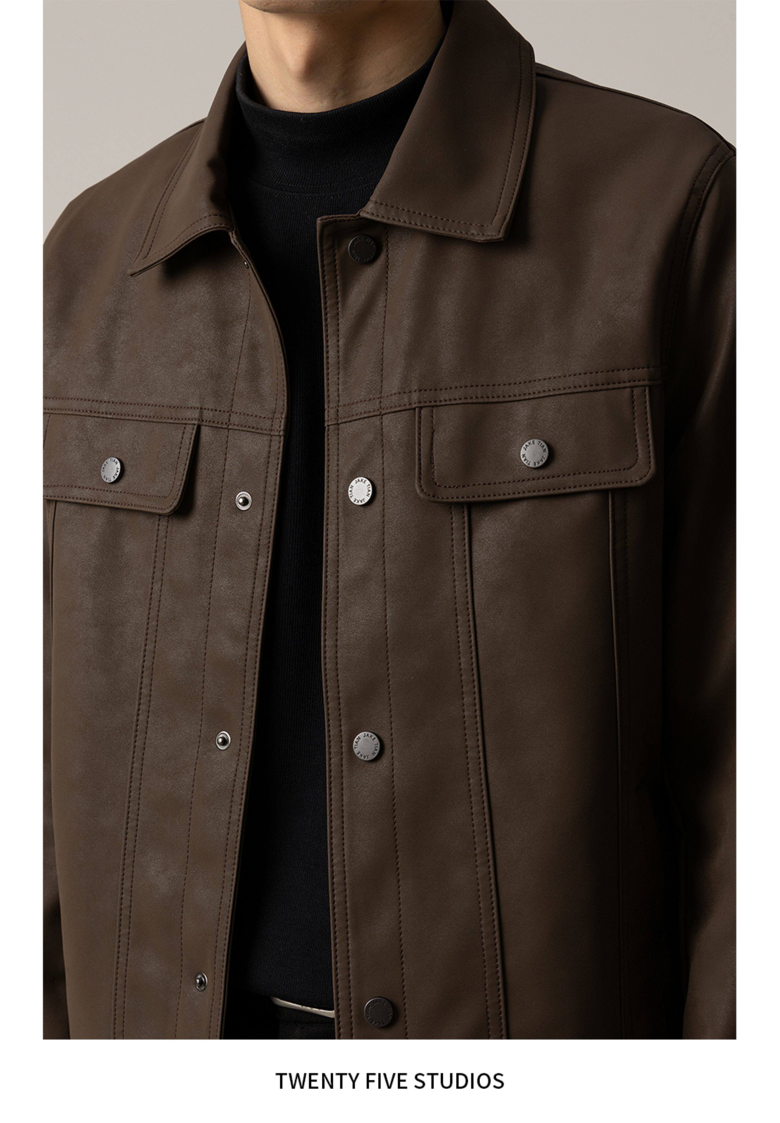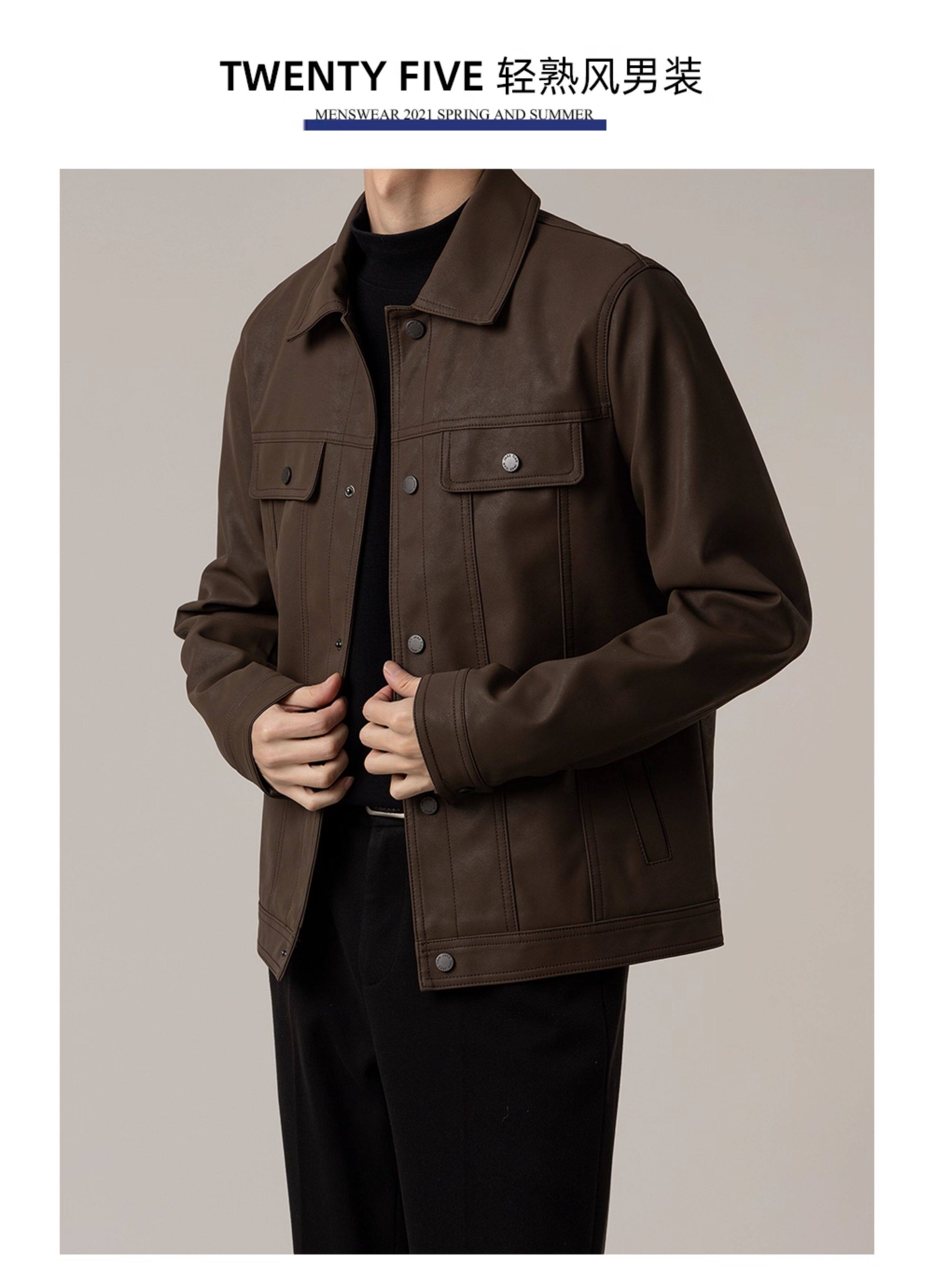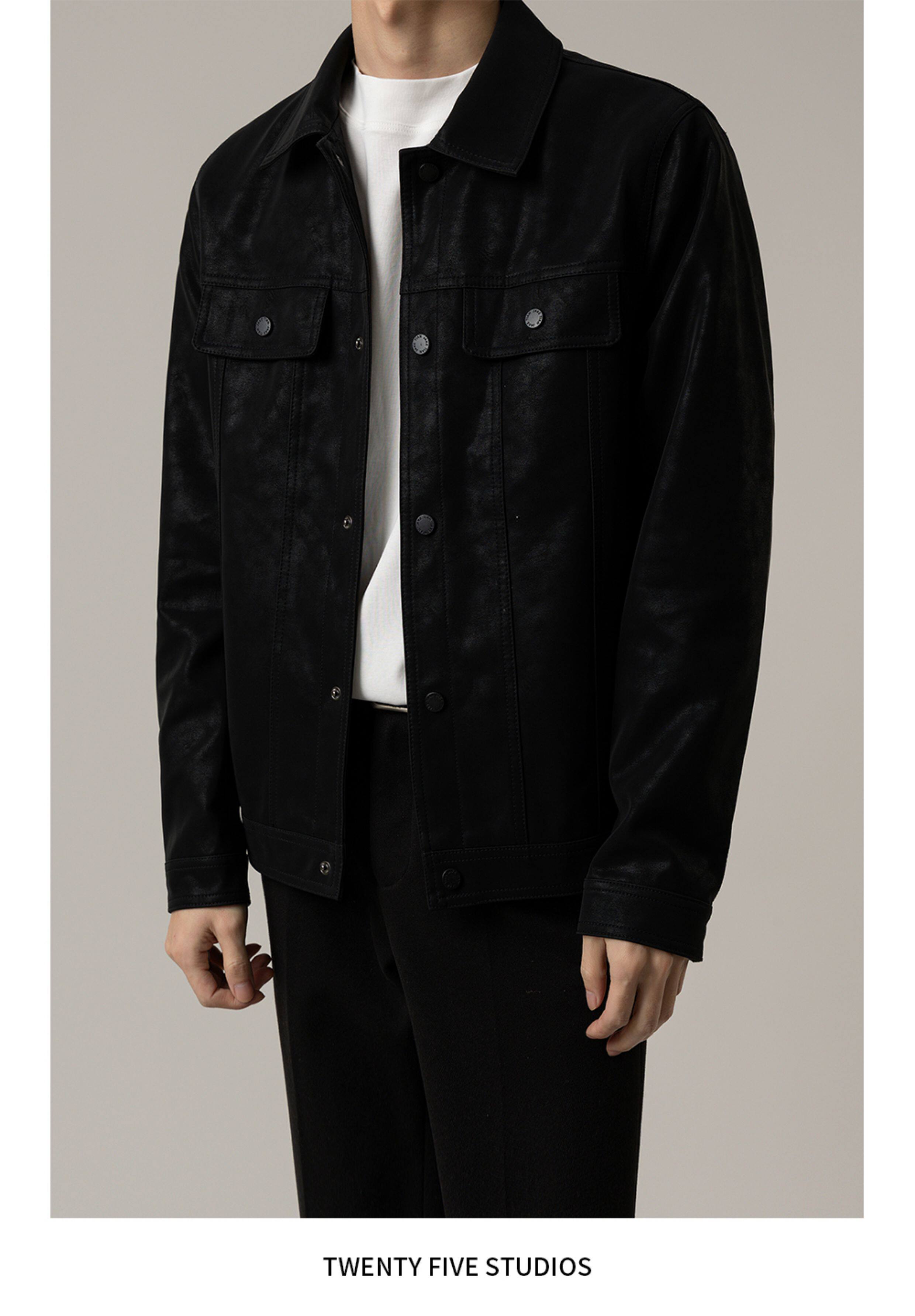TWENTY FIVE spring and autumn light mature style lapel pu leather jacket men's Korean style trendy casual leather jacket
