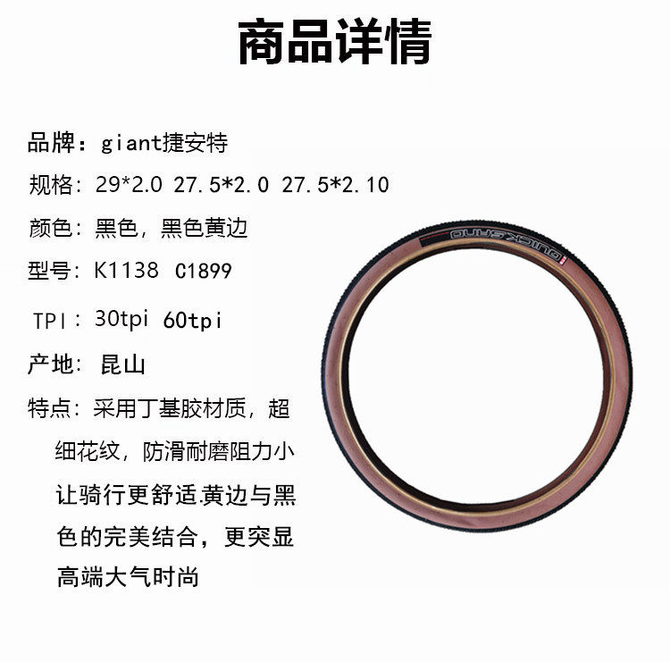 Giant Giant bicycle tire 29X2.0 inner tube XTC 27.5*1.95 mountain bike tire 2.0 belt