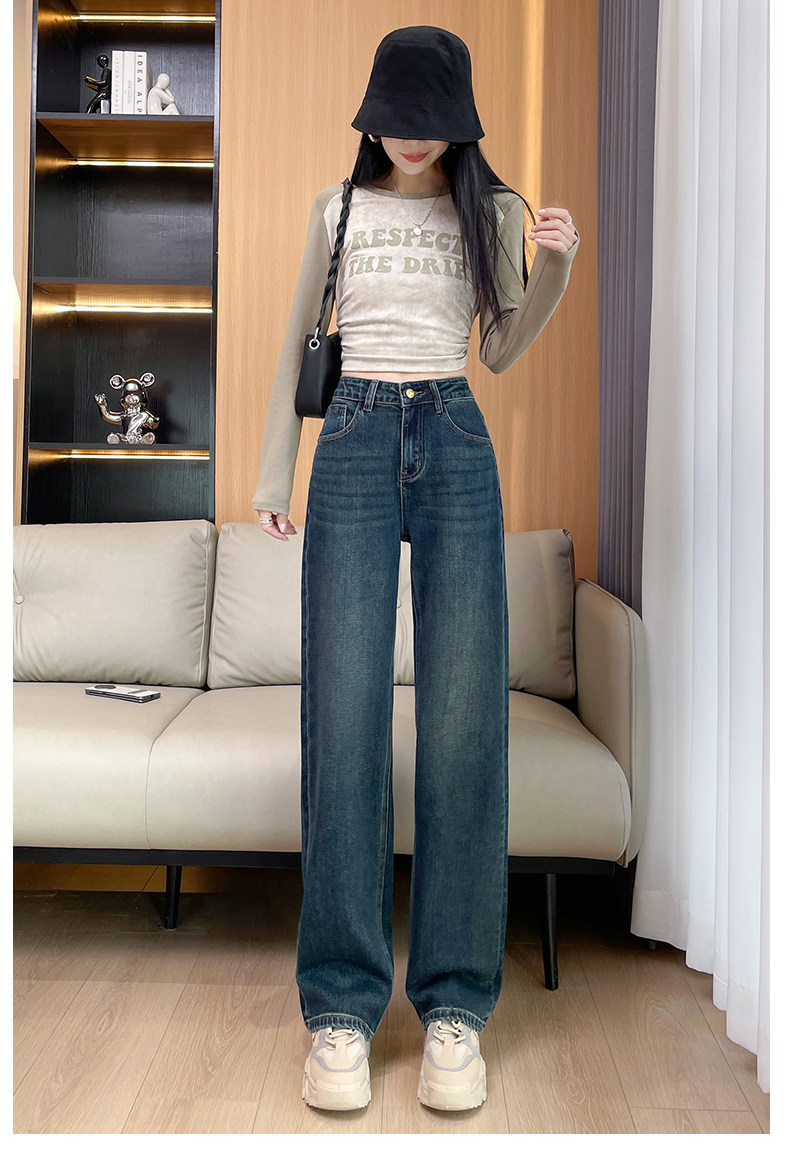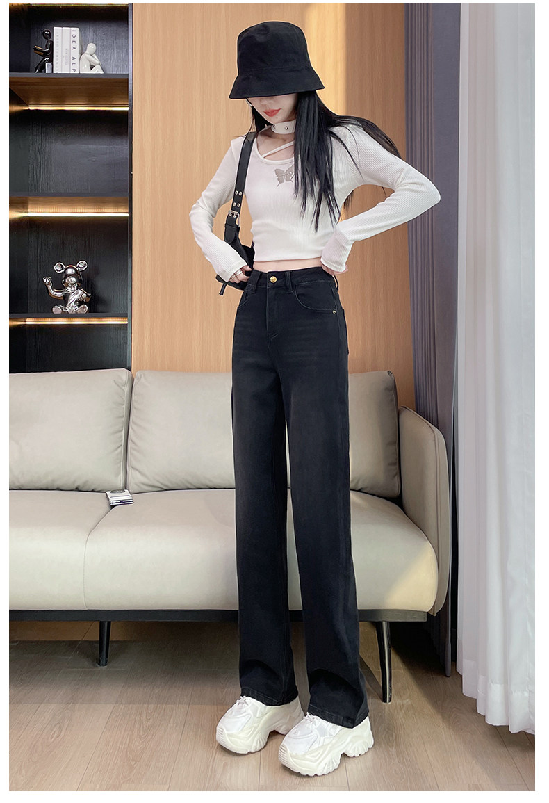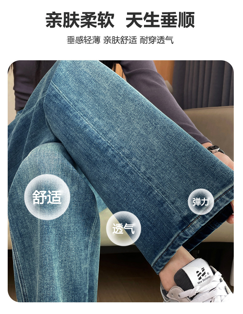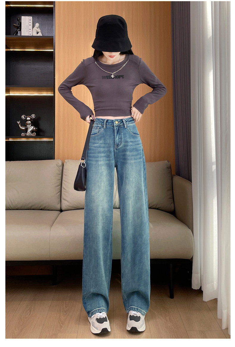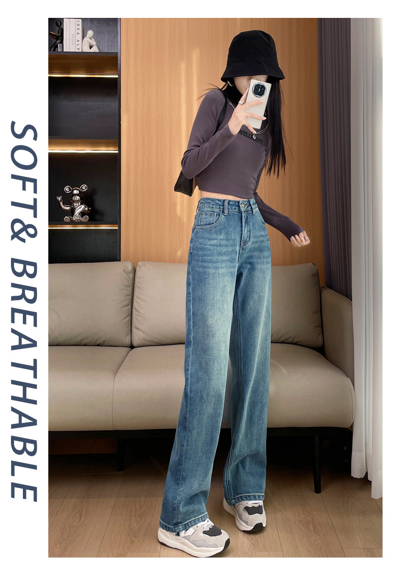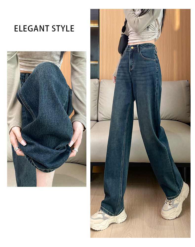 Narrow Wide-Leg Jeans for Women, High-Waisted, 2026 Spring and Autumn, American High Street Style, Loose and Drapey, Floor-Length Straight Pants