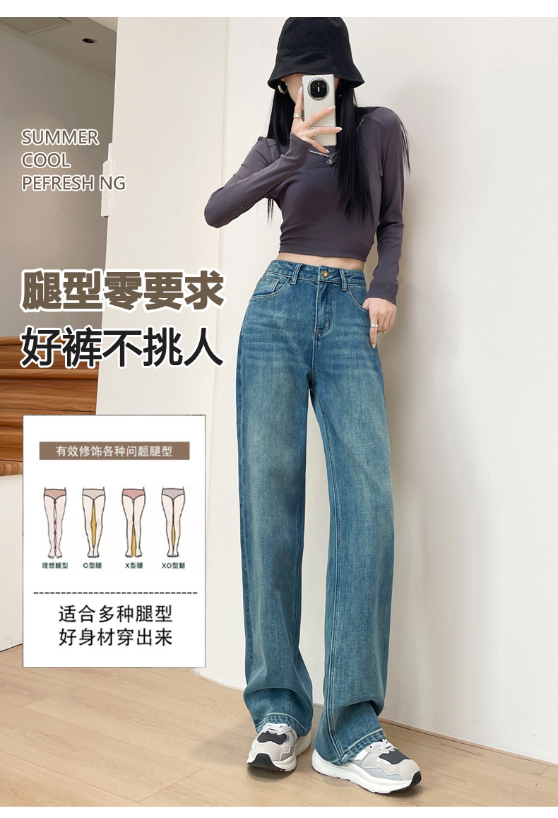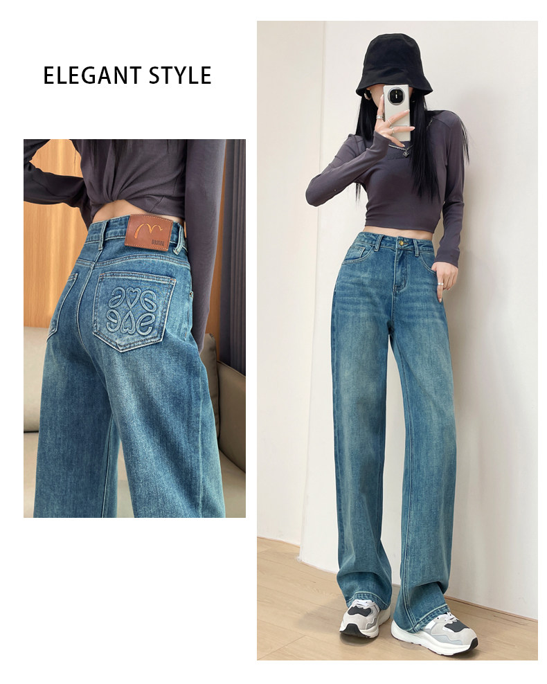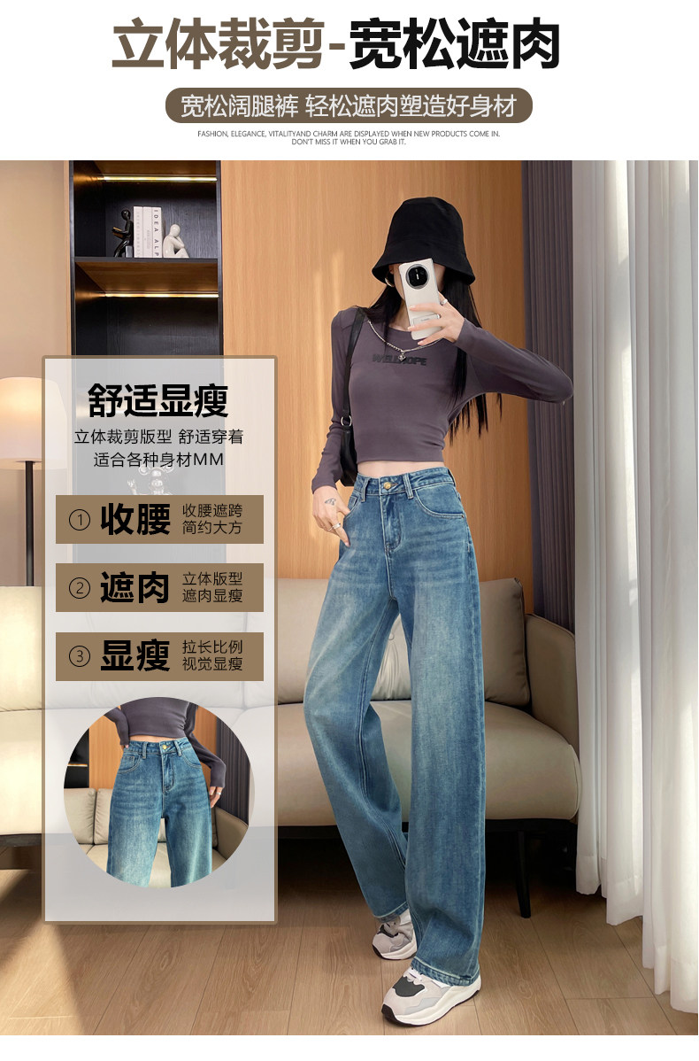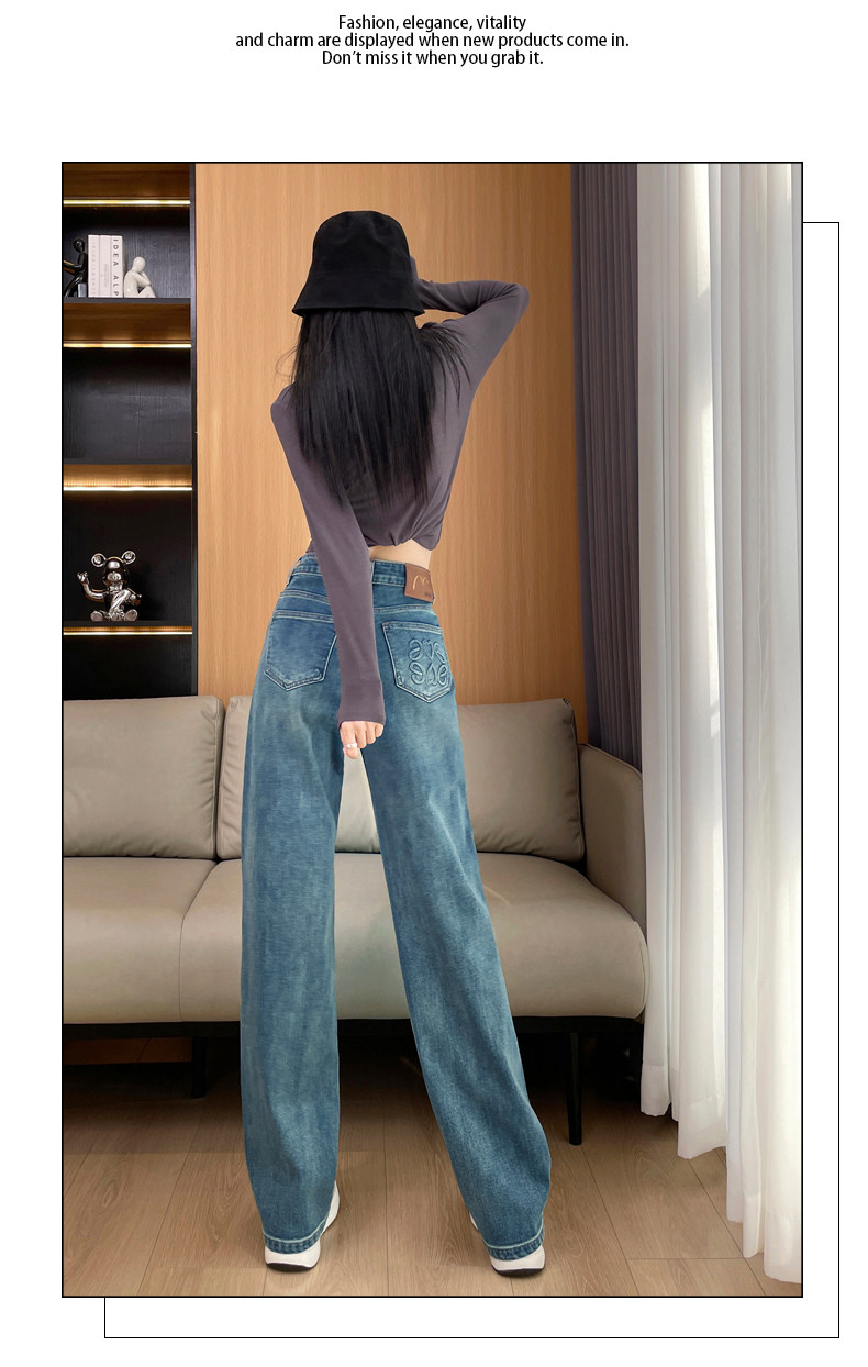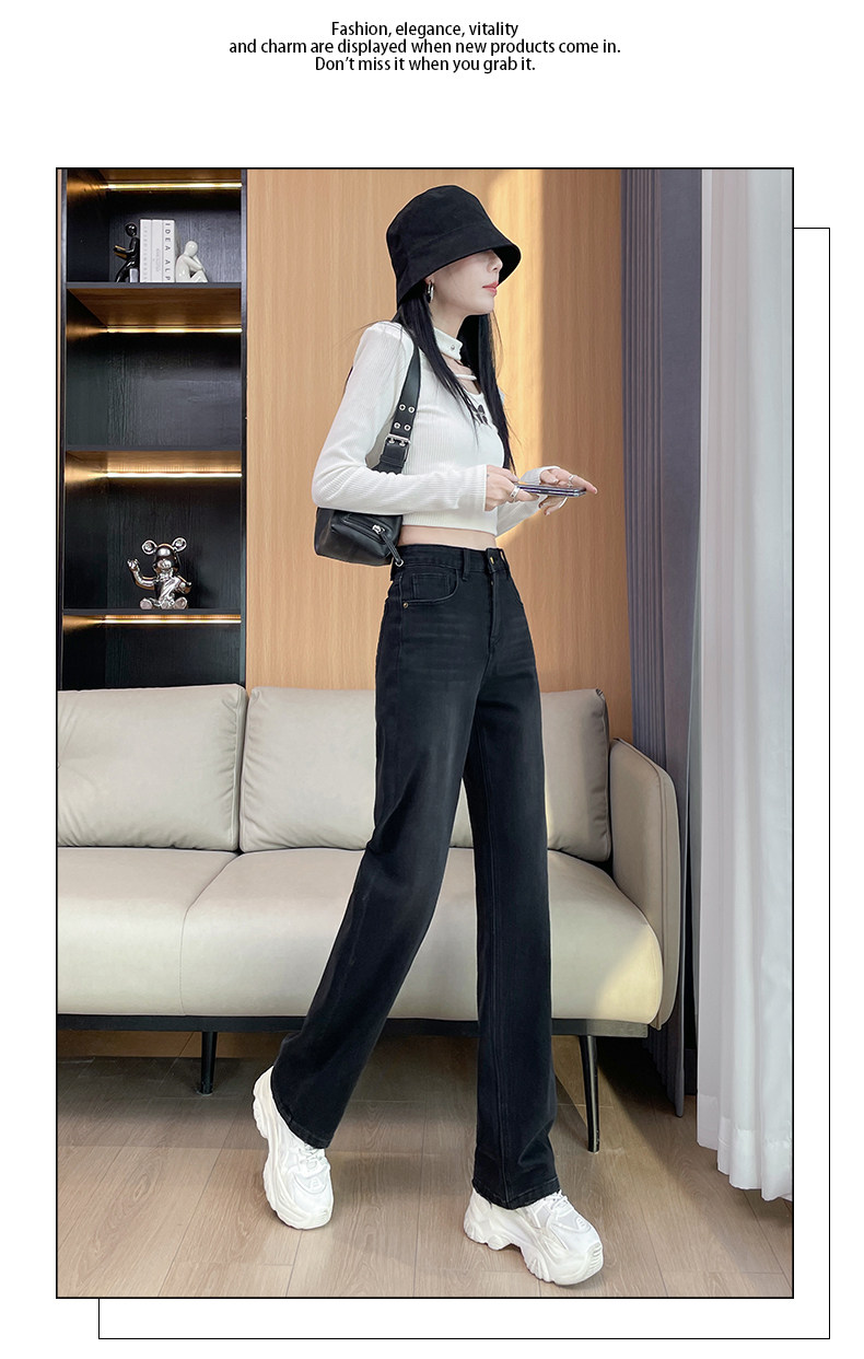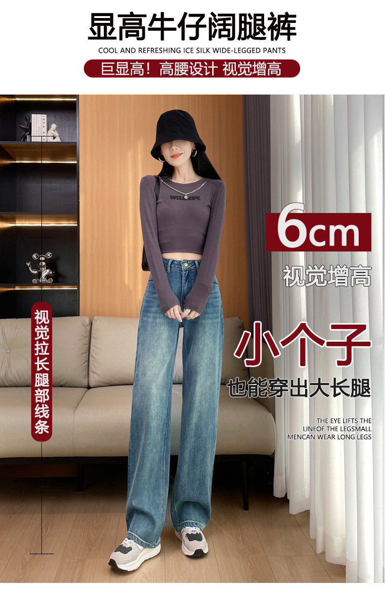 Narrow Wide-Leg Jeans for Women, High-Waisted, 2026 Spring and Autumn, American High Street Style, Loose and Drapey, Floor-Length Straight Pants