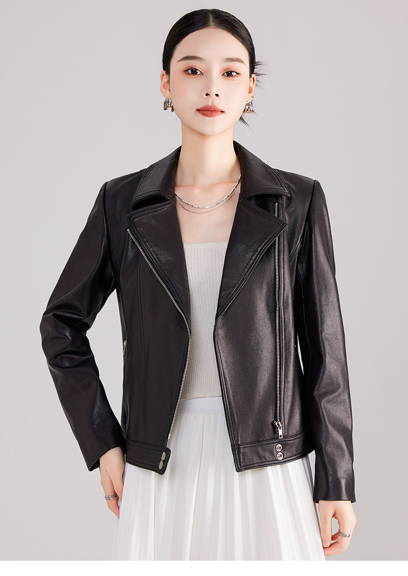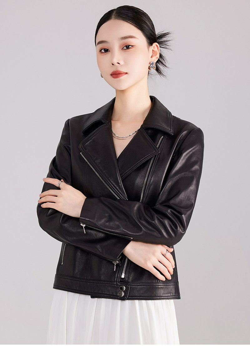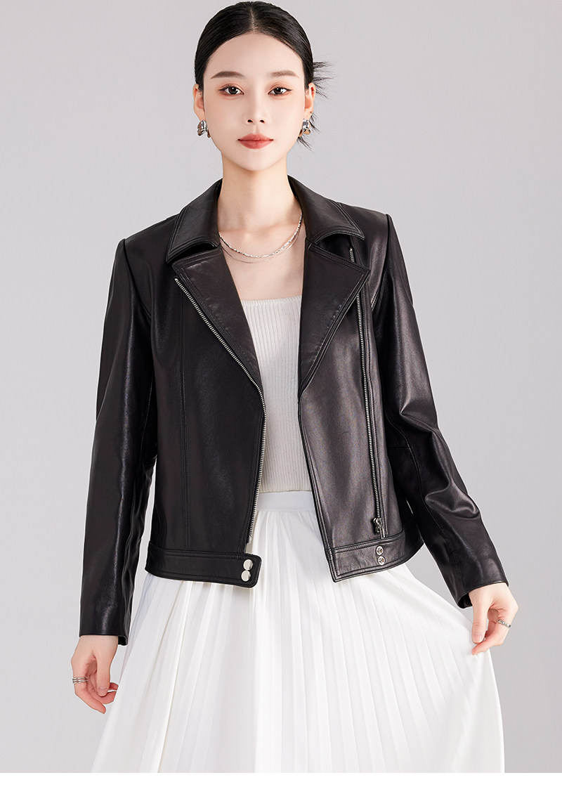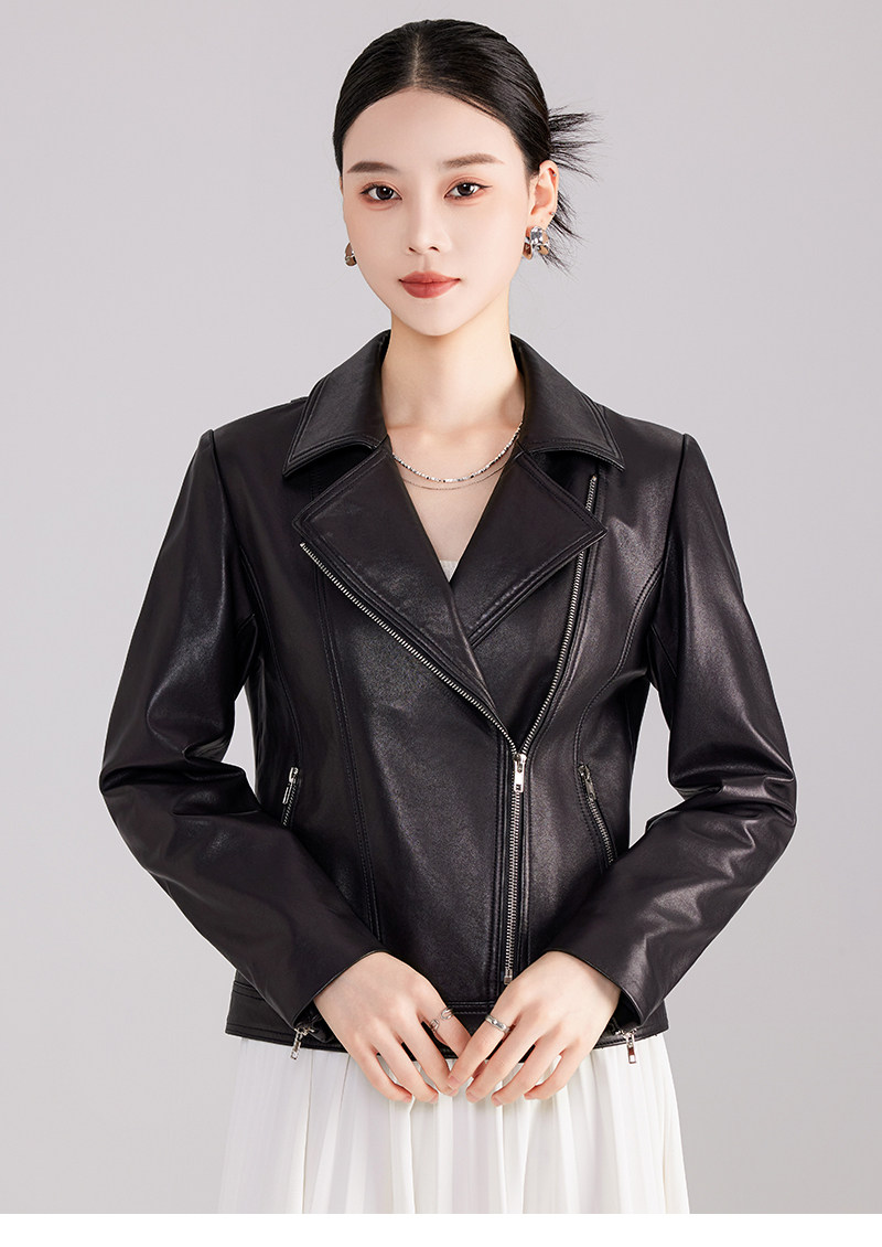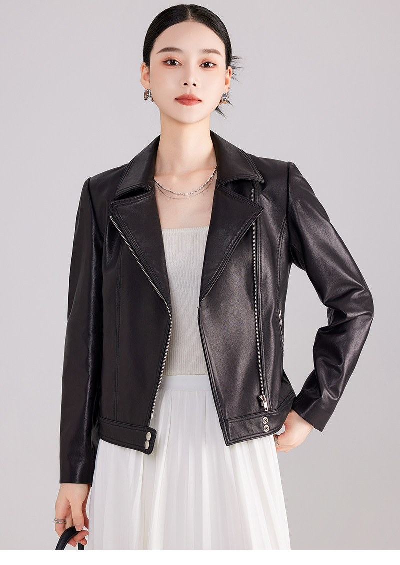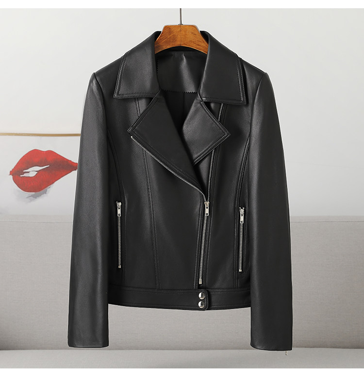 Spring and Autumn New Haining Genuine Leather Jacket Women's Short First Layer Sheepskin Slim Fit Jacket Fashion Small Leather Jacket