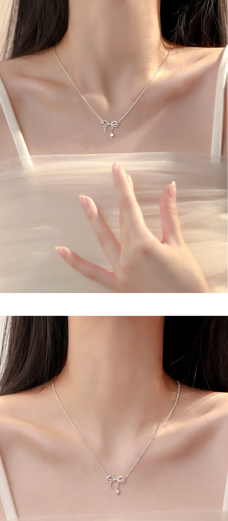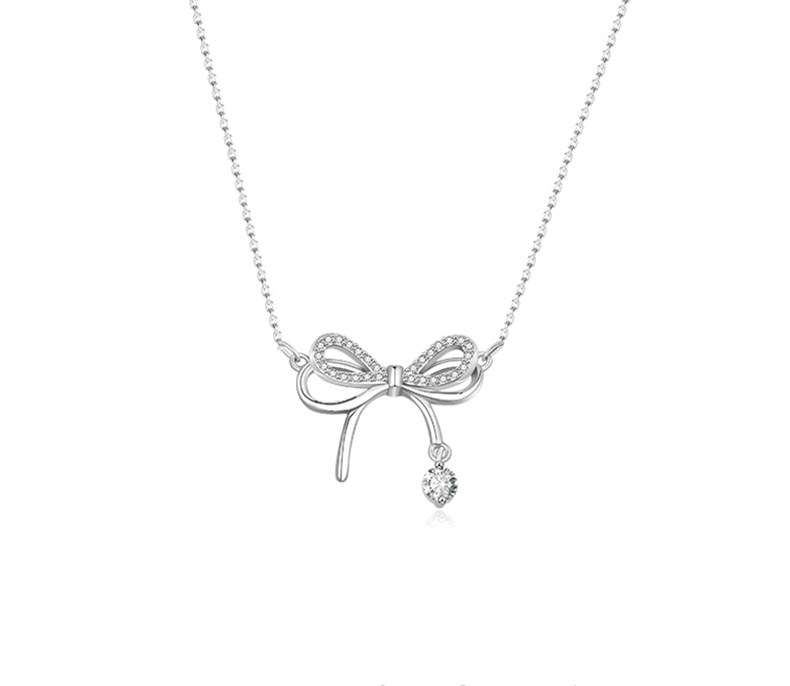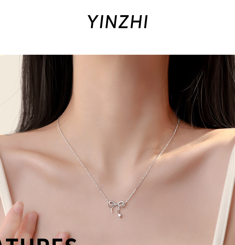 S999 Pure Silver Necklace Women's Light Luxury Niche Bow Pendant High-end Accessories Autumn and Winter Sweater Chain Necklace