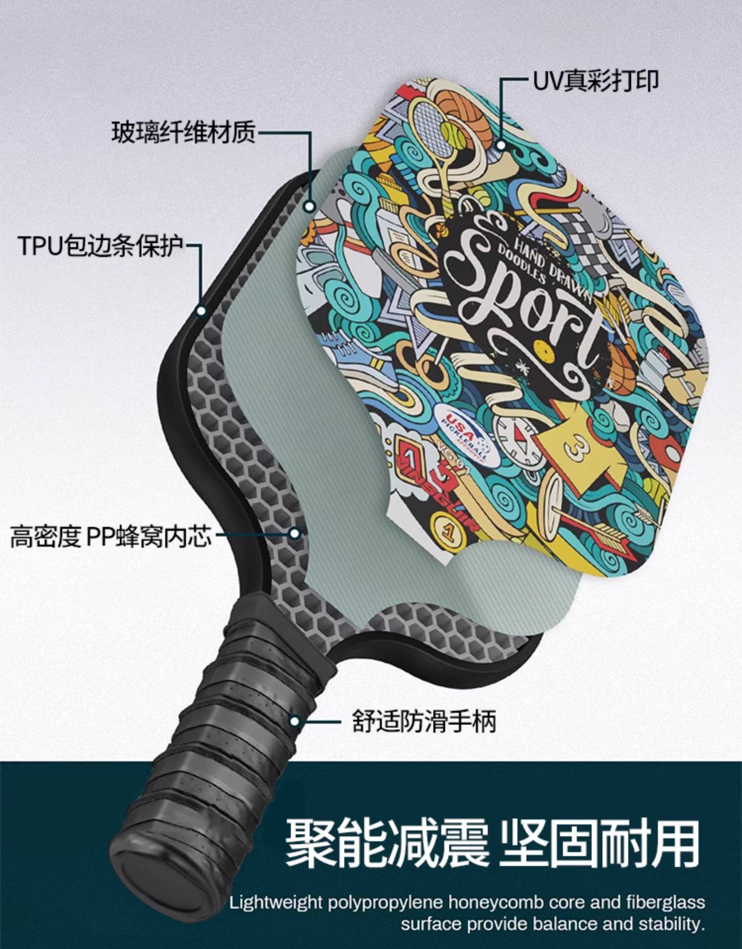 Vinguir Pickleball Paddle Carbon Fiber School Curriculum Teaching Training Competition Professional