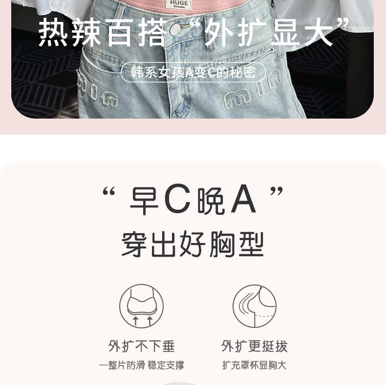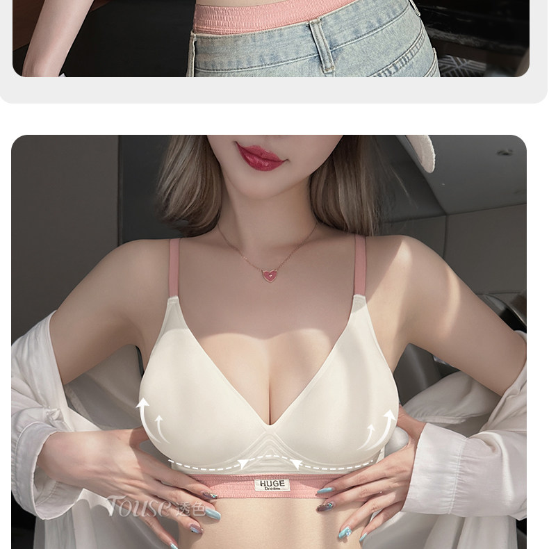 Expanded comic bust underwear for women with small breasts, push-up, soft support without rims, thickened bra for enlarging waist and slimming