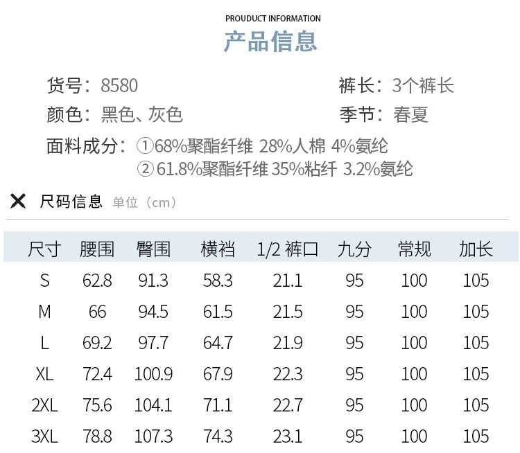 Sort by color Spring and Autumn - Gray - Pants length 95CM, suitable for height 155-160,Spring and Autumn - Gray - Pants length 100CM, suitable for height 160-165,Spring and Autumn - Gray - Pants length 105CM, suitable for height 165-170,Spring and Autumn - black - pants length 95CM, suitable for height 155-160,Spring and Autumn - black - pants length 100CM, suitable for height 160-165,Spring and Autumn - black - pants length 105CM, suitable for height 165-170