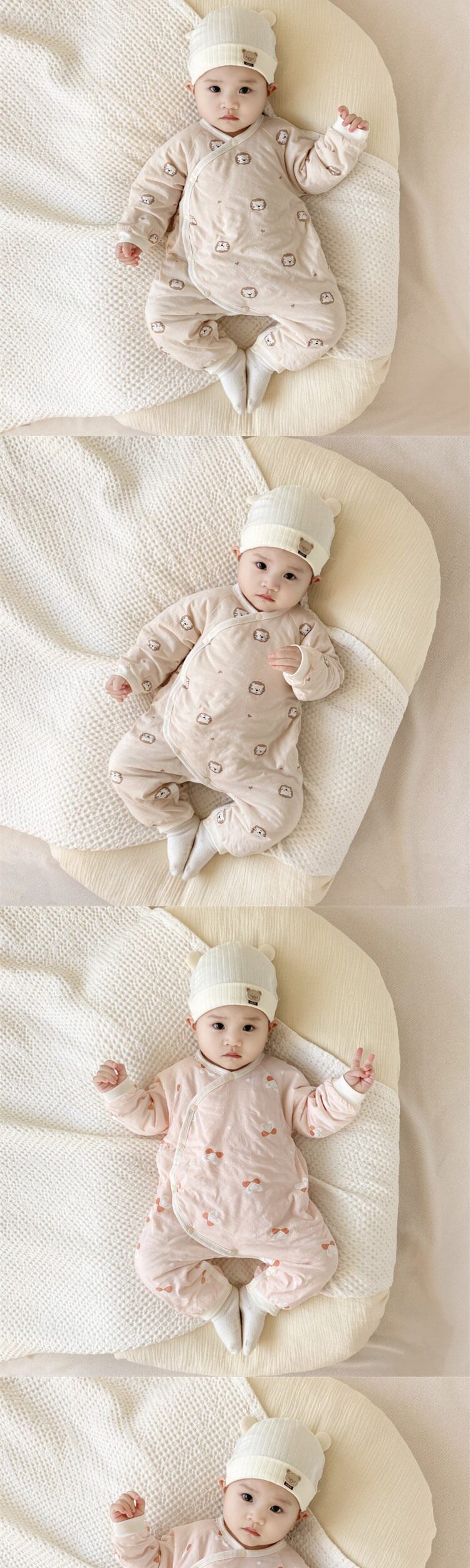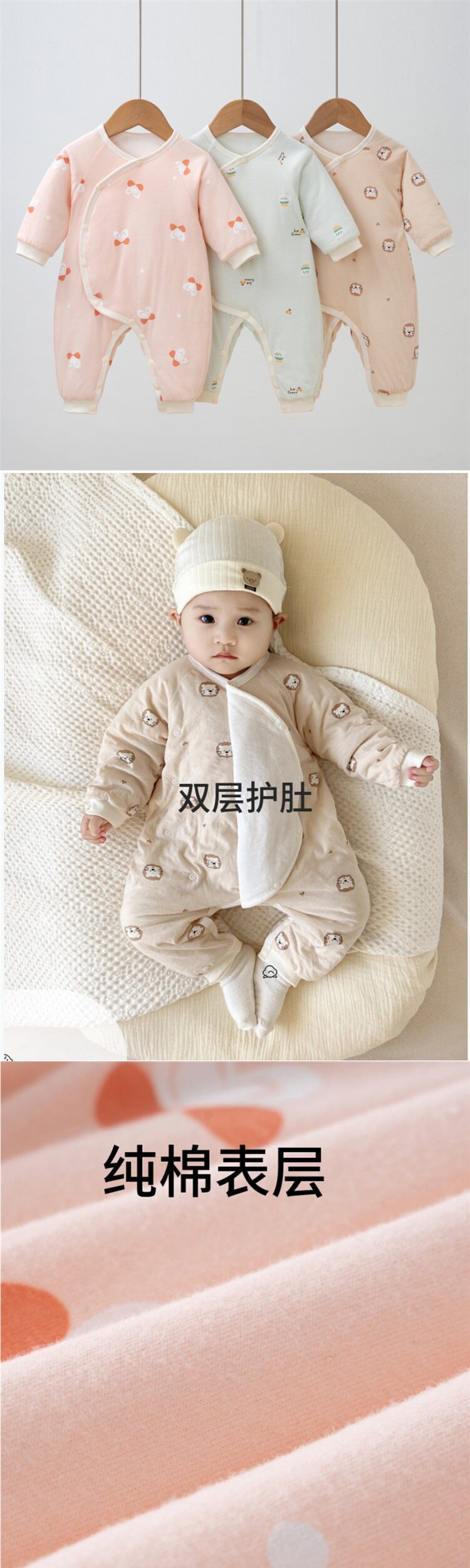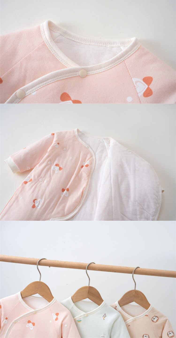 JULIPET baby spring and autumn clothes newborn pure cotton belly protective jumpsuit baby quilted robe thin cotton rompers g
